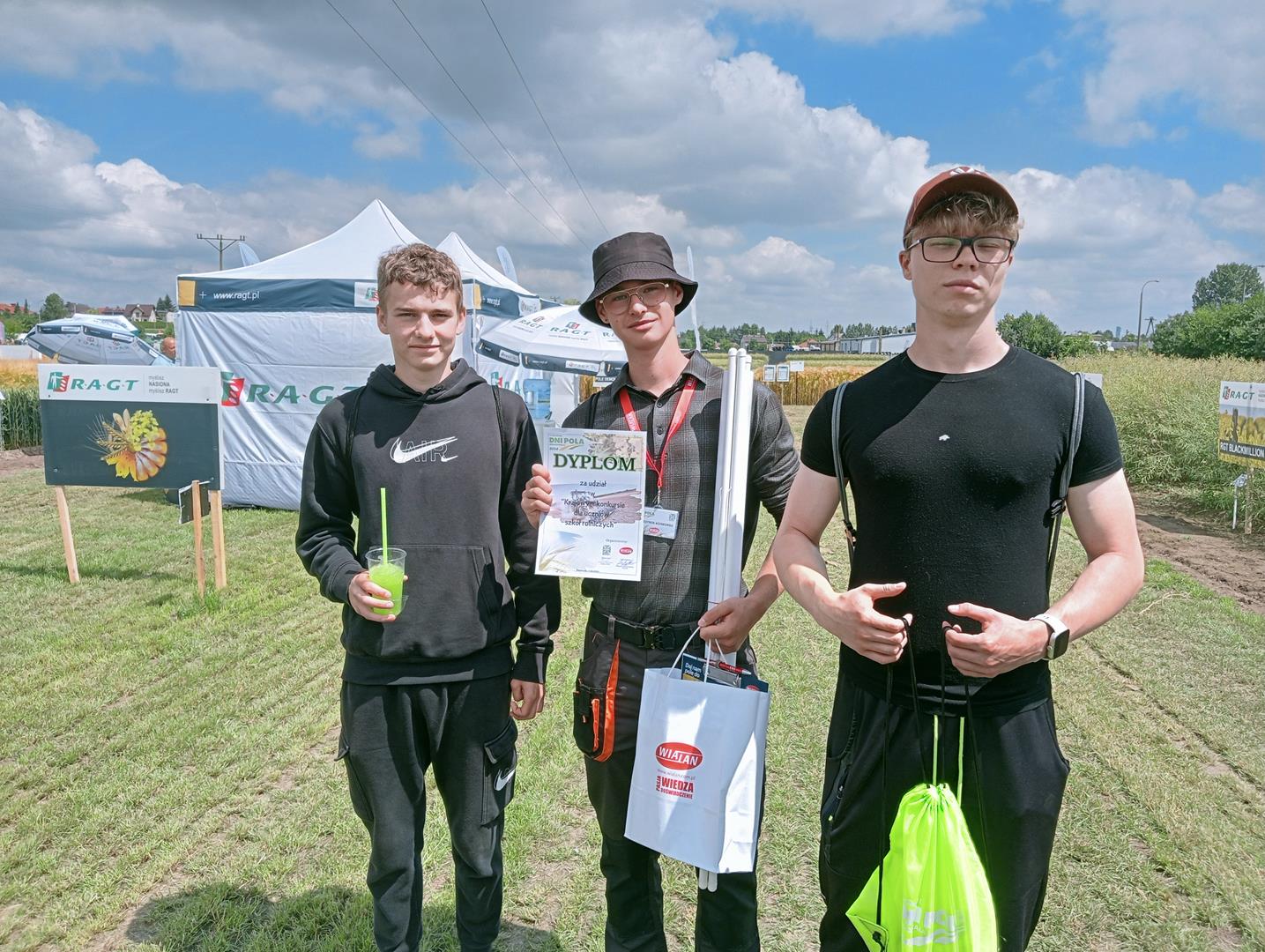 W piątek 14 czerwca 2024 roku delegacja naszych uczniów w składzie: Krzysztof Kierzynkowski – 3DT, Kuba Rybak i Mateusz Kajdanowicz – 3BBEm, wzięła udział w obchodach V Krajowych Dni Pola w Boguchwale koło Rzeszowa. Obchody zostały zaplanowane na 3 dni tj. 14, 15 i 16 czerwca 2024. Jednak piątek był „Dniem Młodego Rolnika” skierowanym głównie dla młodych rolników i uczniów sieci szkół rolniczych prowadzonych przez Ministra Rolnictwa i Rozwoju Wsi.