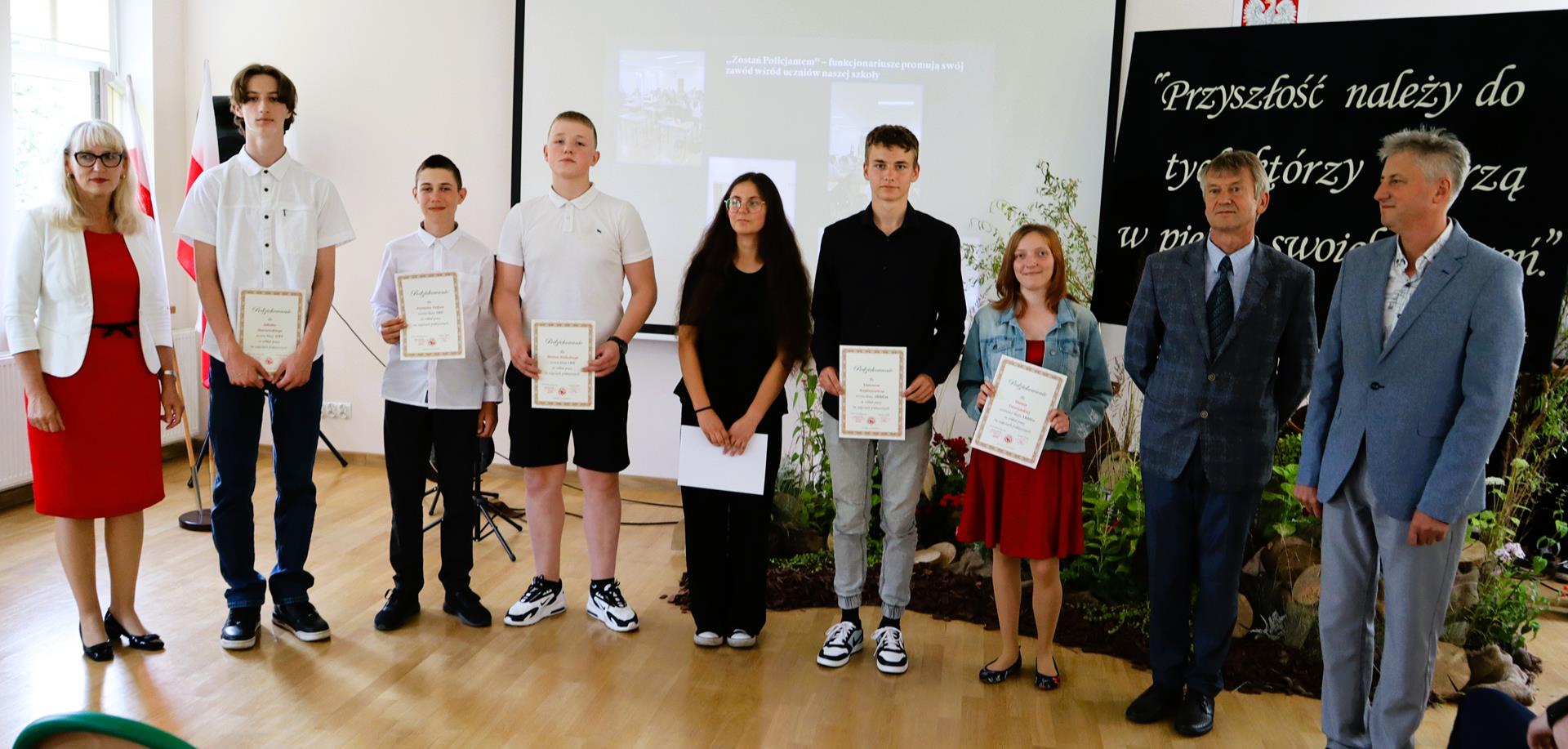 Na porannej uroczystości zakończenia roku szkolnego mieliśmy szczególnych gości. Była wśród nas pani Lidia Kostańska, dyrektor departamentu Nieruchomości i Infrastruktury Wsi w Ministerstwie Rolnictwa i Rozwoju Wsi, pani prof. Anna Jaroszewska, dziekan elekt Wydziału Kształtowania Środowiska i Rolnictwa z Zachodniopomorskiego Uniwersytetu Technologicznego i pan podkomisarz Waldemar Majchrzak, Kierownik Sekcji Konnej Wydziału Prewencji Komendy Wojewódzkiej Policji w Szczecinie.