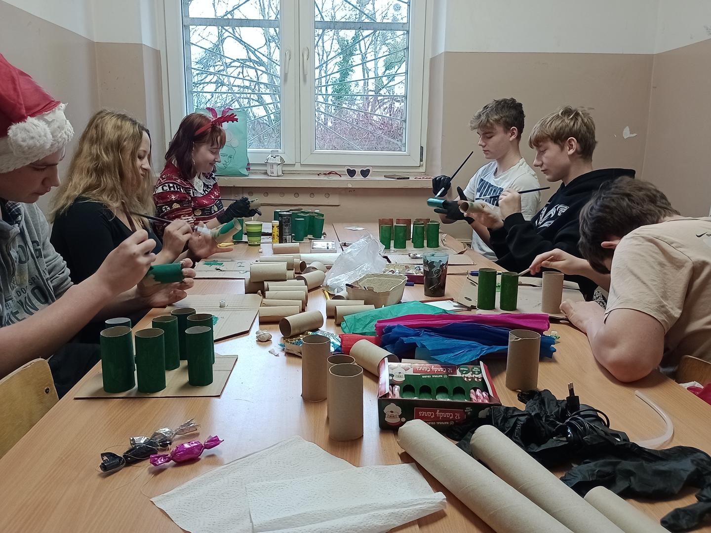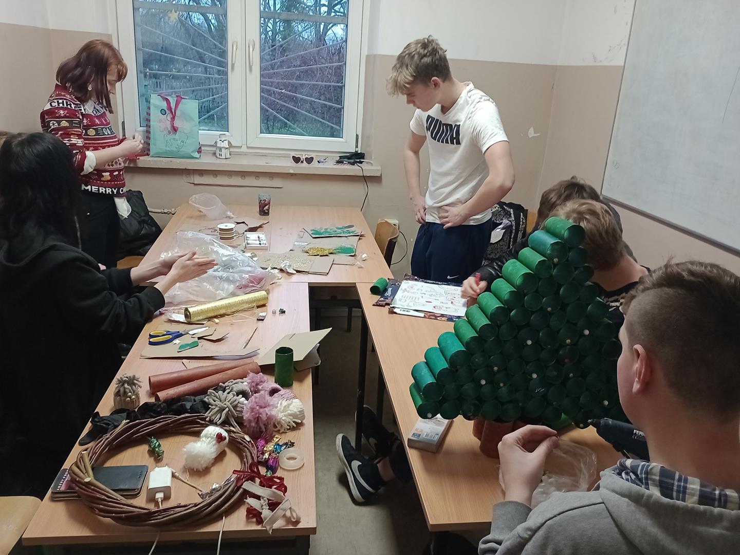 Mikołajki 2 klasa kierunku Ogrodnictwo spędziła kreatywnie i wesoło. Za oknem zimno i deszcz a my ozdabialiśmy salę i tworzyliśmy choinkę z papieru. Odwiedził nas także Mikołaj 🙂