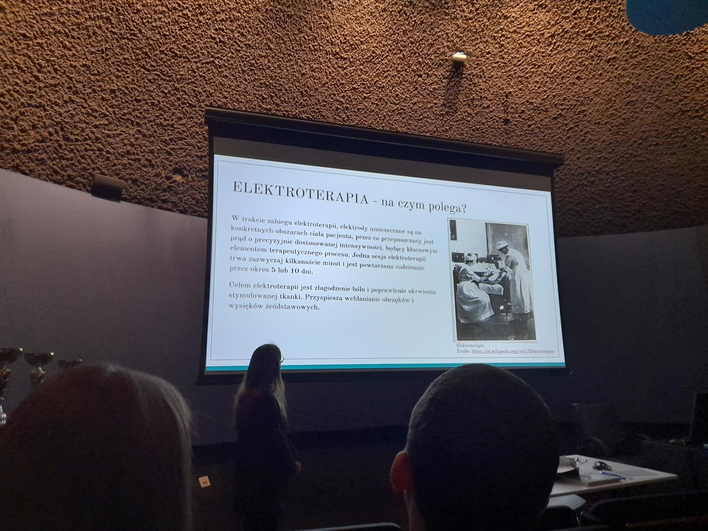 Do finału jury konkursu zakwalifikowało sześć prac spośród wcześniej zgłoszonych. Jedną z nich była praca naszej uczennicy Oliwii Okoń z klasy 3 HT. Oliwia wprowadziła obecnych w zagadnienia fizjoterapii. Ostatecznie otrzymała wyróżnienie.