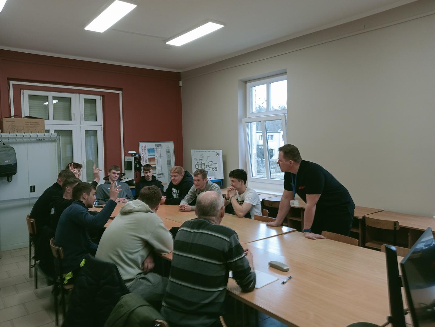 26 marca 2025 roku uczniowie naszej szkoły uczestniczyli w spotkaniu z Panem Romanem Waszczykiem, przedstawicielem firmy Ulenberg Sp. z o.o. – specjalistą ds. rolnictwa precyzyjnego. W wydarzeniu wzięli udział uczniowie klasy 3BT, kształcący się w zawodzie technik mechanizacji rolnictwa i agrotroniki.