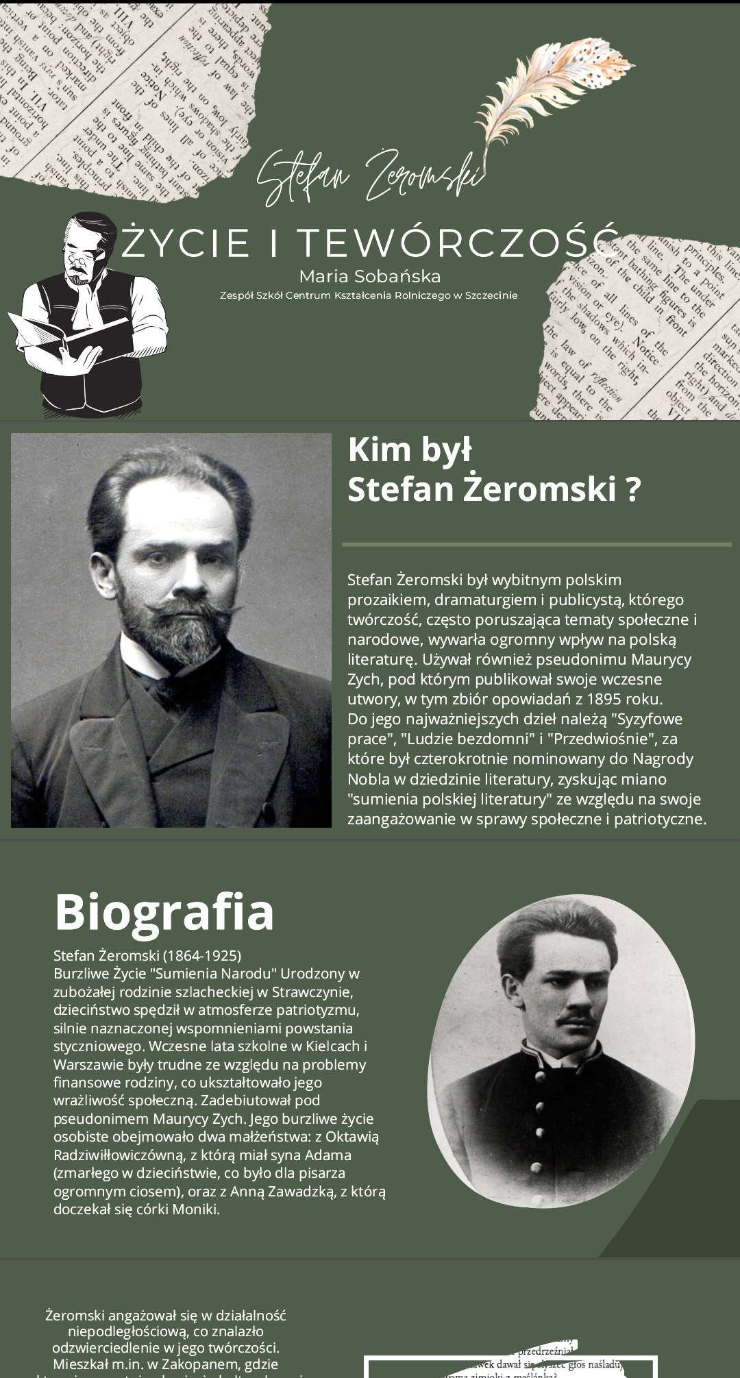 Z ogromną radością informujemy, że uczennica klasy 4LT Magdalena Schulz wygrała ogólnopolski konkurs wiedzy o życiu i twórczości S. Żeromskiego, organizowany przez ZSCKR w Nowym Targu. Rywalizacja uczestników sieci szkół rolniczych to ponad 100 nadesłanych prac plastycznych i prezentacji multimedialnych. Jury wybrało pracę Magdaleny jako najlepszą – podkreślając zarówno talent twórczyni, jak i szerokie zrozumienie tematu oraz głębię i wielowymiarowość przekazu nadesłanej pracy. Gratulujemy!