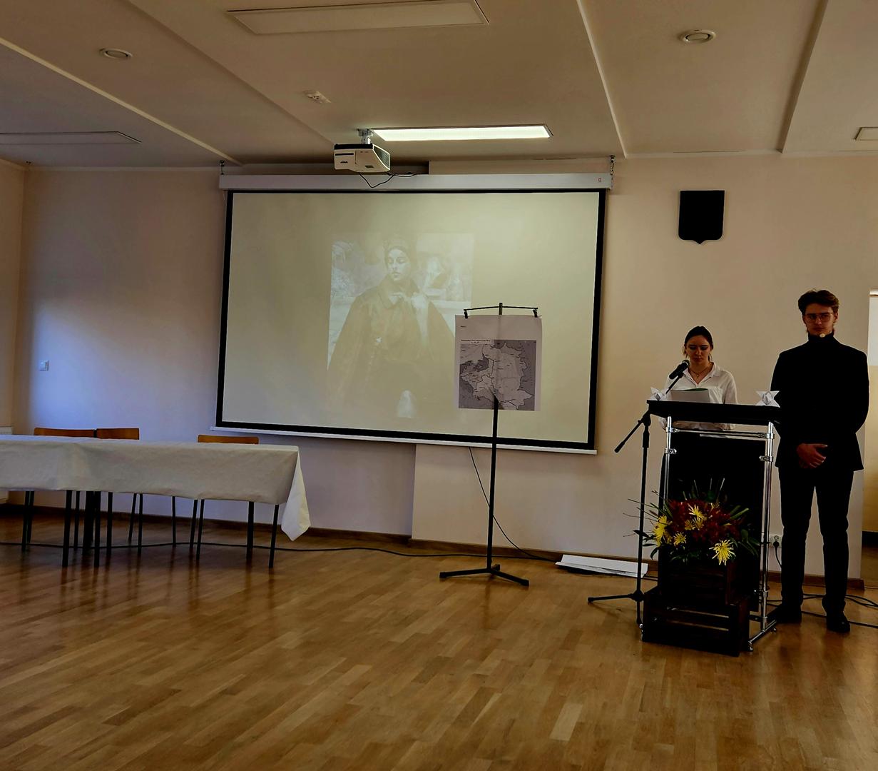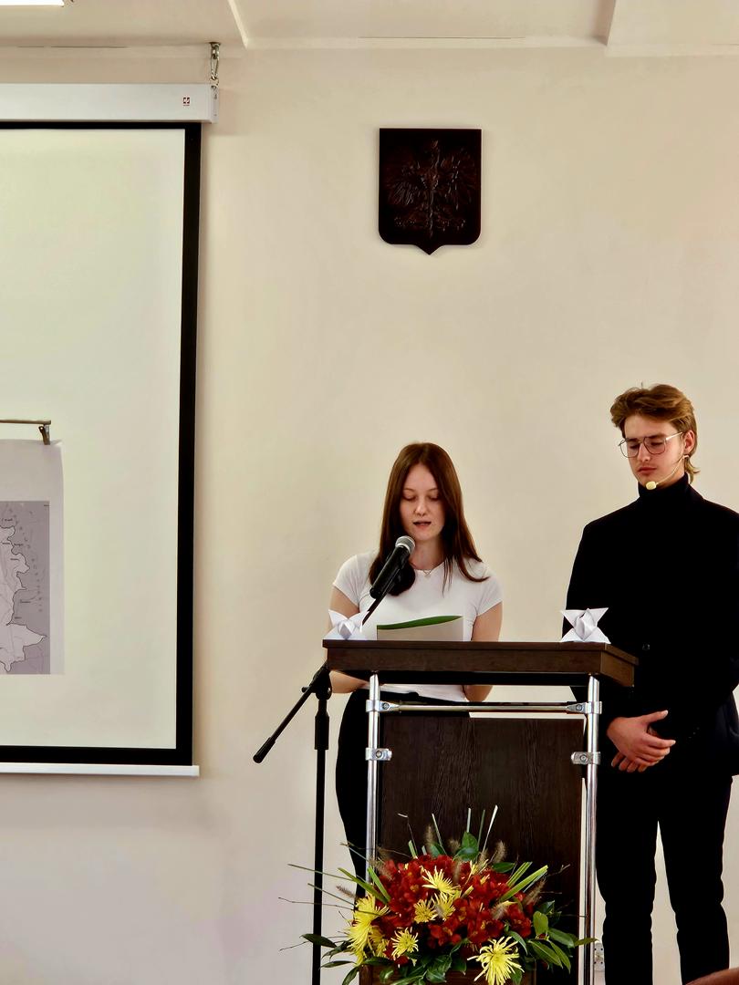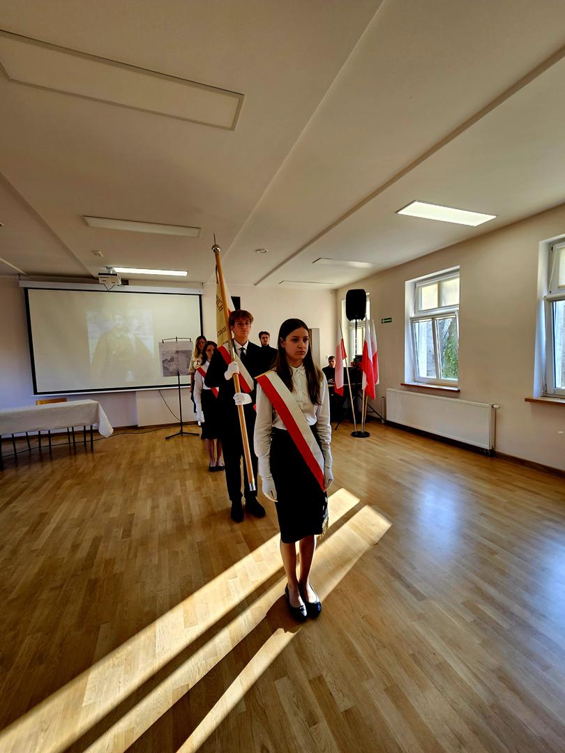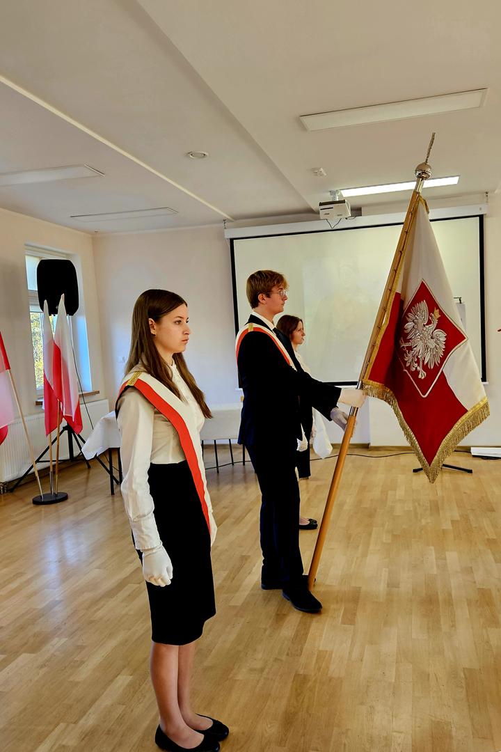 Następnie uczennice i uczniowie przedstawili najważniejsze momenty drogi Polaków do niepodległości, a potem – w poruszającym, autorskim spektaklu „Co, jeśli?” – pokazali, jak wyglądałoby nasze życie bez Ojczyzny. Jak padło ze sceny: „Upiorna wizja…”