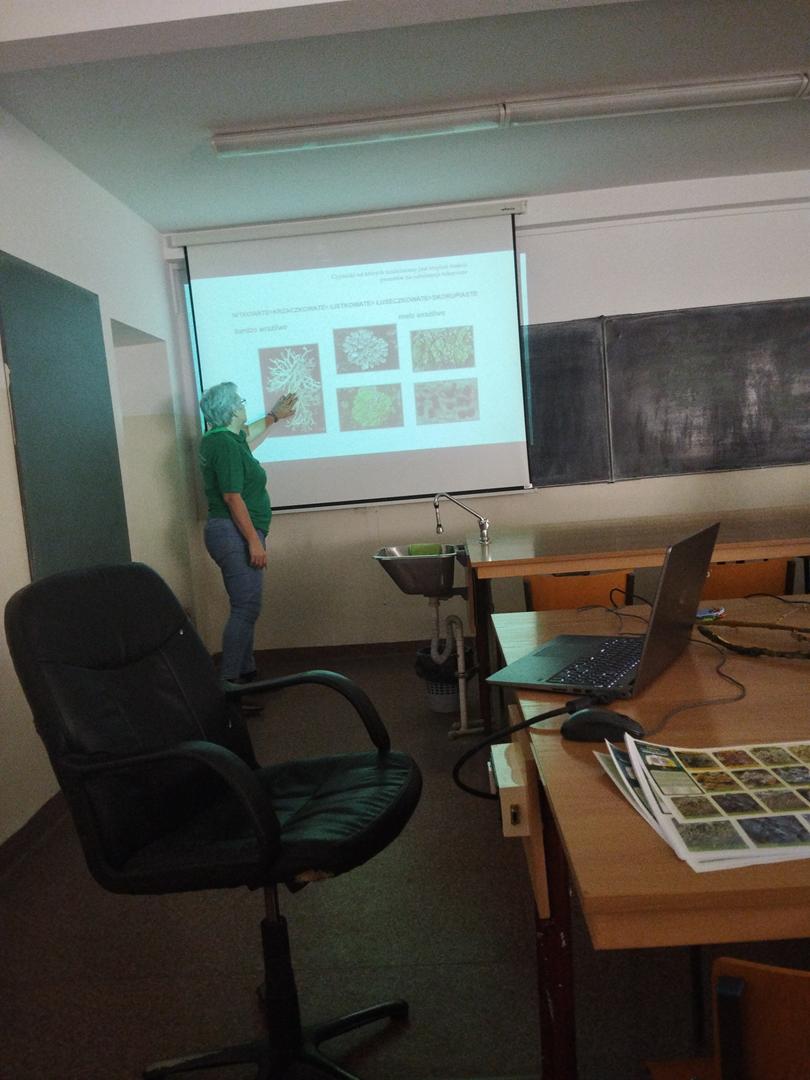 Na początku odbył się wykład przeprowadzony przez prof. Joannę Podlasińską, dotyczący budowy i znaczenia porostów. Następnie miała miejsce część praktyczna, podczas której uczestnicy obserwowali i rozpoznawali wybrane gatunki porostów. Każdy z uczniów otrzymał własną skalę porostową.