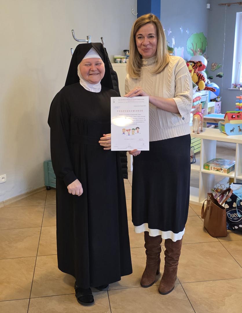Na miejscu zostaliśmy serdecznie przyjęci przez Siostrę Nikodemę, która w imieniu Domu Samotnej Matki wręczyła nam podziękowania za okazaną pomoc, pamięć i troskę.