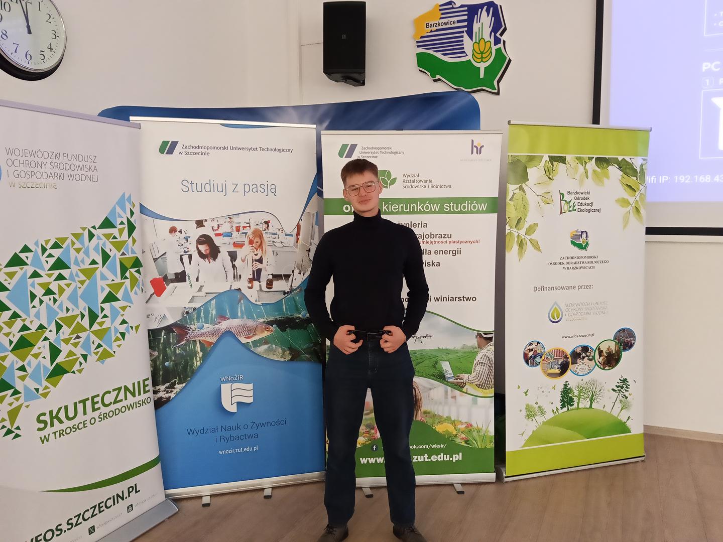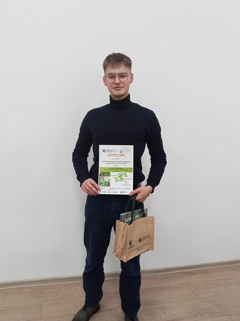 W piątek, 21 listopada 2025 roku, kolejny raz, uczestniczyliśmy w XXIV edycji Konkursu Wiedzy Ekologicznej, którego hasło brzmiało „Ekologia Zaczyna się od Ciebie”. Konkurs organizuje Zachodniopomorski Ośrodek Doradztwa Rolniczego w Barzkowicach. W Konkursie udział wzięło 25 uczniów/uczestników z 16 szkół. Naszą szkołę reprezentował Krzysztof Kierzynkowski z klasy 5DT. Dzielnie walczył, zajął