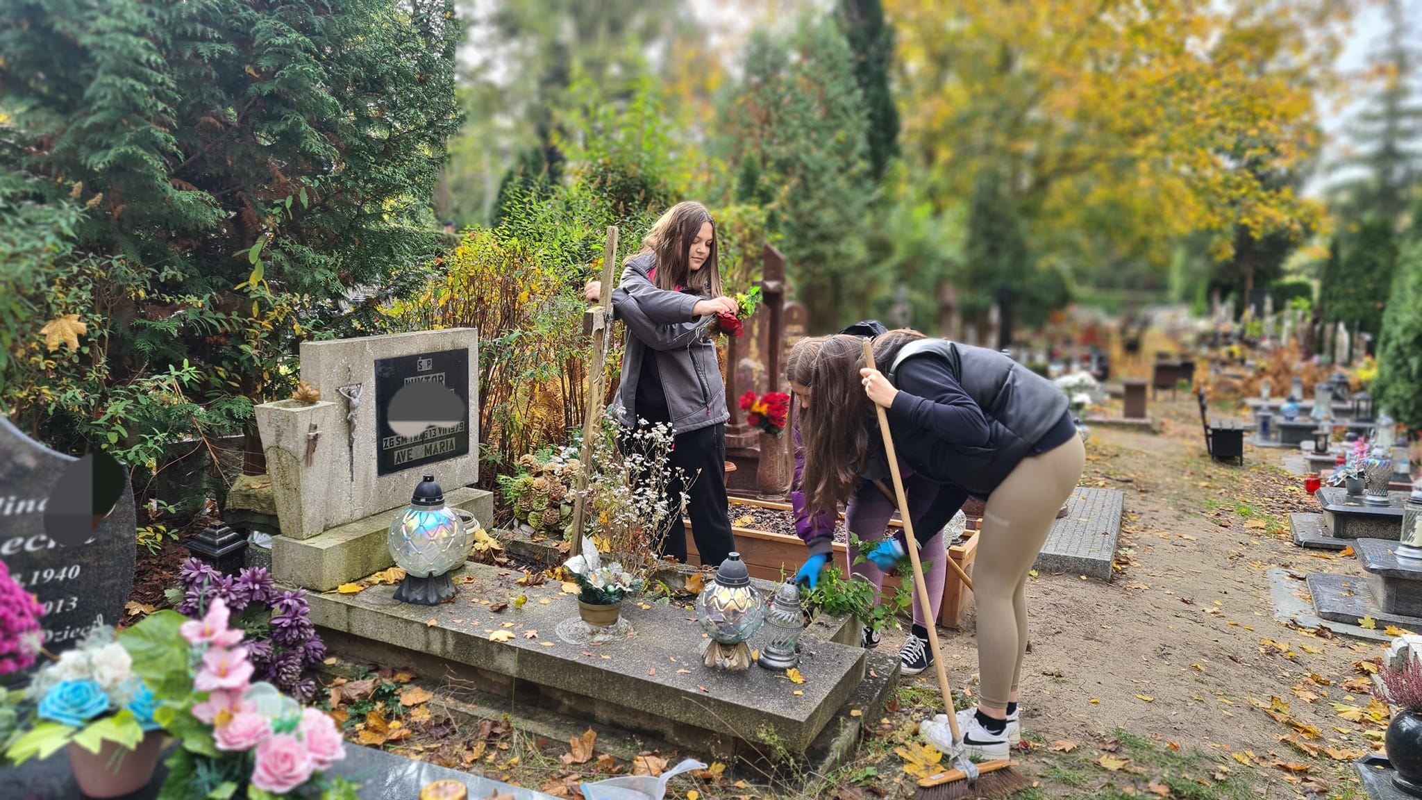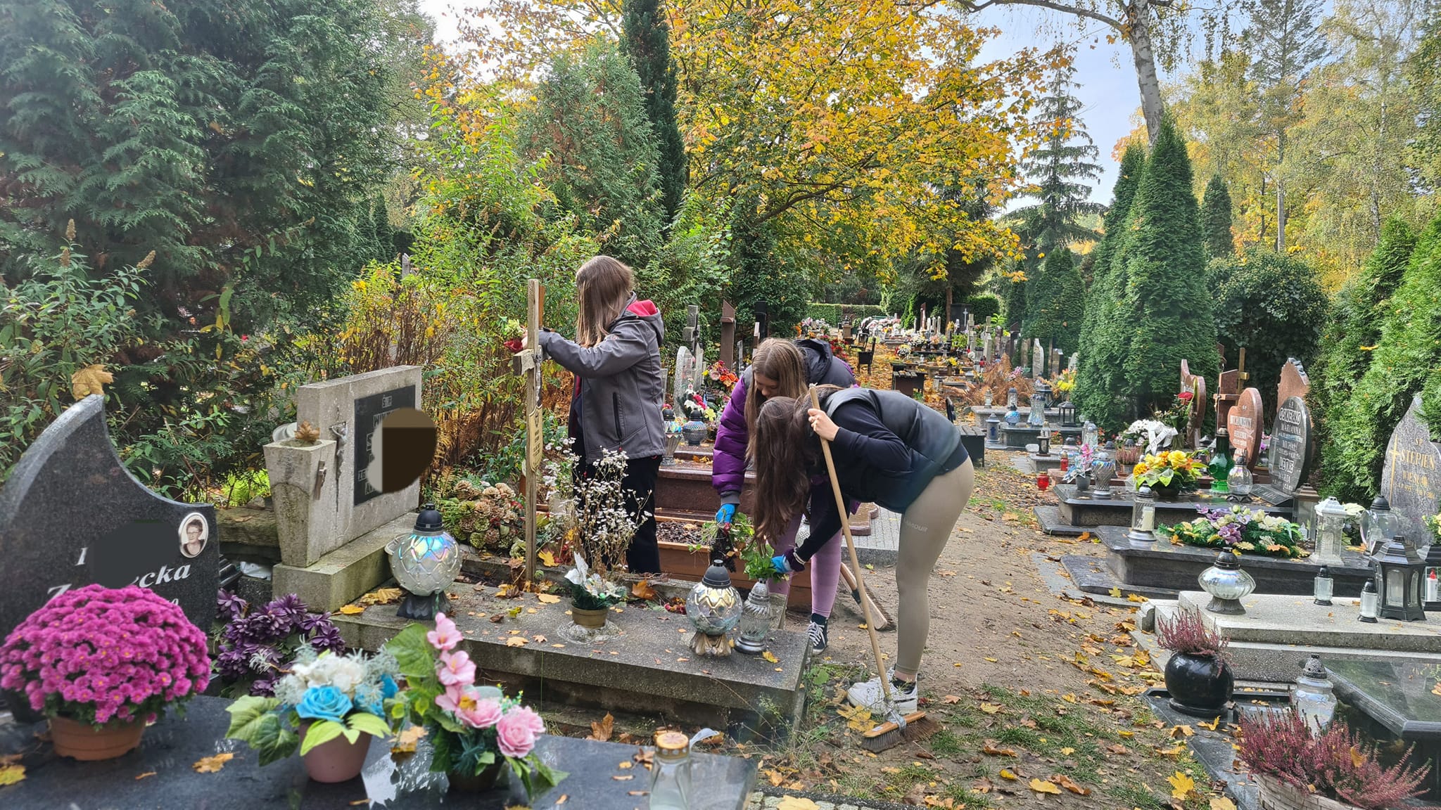 – sprzątanie cmentarza, Puszczy Bukowej, dzielnicy Zdroje,