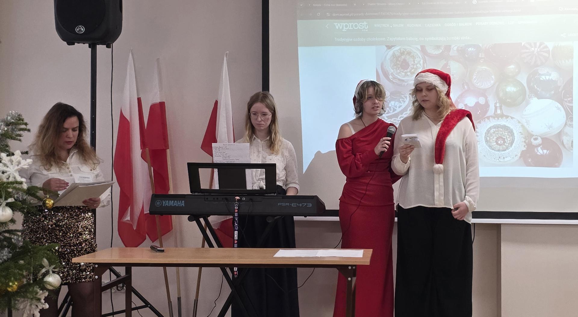 Uczniowie z różnych klas zaprezentowali swoje muzyczne talenty, grając na różnych instrumentach oraz śpiewając kolędy i piosenki w języku polskim i angielskim.