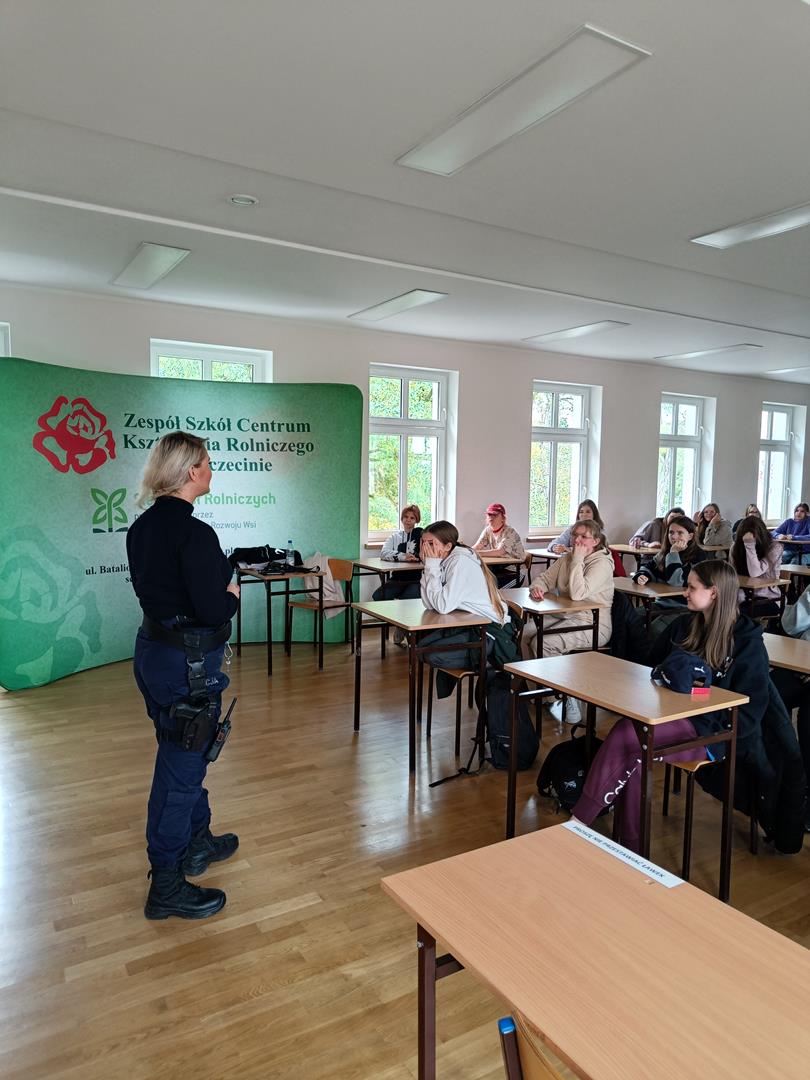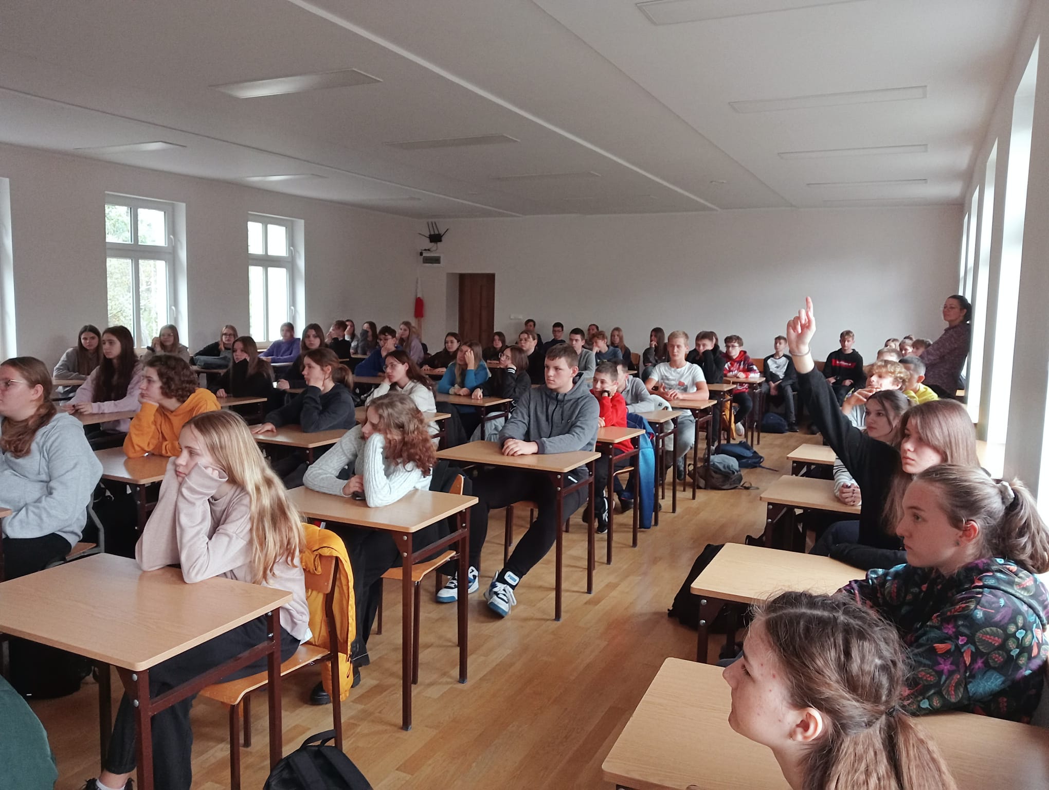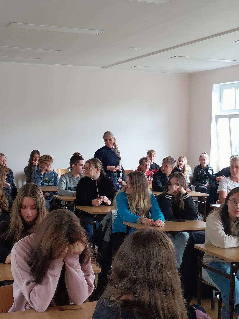 W dniu 24.10.2023 r. uczniowie klas pierwszych wysłuchali prelekcji na temat „zagrożeń wynikających z używania narkotyków i dopalaczy oraz środków odurzających w tym leków” zorganizowanych przez Policję. Spotkanie odbywało się w szkolnej auli w godzinach od 9:50 do 11:30.