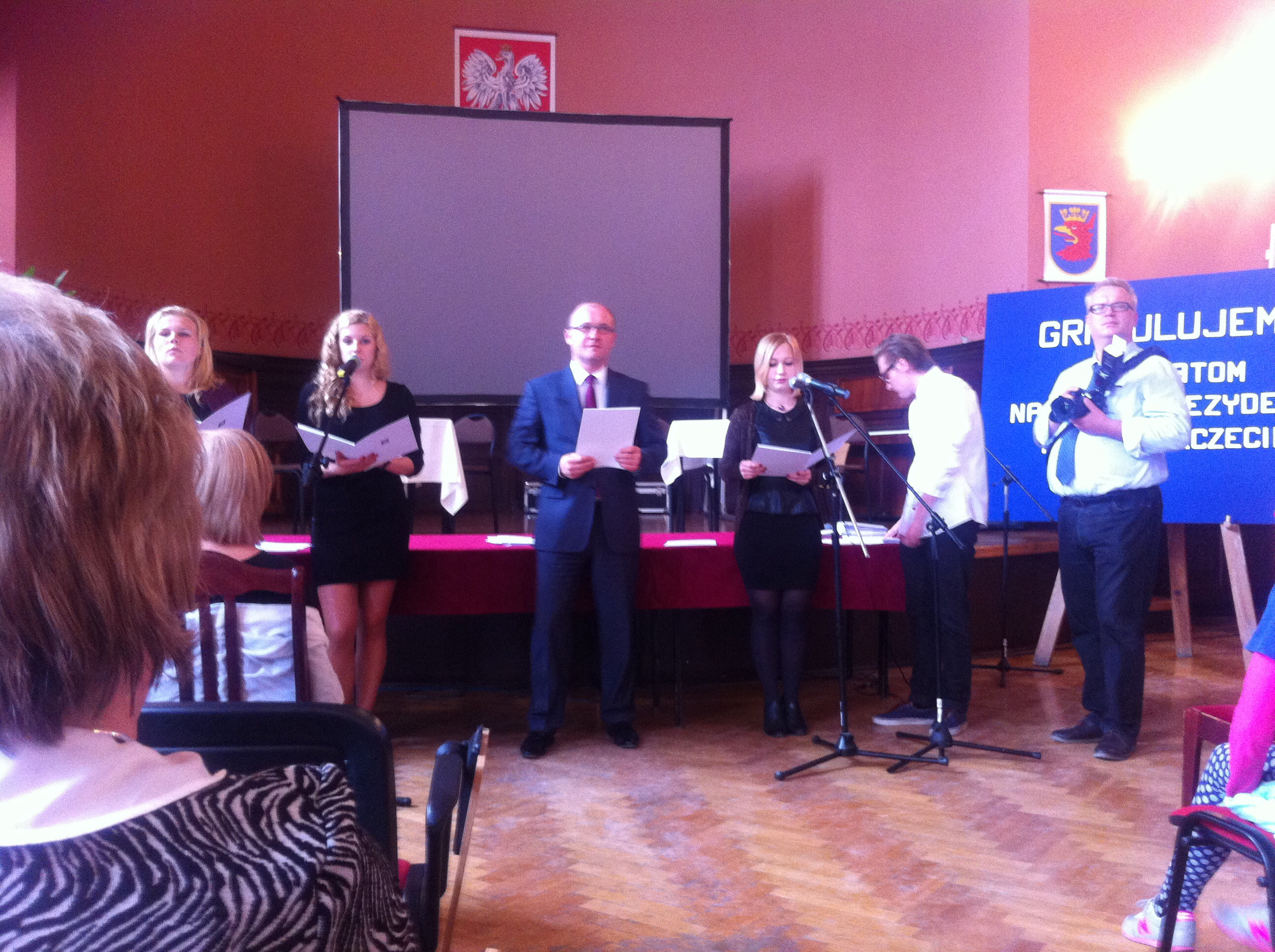 W poniedziałek 22 czerwca 2015 roku w auli I Liceum Ogólnokształcącego w Szczecinie odbyło się uroczyste wręczenie nagród Prezydenta Miasta Szczecin dla uzdolnionych uczniów. Nagrody przyznano uczniom ze szkół podstawowych, gimnazjalnych i ponadgimnazjalnych.