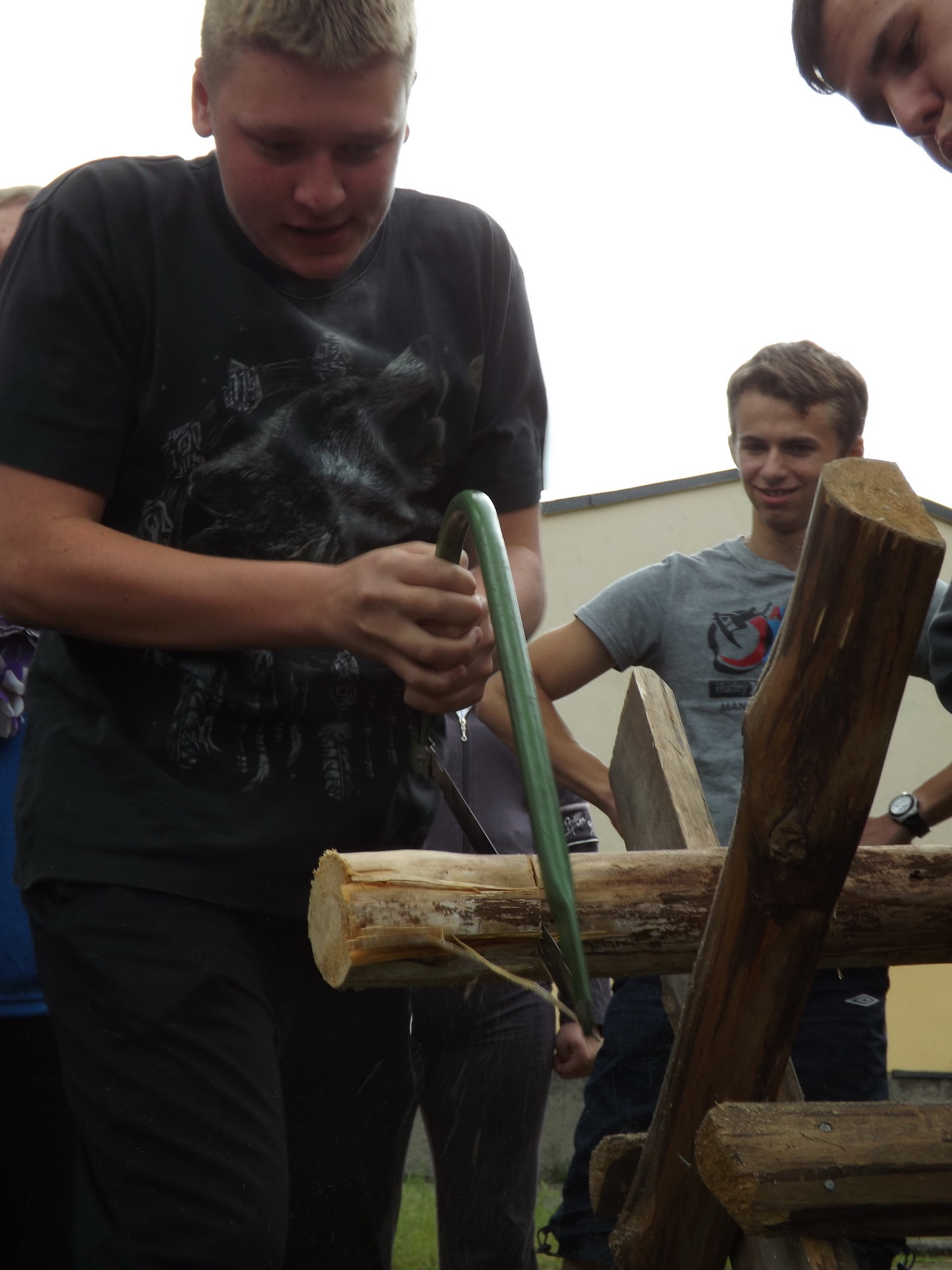 - zadaniach sprawnościowych – m.in. cięcie drewna na czas, które wygrał uczeń I klasy Technikum Ogrodniczego w czasie 20 sekund!,