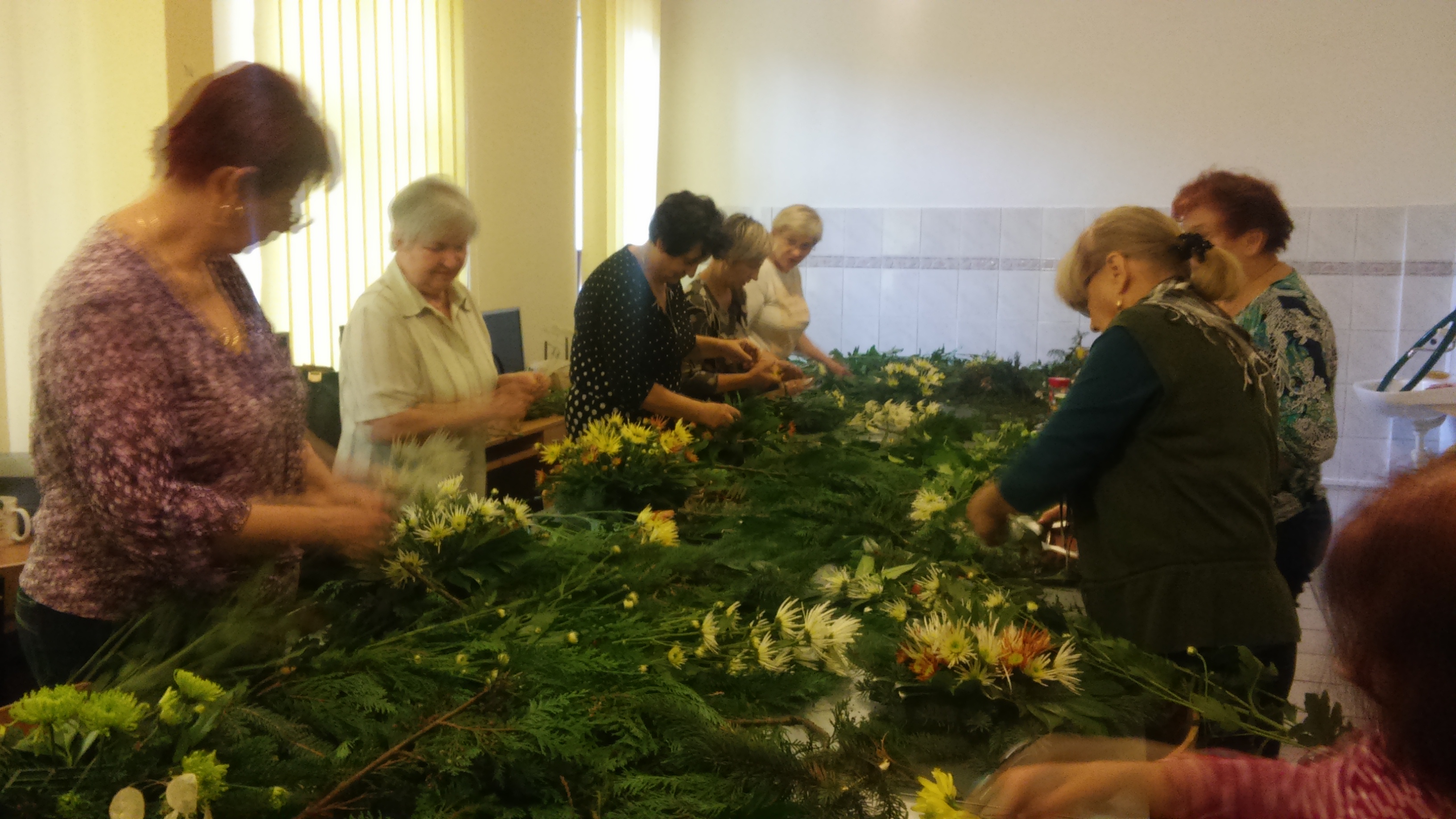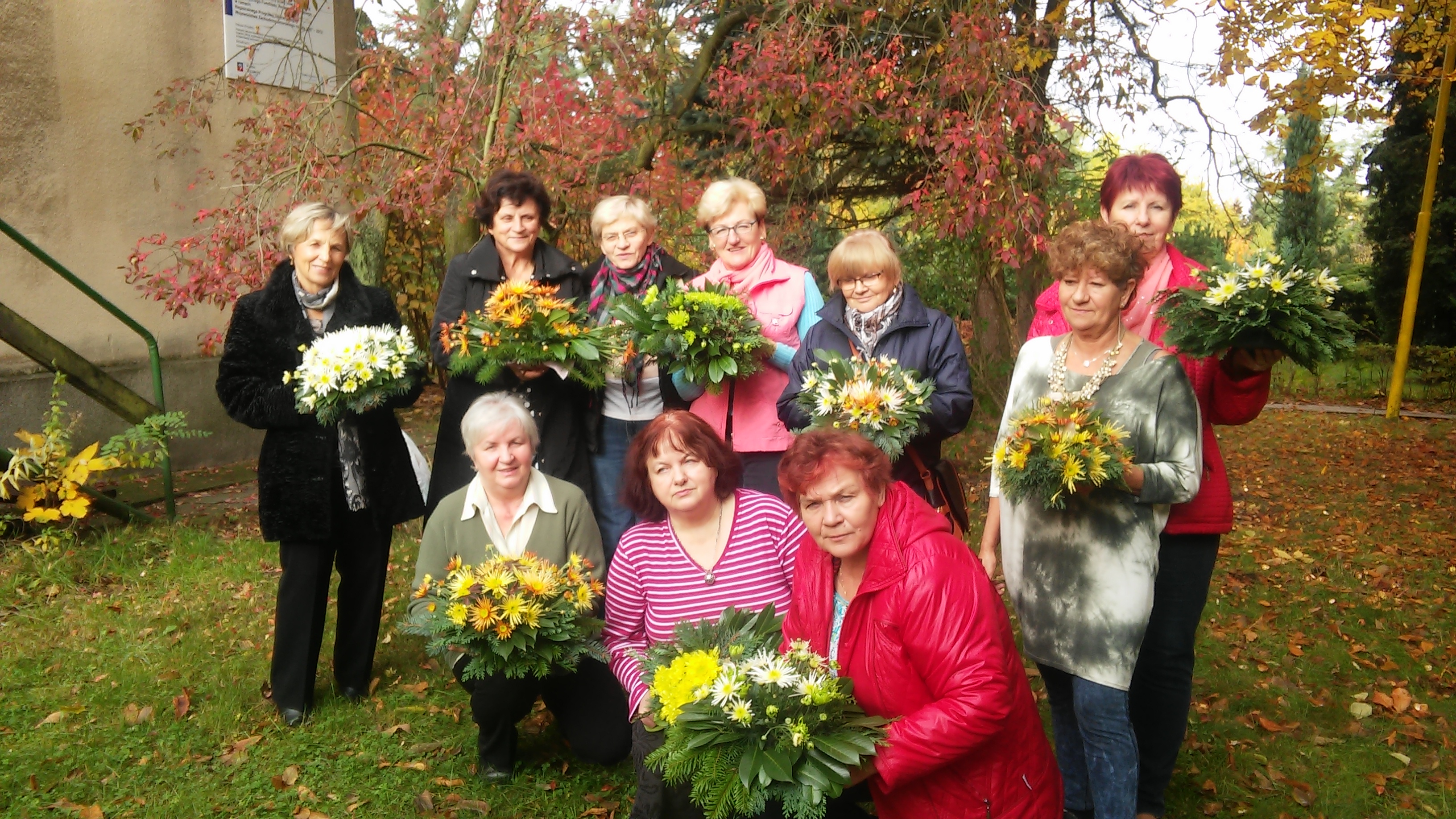 Idea „uczenia się przez całe życie”, zdobywania wciąż nowych umiejętności, to jedno z naszych zadań, które realizujemy na różnych etapach. Już od czterech lat bowiem współpracujemy z Uniwersytetem Trzeciego Wieku w Gryfinie, organizując różnorodne zajęcia związane z charakterem naszej działalności. I tak w dniu 21 października 2015 roku odbyły się pierwsze w tym roku szkolnym warsztaty dla słuchaczek wspomnianego Uniwersytetu. Poświęcone były florystyce, a dokładniej – w związku ze zbliżającym się świętem – tworzeniu kompozycji nagrobnych. Zielone pędy igliwia w połączeniu z ładnymi ciętymi chryzantemami – z własnej szkolnej produkcji – sprawiły, że finalne prace dały bardzo dobry efekt. Panie były tak zaangażowane, w jak najlepsze wykonanie kompozycji, że czas przeznaczony na zajęcia upłynął wyjątkowo szybko. Miło nam, że po raz kolejny mogliśmy podzielić się swoją wiedzą i doświadczeniem, a uczniowie mieli okazję wspólnie pracować w trakcie warsztatów z zaprzyjaźnionymi „studentkami”.