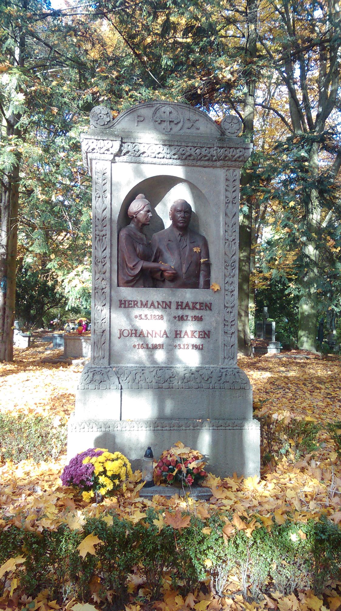 Przy nagrobku z popiersiami Hermanna Hakena i jego żony zostawiliśmy chryzantemy wyhodowane w naszej szklarni.