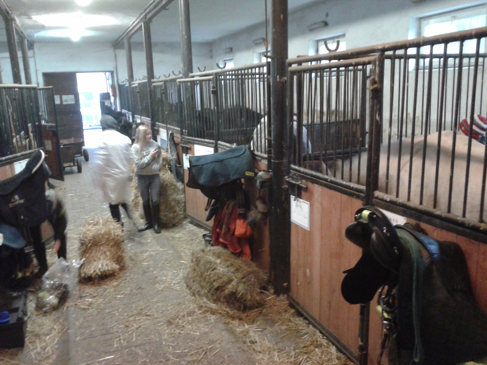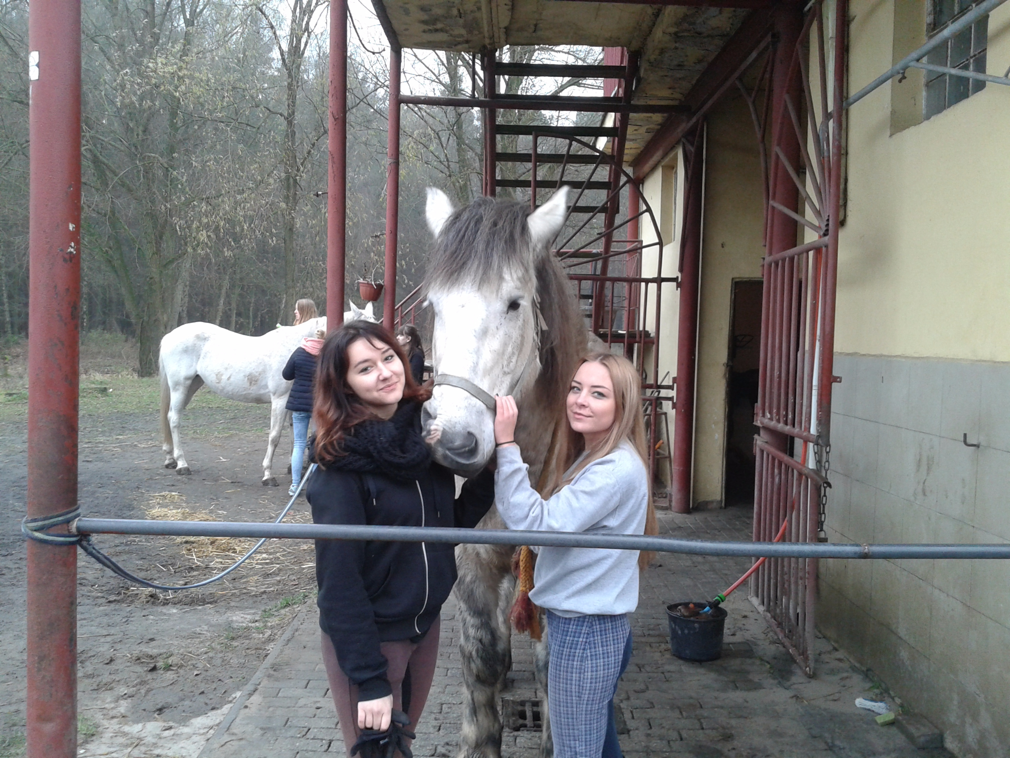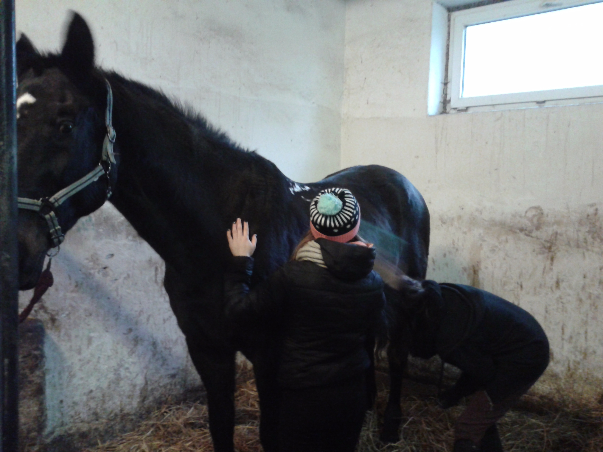Na zajęciach praktycznych w Akademickim Ośrodku Jeździeckim ZUT w Osowie uczniowie przyszli weterynarze tym razem mieli okazje realizować zadania z zakresu anatomii topograficznej poprzez kontakt z końmi. Rozpoznawali części ciała, mierzyli, a potem wykonywali czynności z zakresu chowu i hodowli. Posprzątali i posłali boksy dla koni, oczyścili poidła, a także wyczyścili i wyszczotkowali każdego konia, jaki tylko znalazł się w ich zasięgu. Dodatkowo zostali zapoznani z procedurą zakładania uprzęży i siodła, a na koniec zajęć sprowadzili konie z dworu do stajni. Bardzo dziękujemy funkcjonariuszom Szczecińskiej Policji Konnej – których zwierzęta korzystają ze stadniny w Osowie – za udostępnienie koni do szczotkowania oraz za instruktaż z zakładania uprzęży i siodłania.