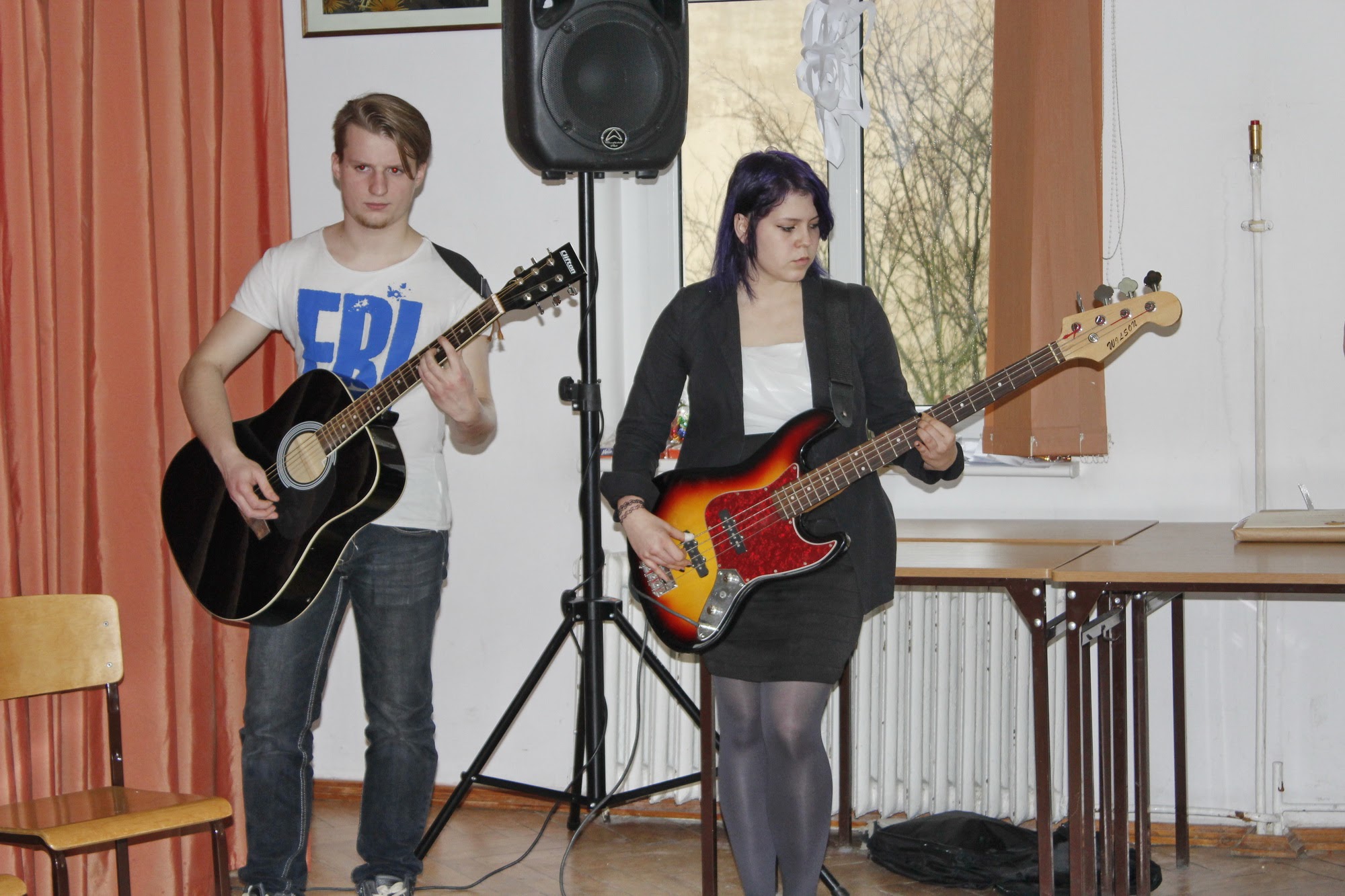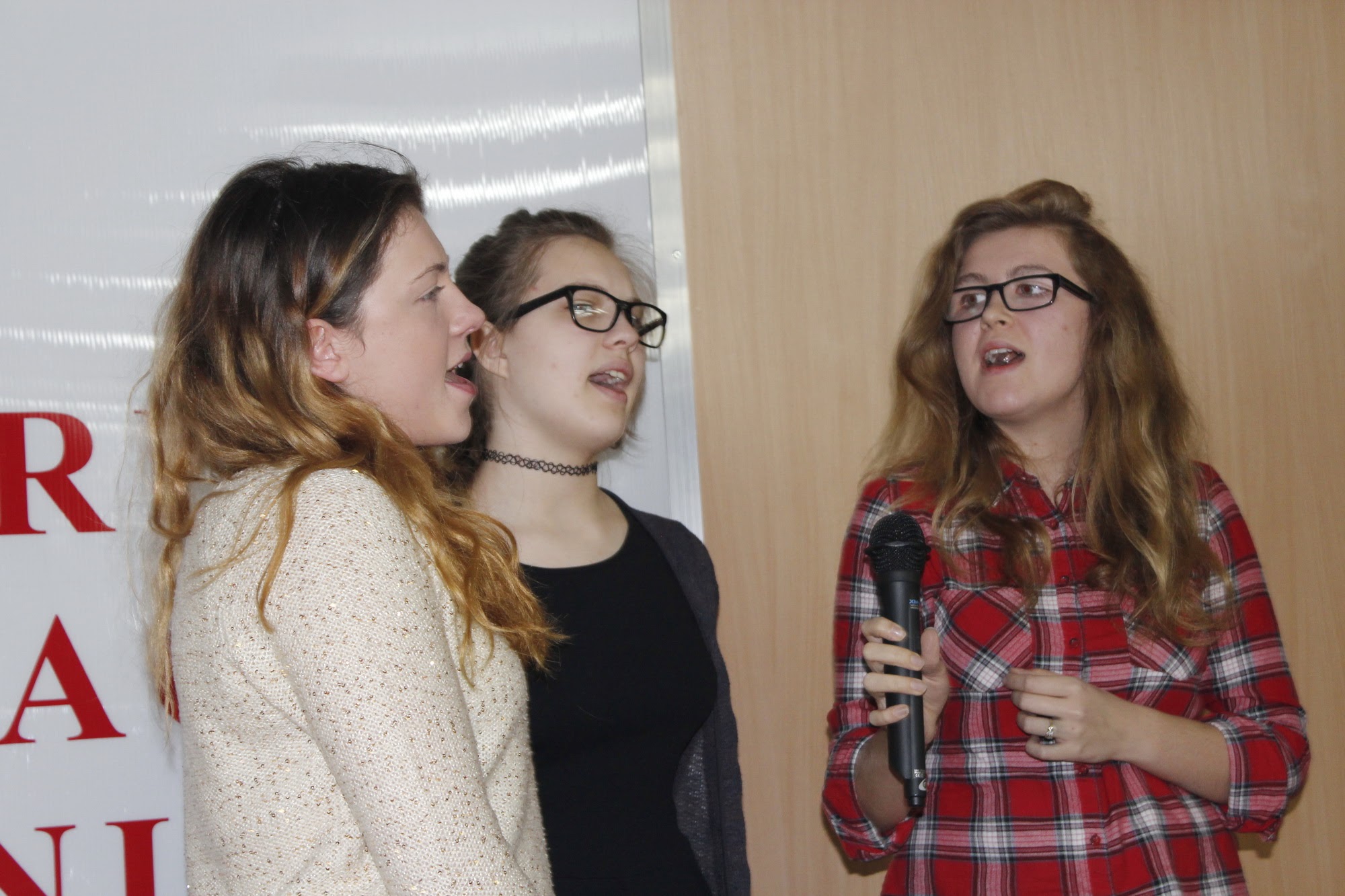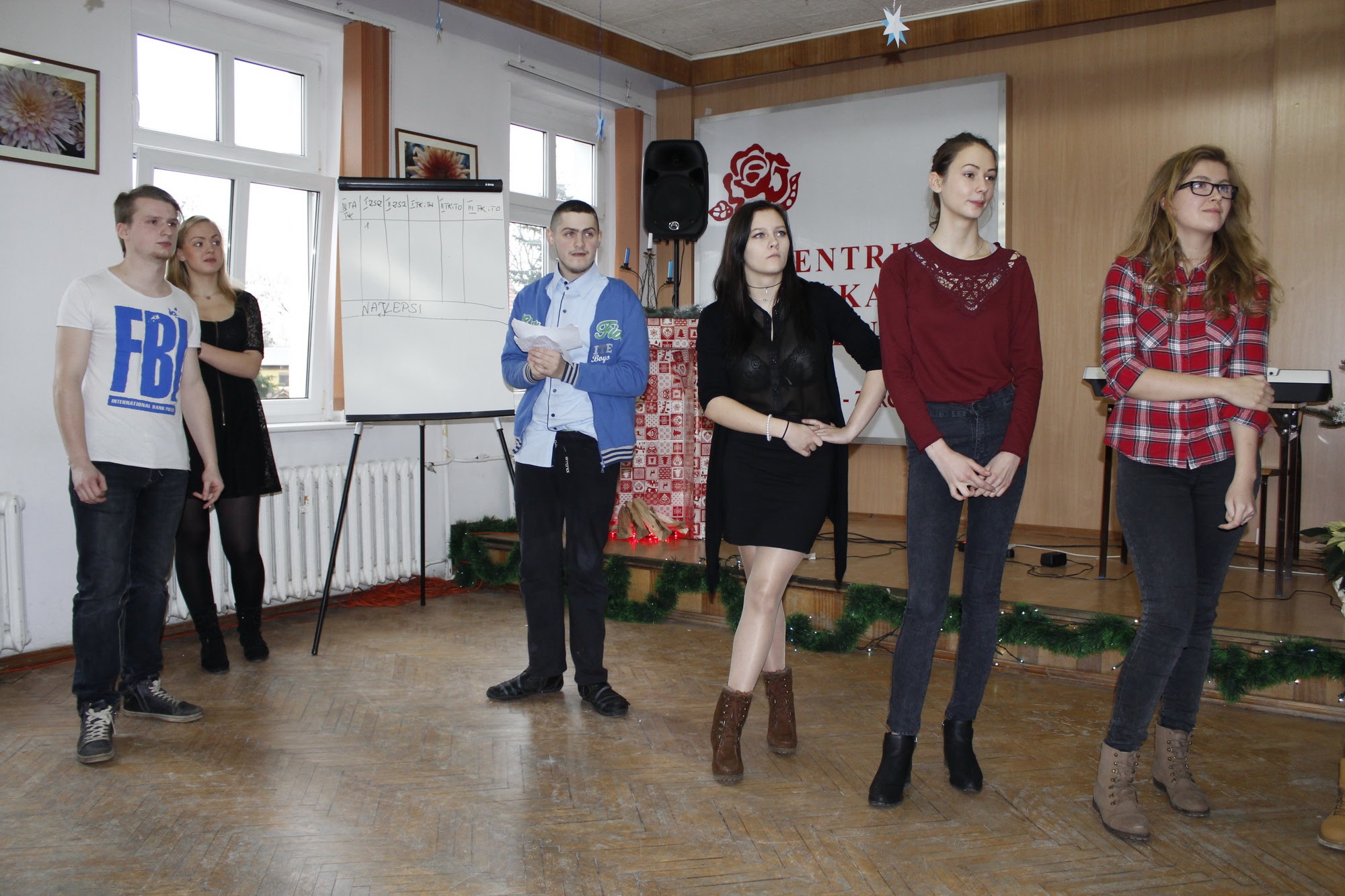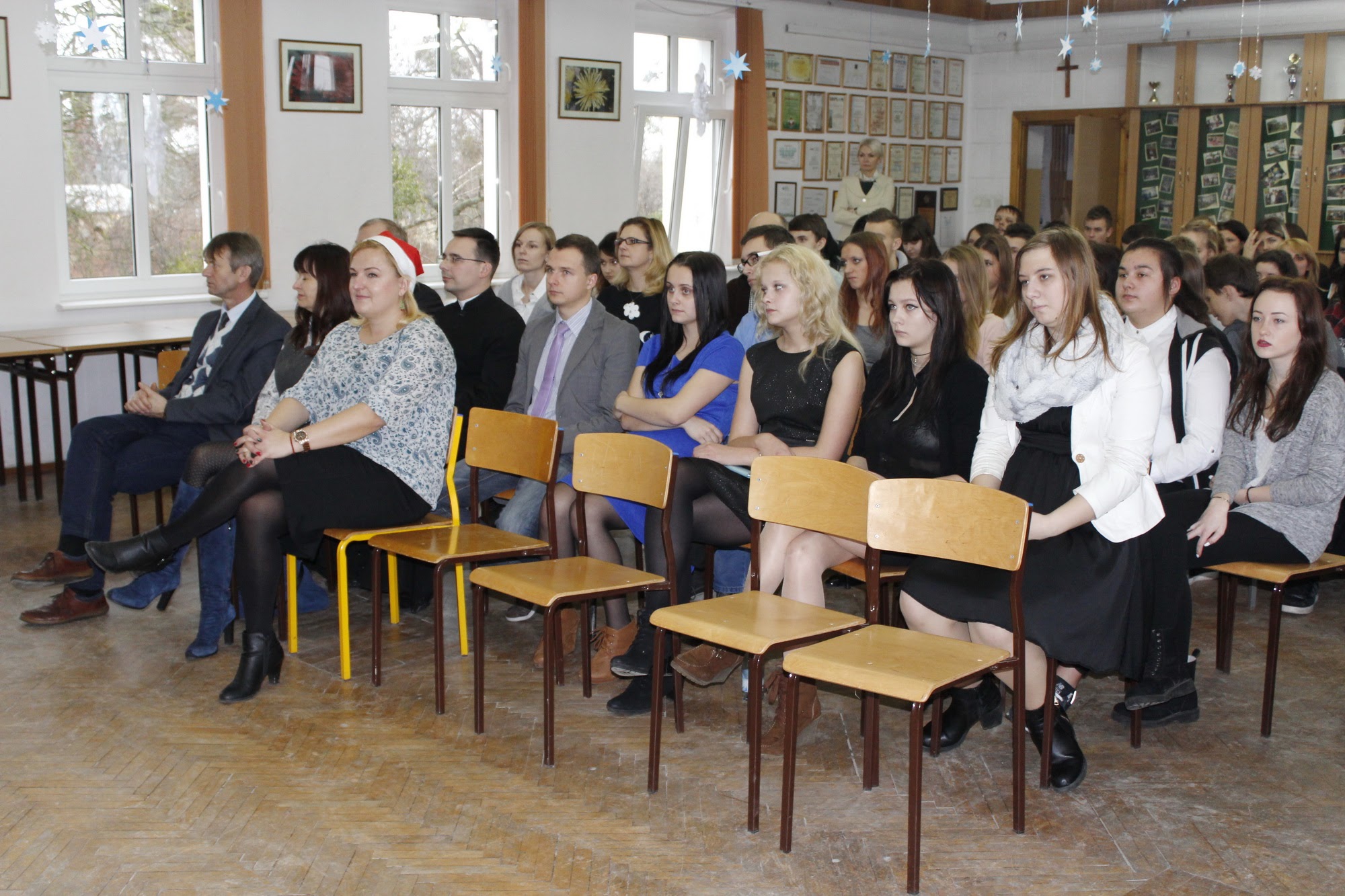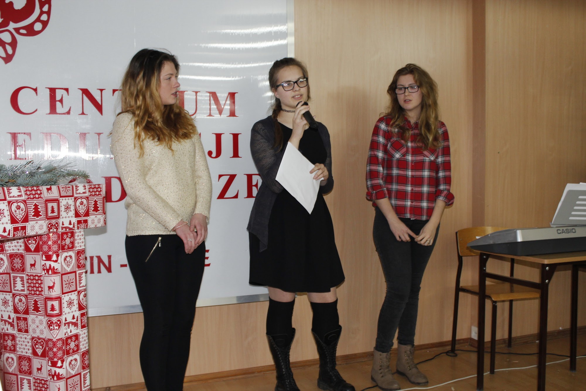 Piątek był wyjątkowym dniem w naszej szkole. Odbyły się bowiem wigilie klasowe, jasełka szkolne i coroczny konkurs kolęd. W atmosferę nadchodzących świąt wprowadził nas szkolny zespół muzyczny przygotowany przez Pana Wojciecha Majkowskiego. Uczennice nie tylko przypomniały „ideę” Bożego Narodzenia, ale zaśpiewały pastorałki i piosenki świąteczne. A potem zespoły klasowe i nauczyciele przystąpili do rywalizacji w konkursie wiedzy o tematyce bożonarodzeniowej. Dopełnieniem świątecznych zmagań był konkurs kolęd, w którym swoje umiejętności wokalne zaprezentowały poszczególne drużyny. Byli też soliści.