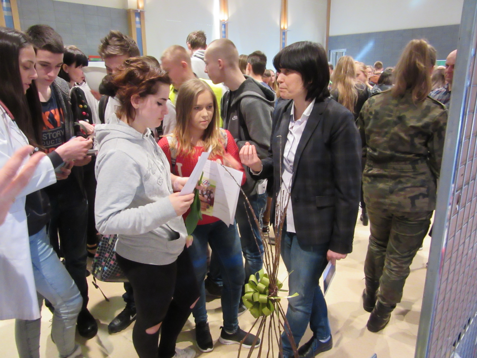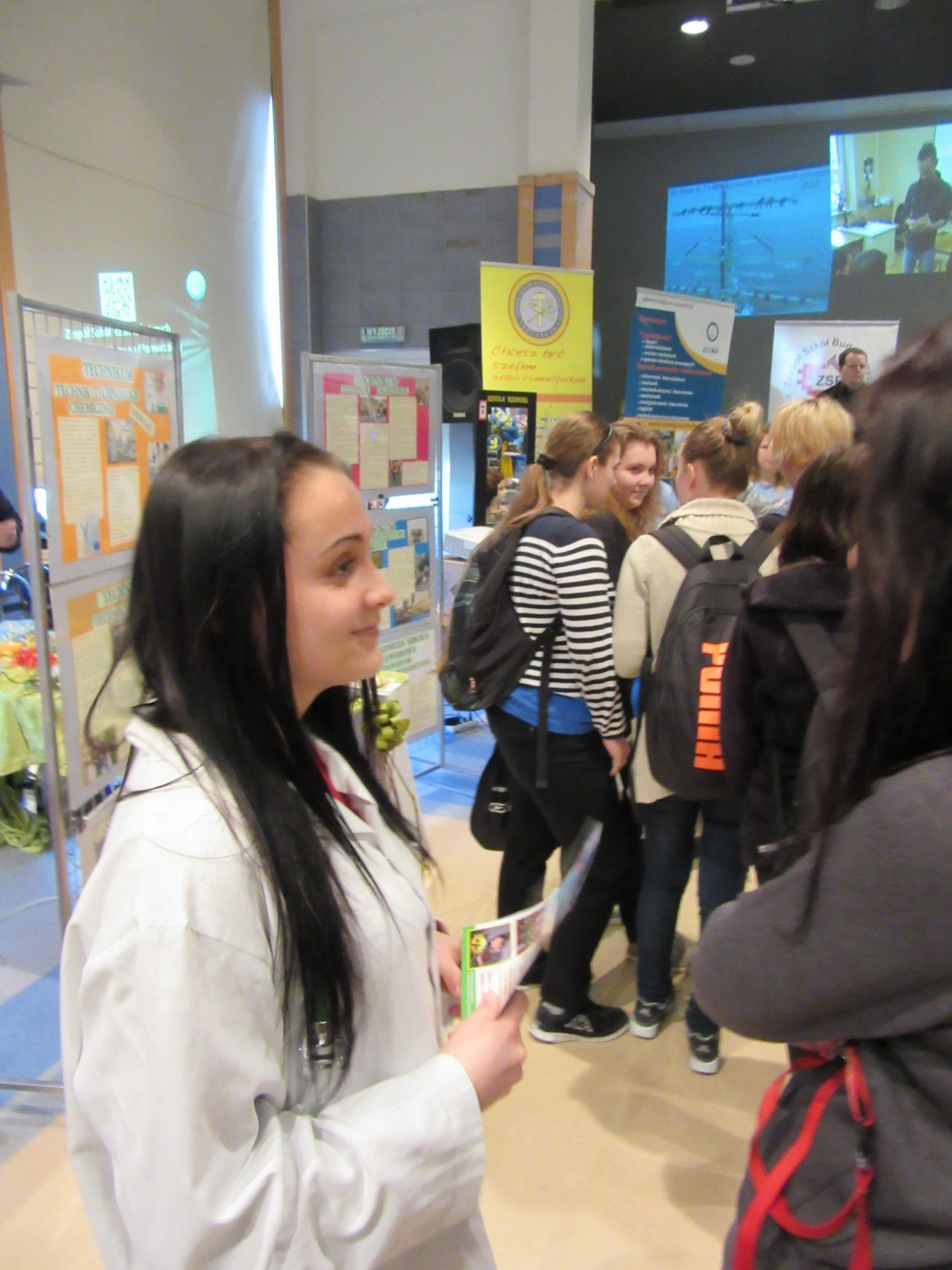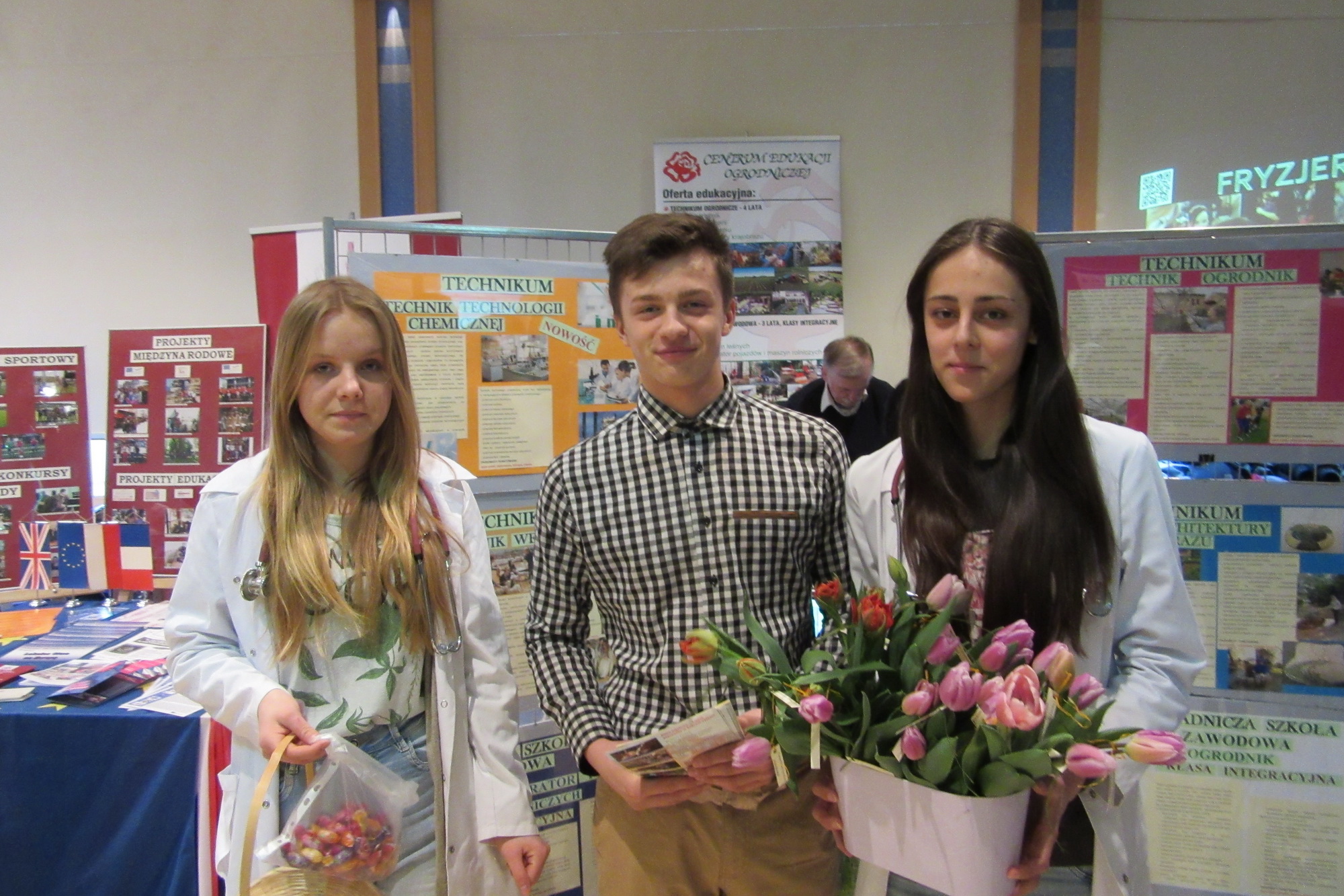 Stoisko oraz oferta edukacyjna naszej szkoły spotkała się z dużym zainteresowaniem. Młodzi ludzie zadawali wiele pytań dotyczących zawodów, a zwłaszcza pytali o praktyki, zajęcia praktyczne – gdzie są realizowane, czy szkoła je zapewnia oraz – czy po naszych kierunkach można znaleźć pracę. Wielu trzecioklasistów pytało także o nasz nowy kierunek – technik technologii chemicznej. Dużym wsparciem była młodzież, która opowiadała o szkole i zachęcała gimnazjalistów do kontynuowania nauki w naszej szkole. Prezentacja szkoły w formie multimedialnej – skierowana wyłącznie do uczniów gimnazjalnych klas trzecich – była uwieńczeniem promocji. Wierzymy, że poprzez wspólne działanie pomogliśmy młodym ludziom w wyborze ścieżki zawodowej.