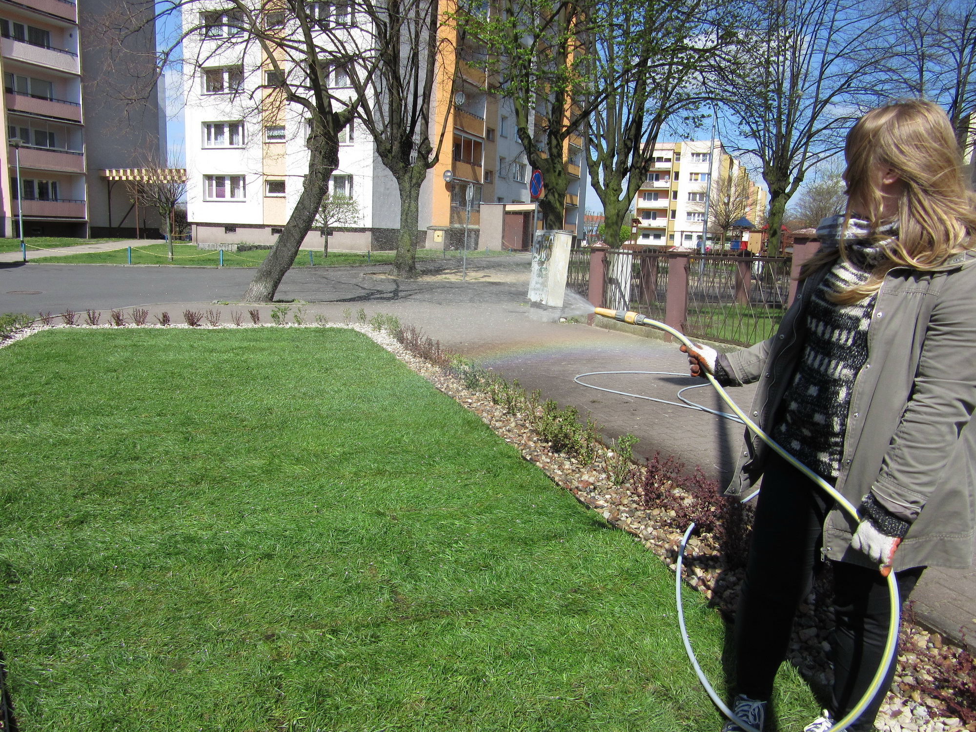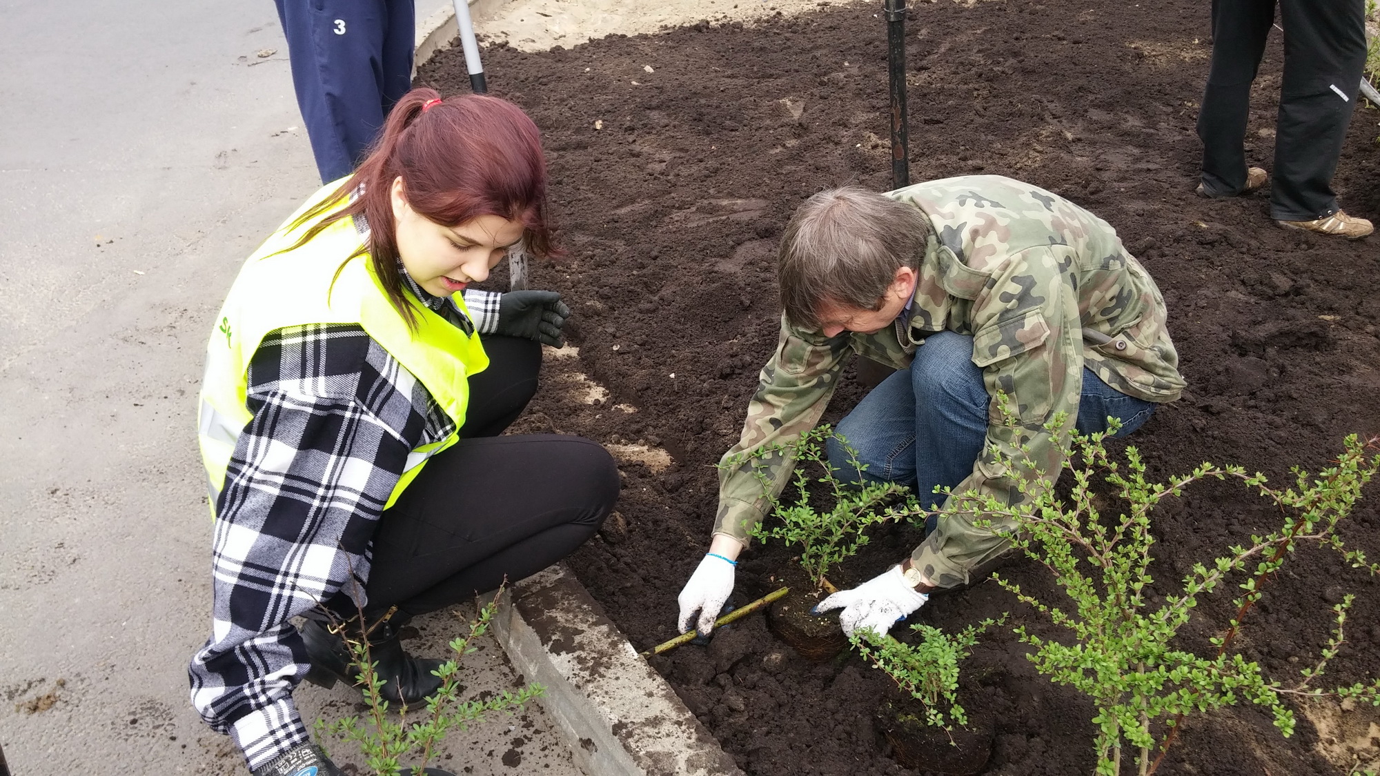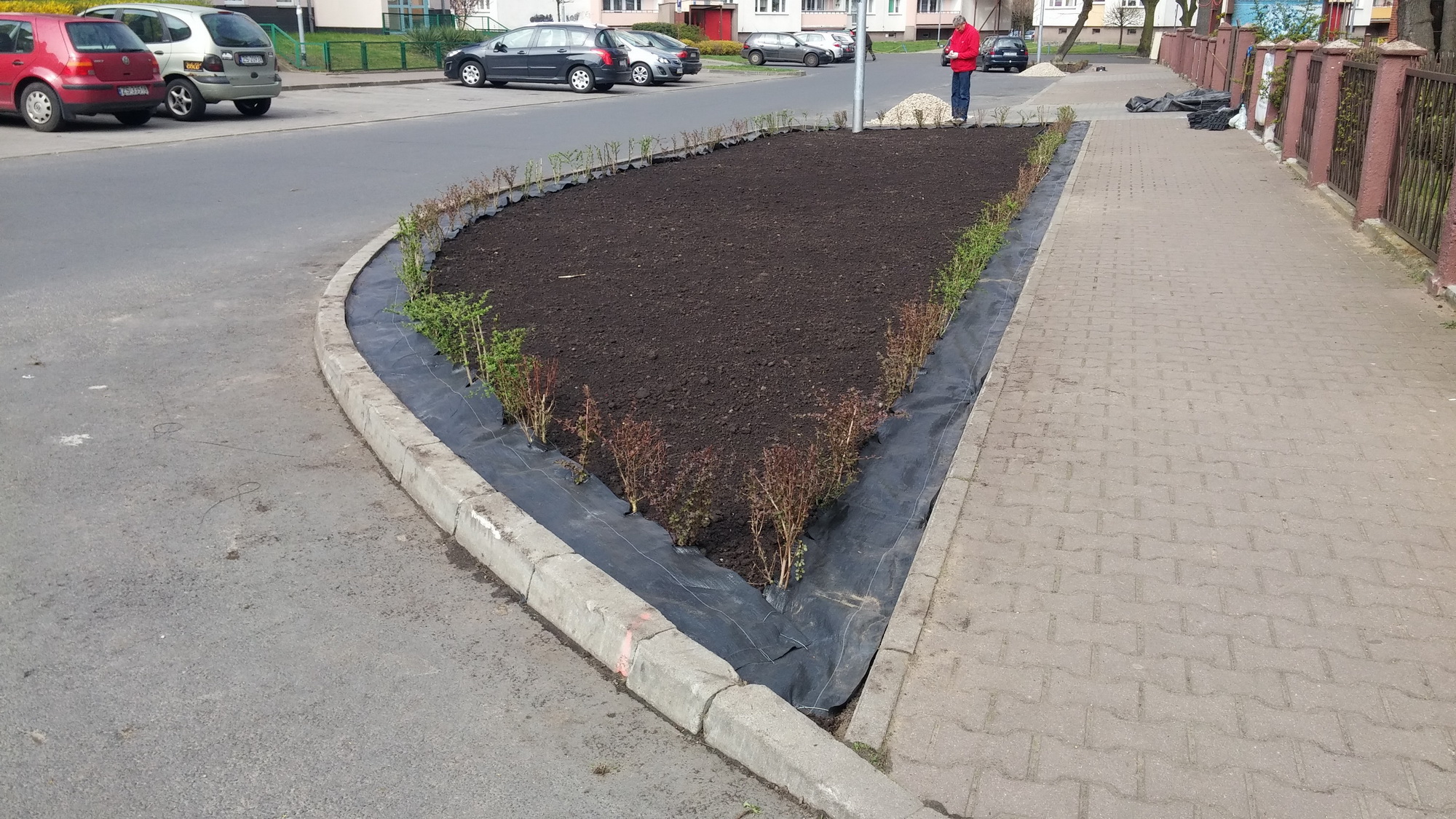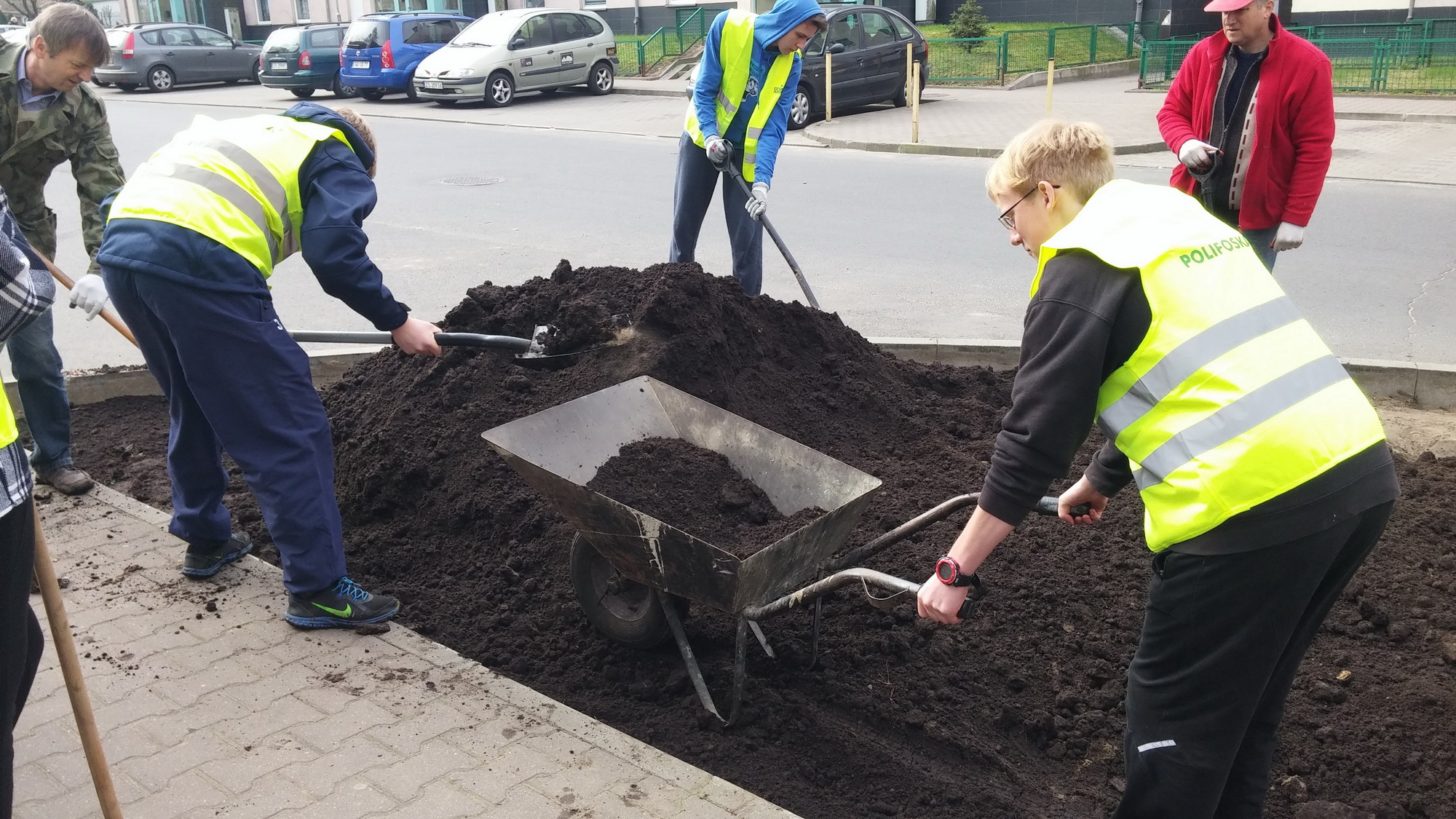 W trakcie praktycznej nauki zawodu – praktyk zawodowych i zajęć praktycznych – realizujemy różnorodne prace upiększania zieleni w naszym mieście. W czwartek 21 kwietnia 2016 roku zakończyliśmy ostatni etap prac związanych z zagospodarowaniu terenu przy Kościele pw. Świętego Ducha w Zdrojach. Prace trwały łącznie siedem dni i były realizowane – zgodnie z opracowanym przez naszych uczniów, kształcących się w zawodzie technik architektury krajobrazu – projektem technicznym zagospodarowania ww. terenu – wykonanego wczesną wiosną. W pierwszym etapie usunęliśmy z tego terenu warstwę ziemi grubości 15 cm wymieszanej z piaskiem po prowadzonych wcześniej pracach remontowo-budowlanych. W etapie drugim w nawiezionym czarnoziemie wykonaliśmy nasadzenia z berberysu Thunberga – w formie żywopłotu na obrzeżach terenu, wyłożyliśmy matę i po montażu obrzeży – ściółkowaliśmy żwirem budowlanym. W etapie trzecim realizacji prac wykonaliśmy centralnie trawnik dywanowy z darni.
