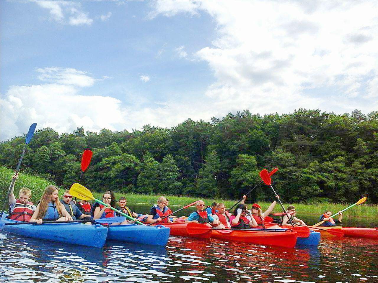 Wspólnie z nauczycielami i uczniami z zaprzyjaźnionego Zespołu Szkół nr 5 – CKP ze Stargardu uczestniczyliśmy w spływie kajakowym Drawą. Znów – jak co roku – mogliśmy podziwiać piękno przyrody zmieniającego się krajobrazu rzeki. Frajdą dla młodzieży były przeszkody, które napotykaliśmy po drodze. Nie obyło się oczywiście bez „mokrego podkoszulka” :). Po wodnych zmaganiach z niejedna niespodzianką na trasie, bezpiecznie dopłynęliśmy do brzegu i przy ognisku – piekąc kiełbaski – z uśmiechem wspominaliśmy poprzednie spływy. I tak zakończył się cudowny dzień spędzony na łonie natury.