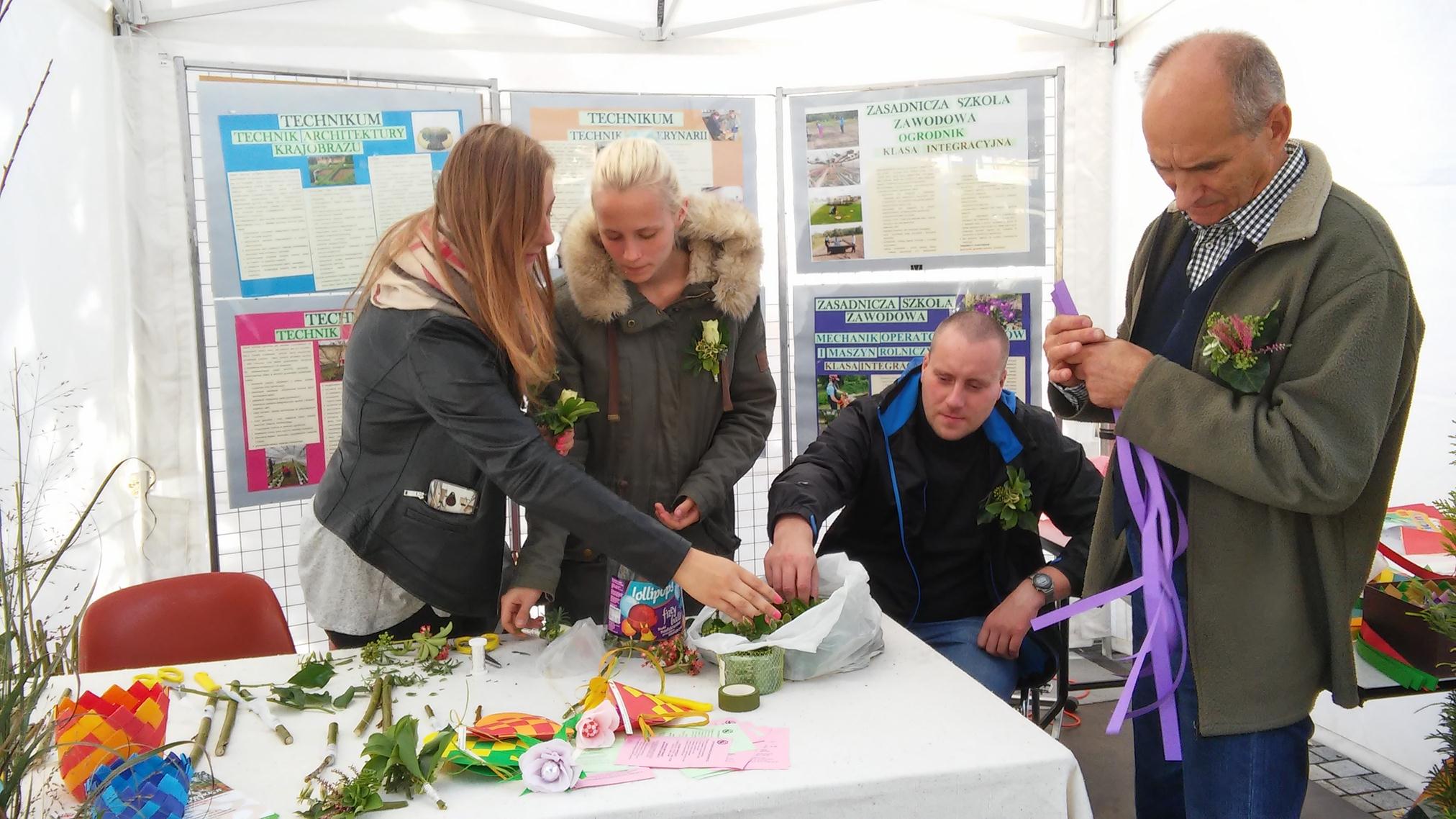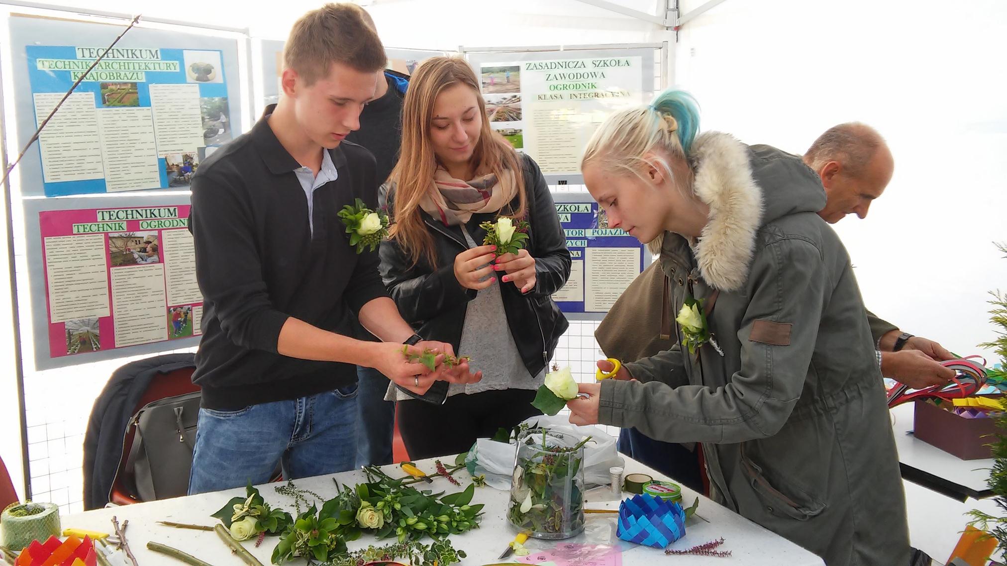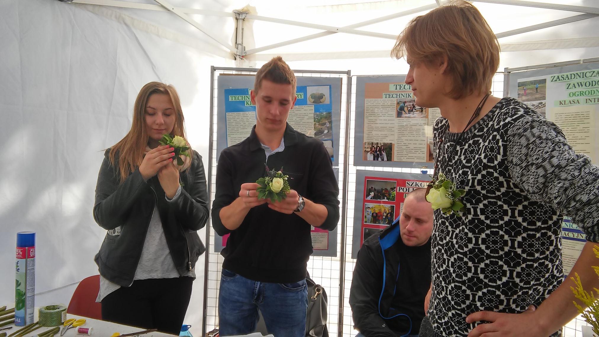 W dniach 24 i 25 września 2016 roku Szczecin znów tętnił ogrodniczym życiem. Na Alei Kwiatowej, Placu Żołnierza i Placu Lotników odbywała się bowiem kolejna, jesienna edycja targów MIASTO OGRÓD – zielony event. To rodzaj imprezy – w formie plenerowego jarmarku pod chmurką, w której uczestniczyliśmy. Przez dwa dni udzielaliśmy porad ogrodniczych. W sobotę na naszym zielonym stoisku, odbywały się pokazy: pokazy szczepienia, okulizacji krzewów i drzew owocowych. Każdy zainteresowany mógł samodzielnie wykonać kwiatową dekorację lizaków. W niedzielę natomiast, uczniowie tworzyli przypinki z darów jesieni. Uczyli się również wyplatania koszyków z papierowych pasków.