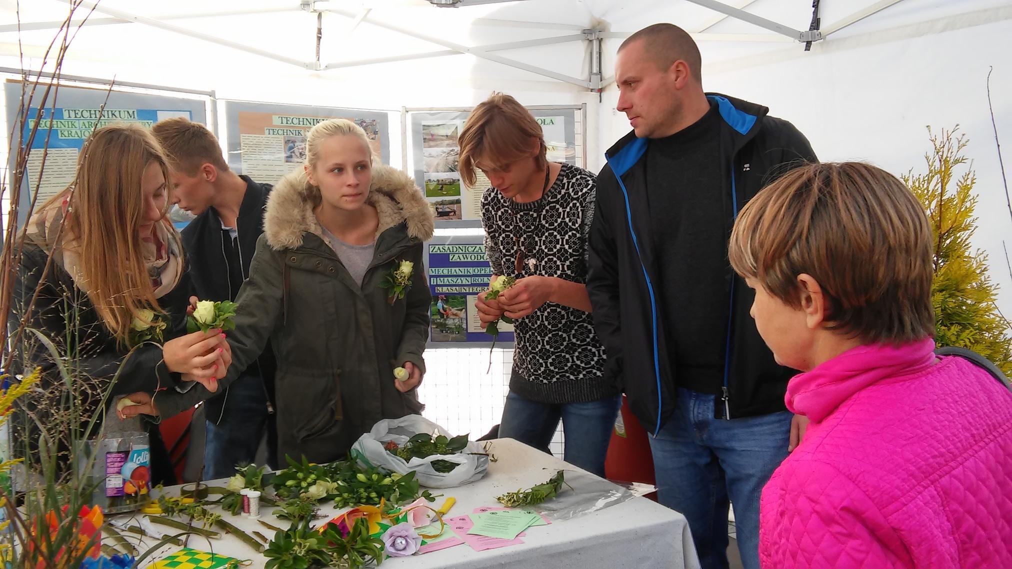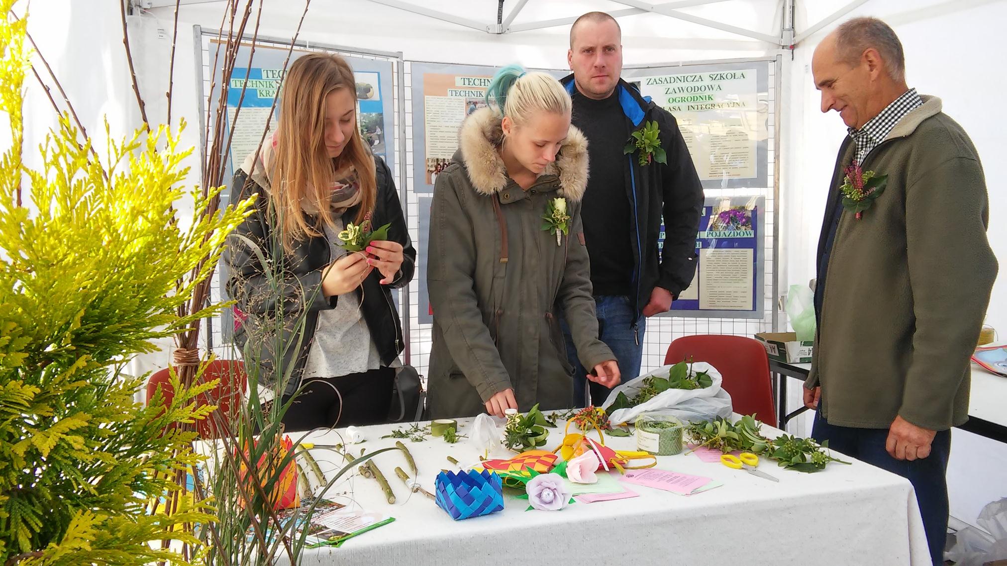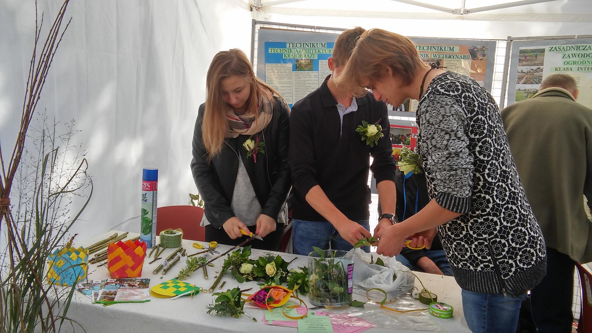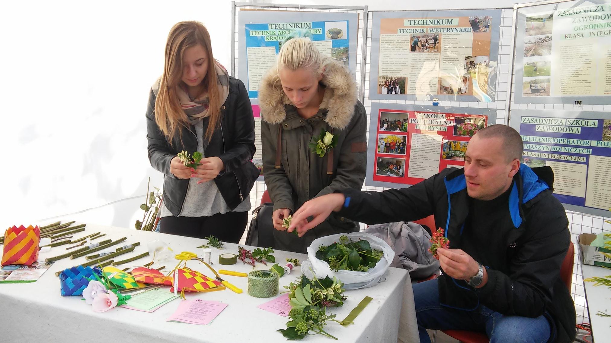 W dniach 24 i 25 września 2016 roku Szczecin znów tętnił ogrodniczym życiem. Na Alei Kwiatowej, Placu Żołnierza i Placu Lotników odbywała się bowiem kolejna, jesienna edycja targów MIASTO OGRÓD – zielony event. To rodzaj imprezy – w formie plenerowego jarmarku pod chmurką, w której uczestniczyliśmy. Przez dwa dni udzielaliśmy porad ogrodniczych. W sobotę na naszym zielonym stoisku, odbywały się pokazy: pokazy szczepienia, okulizacji krzewów i drzew owocowych. Każdy zainteresowany mógł samodzielnie wykonać kwiatową dekorację lizaków. W niedzielę natomiast, uczniowie tworzyli przypinki z darów jesieni. Uczyli się również wyplatania koszyków z papierowych pasków.