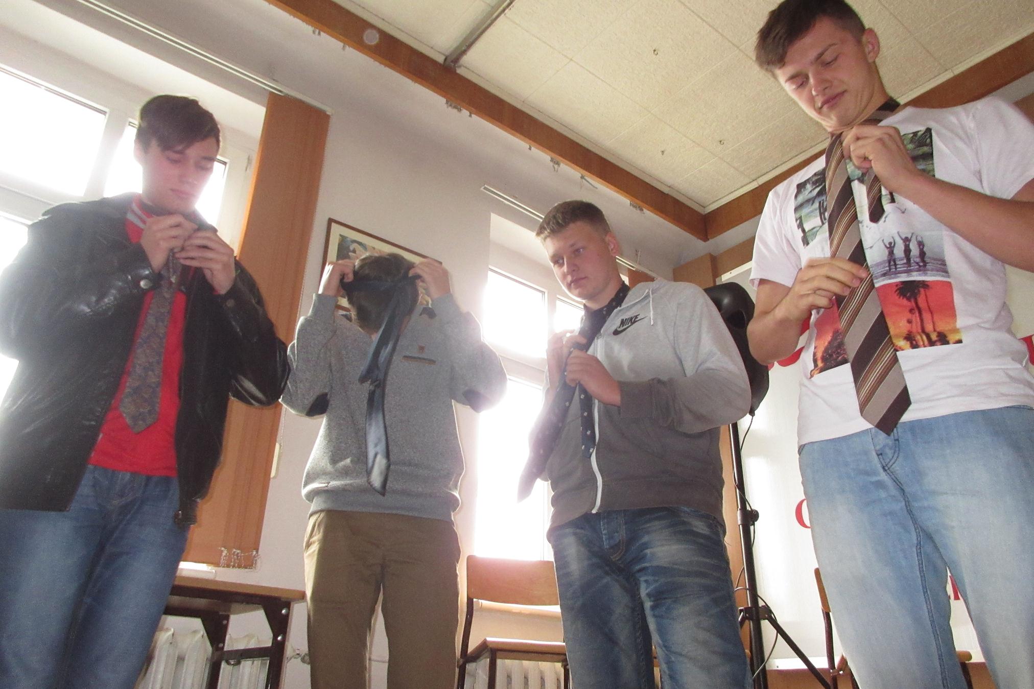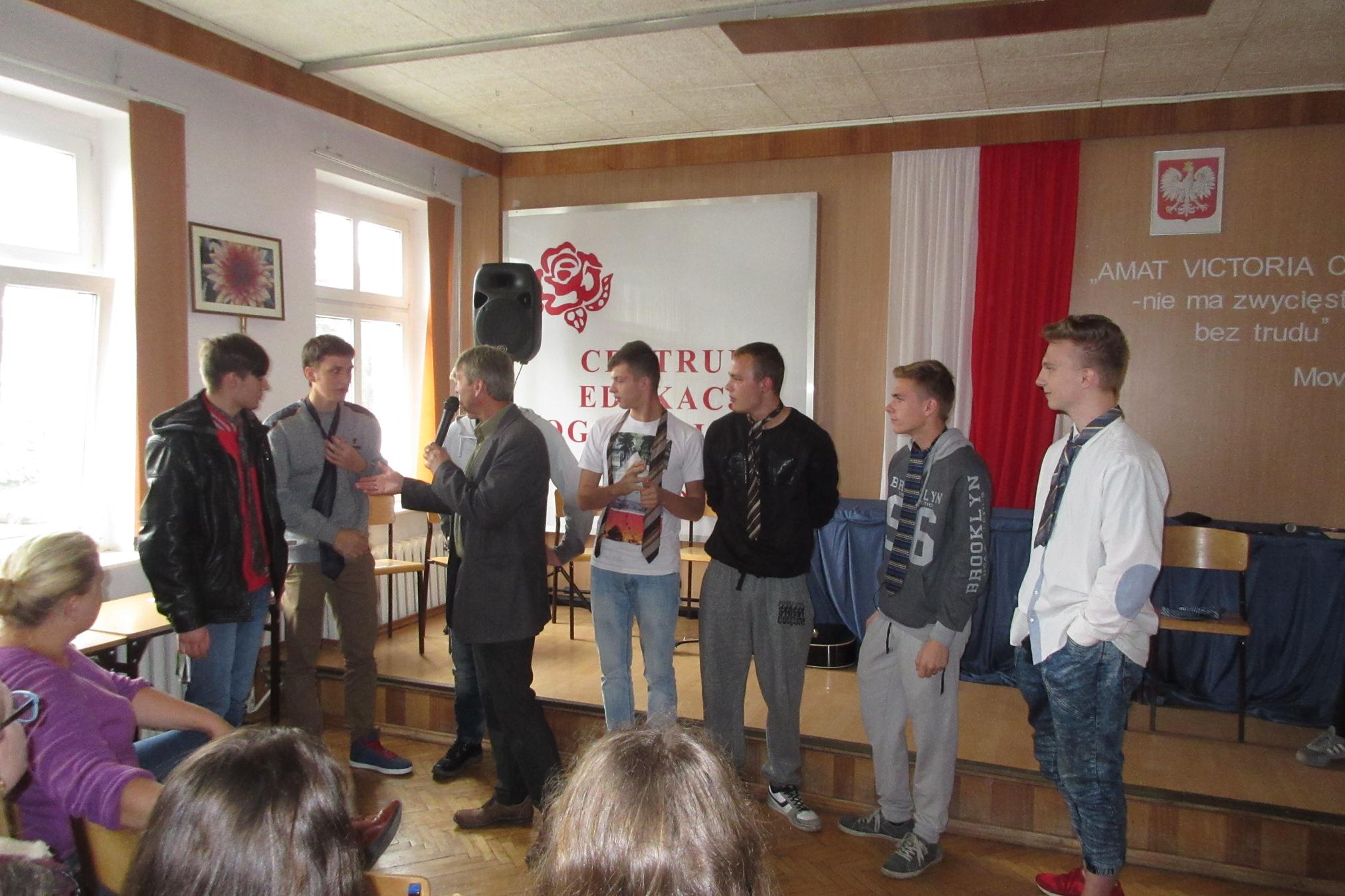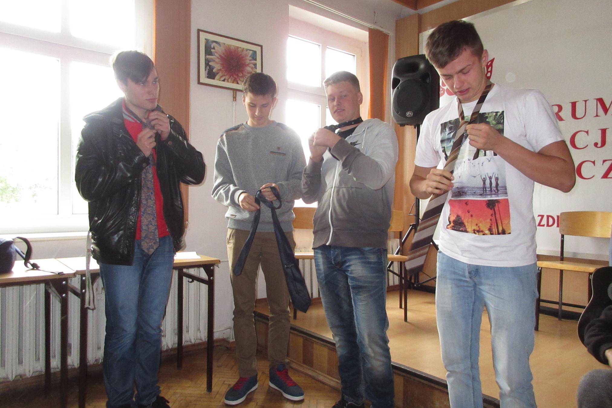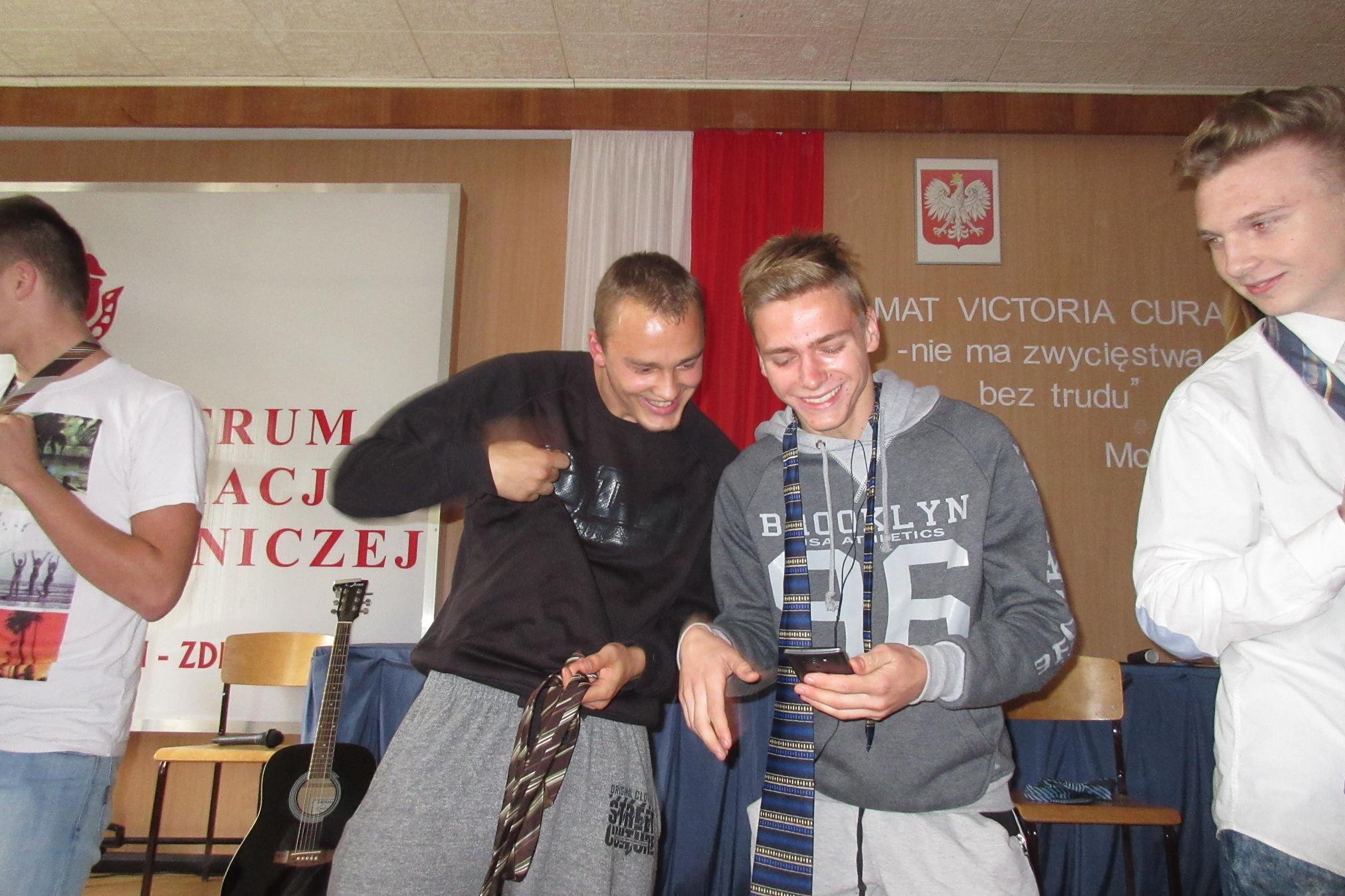 Minął miesiąc nauki w nowym roku szkolnym. Pierwszakom przeszło już onieśmielenie nową szkołą, a „starszaki” zapomnieli o wakacjach. Nie brakowało okazji do wzajemnego poznania się i integracji. Ostatnio taką sposobnością był Dzień Chłopaka. Dziewczyny stanęły na wysokości zadania i zorganizowały bardzo sympatyczne obchody tej „nowej świeckiej tradycji”. Był szkolny plebiscyt na najsmerfniejszego chłopaka i to w wielu kategoriach. Zespół muzyczno-wokalny błysnął bardzo kokieteryjnym repertuarem, niby użalając się nad trudną sytuacją chłopców w sfeminizowanej szkole, a w gruncie rzeczy – krytykując pewne „niedomagania” płci męskiej. Świadczył o tym choćby konkurs piekielnie trudnej sztuki wiązania krawatów czy przyszywania guzików na czas. Jeden z uczestników przyszył guzik tak, że się trzymał materiału, a pozostali w ciągu trzech minut zdołali nawlec nitkę na igłę. Były też pytania z zakresu naprawy urządzeń domowych. W sumie śmiechu było co niemiara i z niepokojem należy oczekiwać na rewanż w dniu 8 marca.