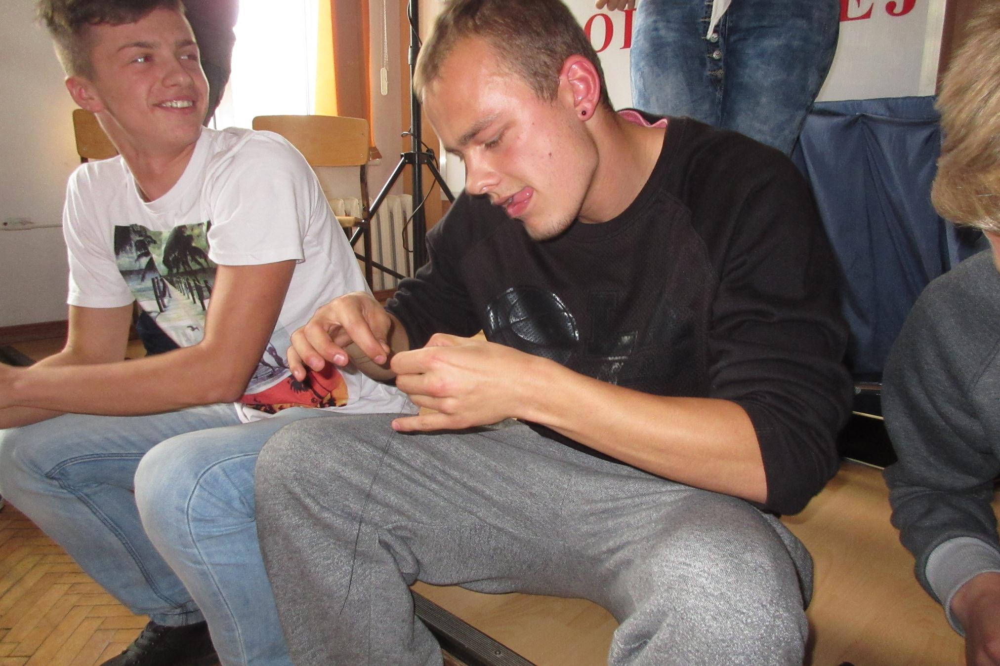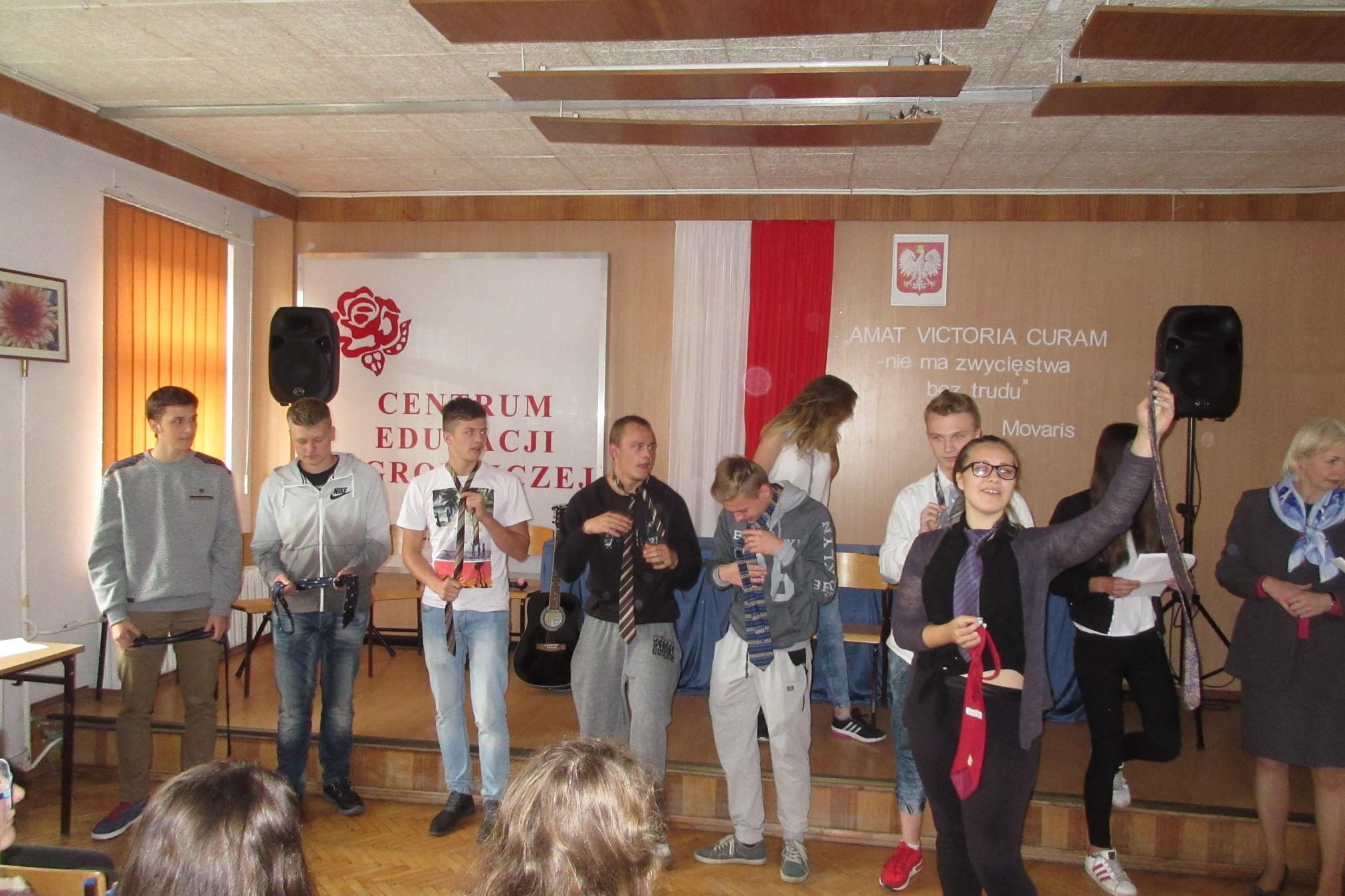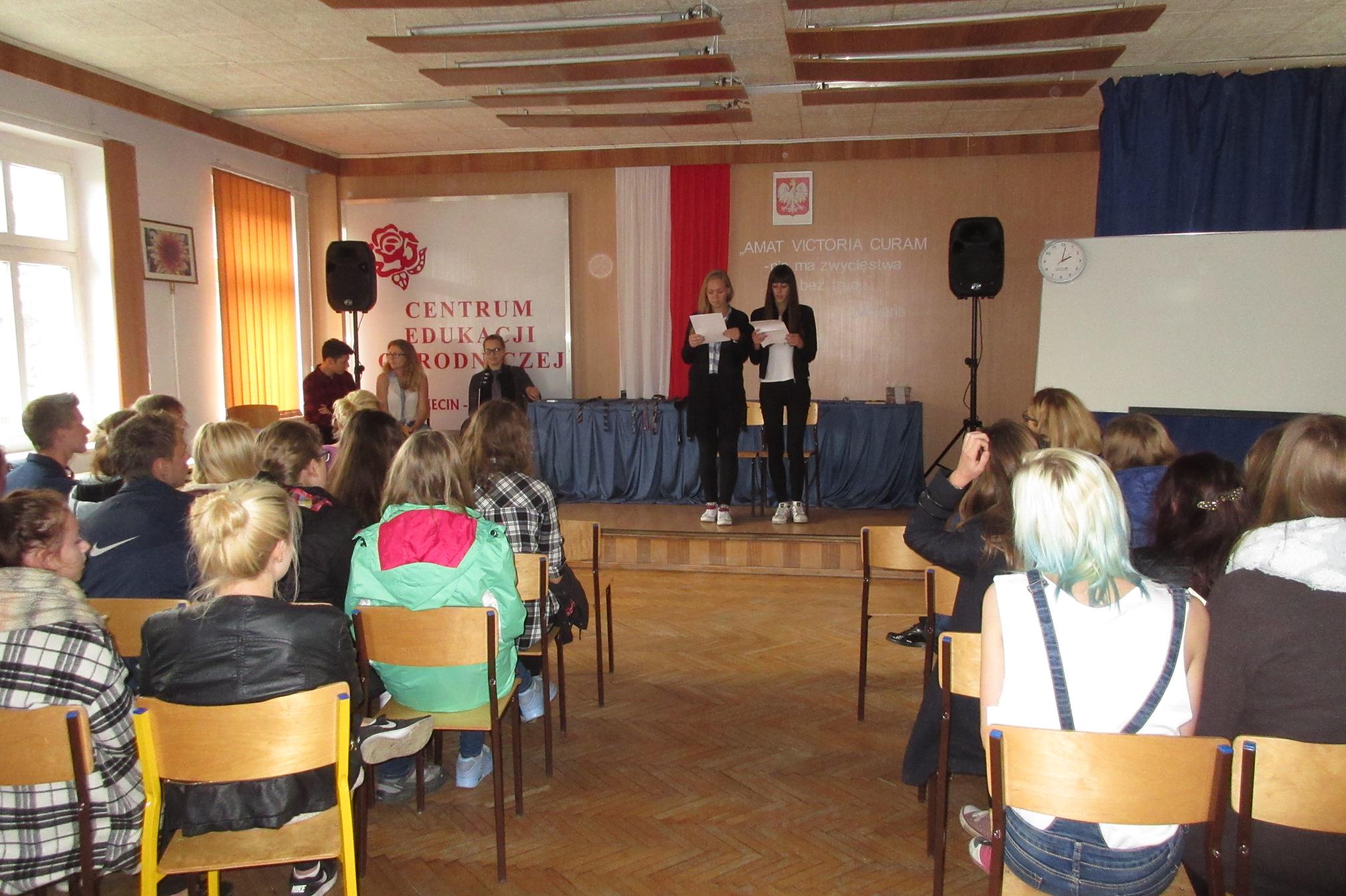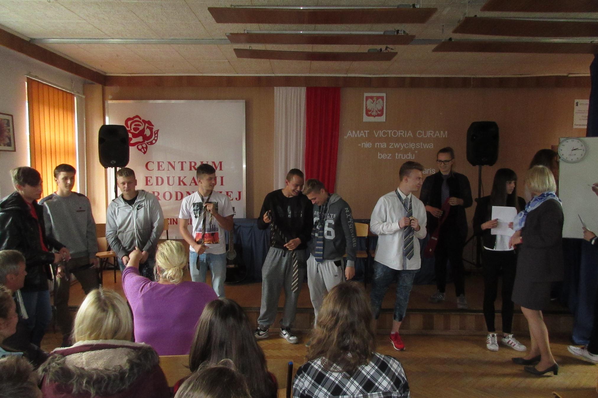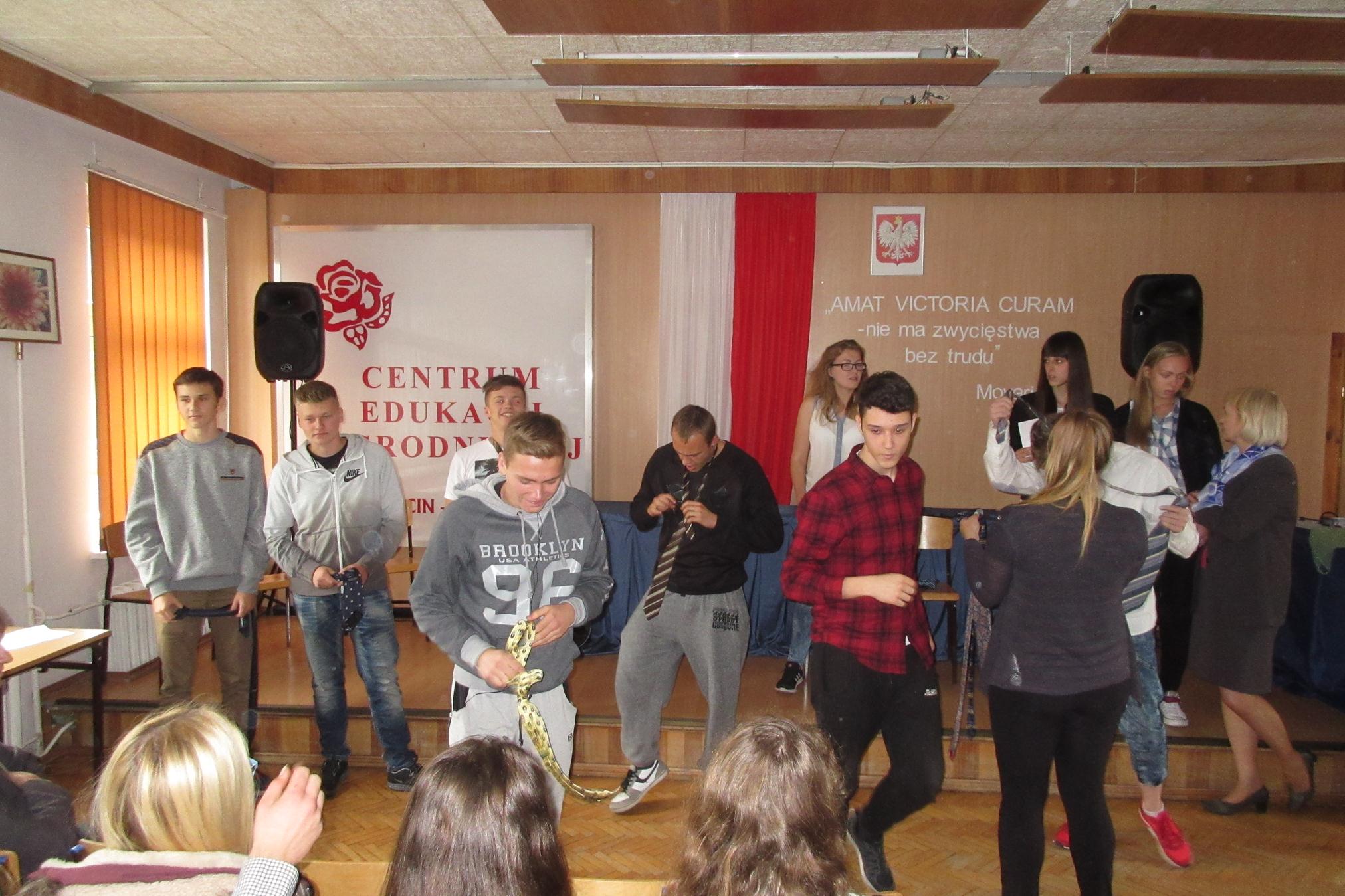 Minął miesiąc nauki w nowym roku szkolnym. Pierwszakom przeszło już onieśmielenie nową szkołą, a „starszaki” zapomnieli o wakacjach. Nie brakowało okazji do wzajemnego poznania się i integracji. Ostatnio taką sposobnością był Dzień Chłopaka. Dziewczyny stanęły na wysokości zadania i zorganizowały bardzo sympatyczne obchody tej „nowej świeckiej tradycji”. Był szkolny plebiscyt na najsmerfniejszego chłopaka i to w wielu kategoriach. Zespół muzyczno-wokalny błysnął bardzo kokieteryjnym repertuarem, niby użalając się nad trudną sytuacją chłopców w sfeminizowanej szkole, a w gruncie rzeczy – krytykując pewne „niedomagania” płci męskiej. Świadczył o tym choćby konkurs piekielnie trudnej sztuki wiązania krawatów czy przyszywania guzików na czas. Jeden z uczestników przyszył guzik tak, że się trzymał materiału, a pozostali w ciągu trzech minut zdołali nawlec nitkę na igłę. Były też pytania z zakresu naprawy urządzeń domowych. W sumie śmiechu było co niemiara i z niepokojem należy oczekiwać na rewanż w dniu 8 marca.