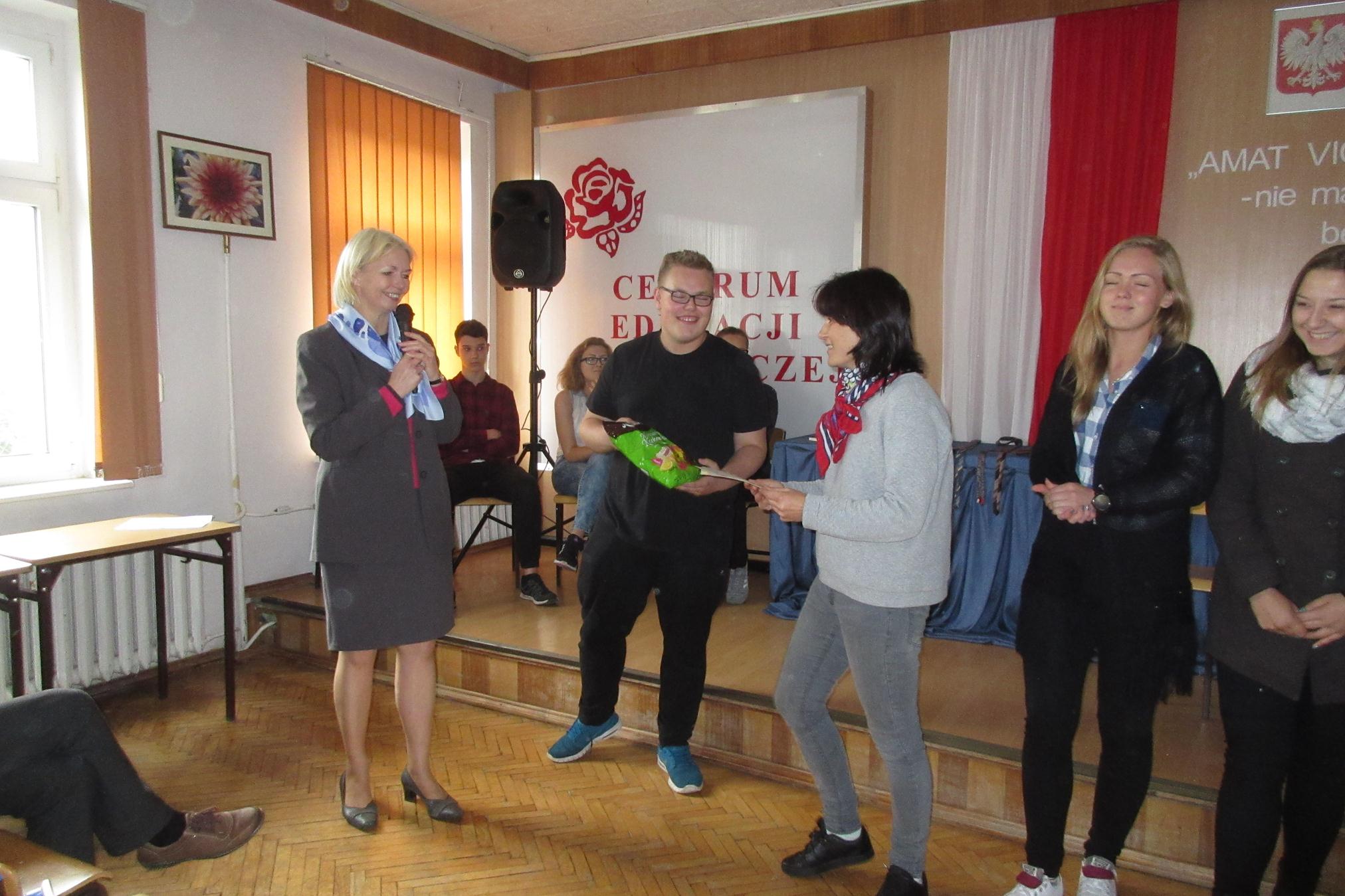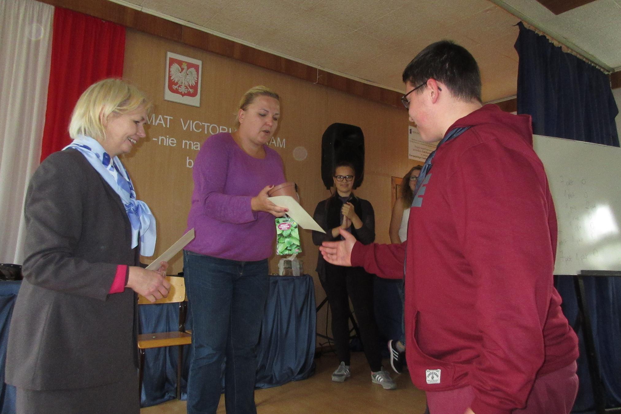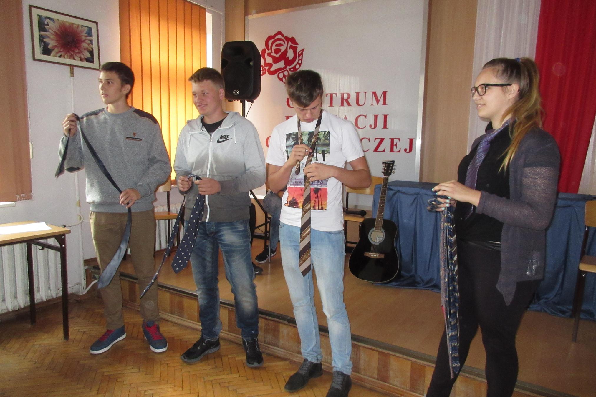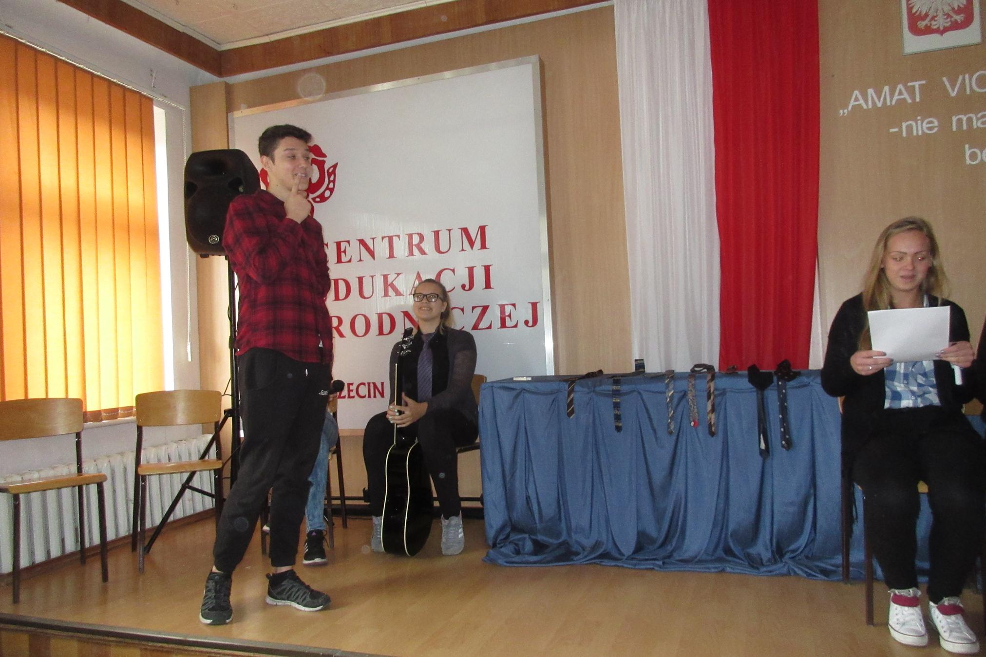 Minął miesiąc nauki w nowym roku szkolnym. Pierwszakom przeszło już onieśmielenie nową szkołą, a „starszaki” zapomnieli o wakacjach. Nie brakowało okazji do wzajemnego poznania się i integracji. Ostatnio taką sposobnością był Dzień Chłopaka. Dziewczyny stanęły na wysokości zadania i zorganizowały bardzo sympatyczne obchody tej „nowej świeckiej tradycji”. Był szkolny plebiscyt na najsmerfniejszego chłopaka i to w wielu kategoriach. Zespół muzyczno-wokalny błysnął bardzo kokieteryjnym repertuarem, niby użalając się nad trudną sytuacją chłopców w sfeminizowanej szkole, a w gruncie rzeczy – krytykując pewne „niedomagania” płci męskiej. Świadczył o tym choćby konkurs piekielnie trudnej sztuki wiązania krawatów czy przyszywania guzików na czas. Jeden z uczestników przyszył guzik tak, że się trzymał materiału, a pozostali w ciągu trzech minut zdołali nawlec nitkę na igłę. Były też pytania z zakresu naprawy urządzeń domowych. W sumie śmiechu było co niemiara i z niepokojem należy oczekiwać na rewanż w dniu 8 marca.