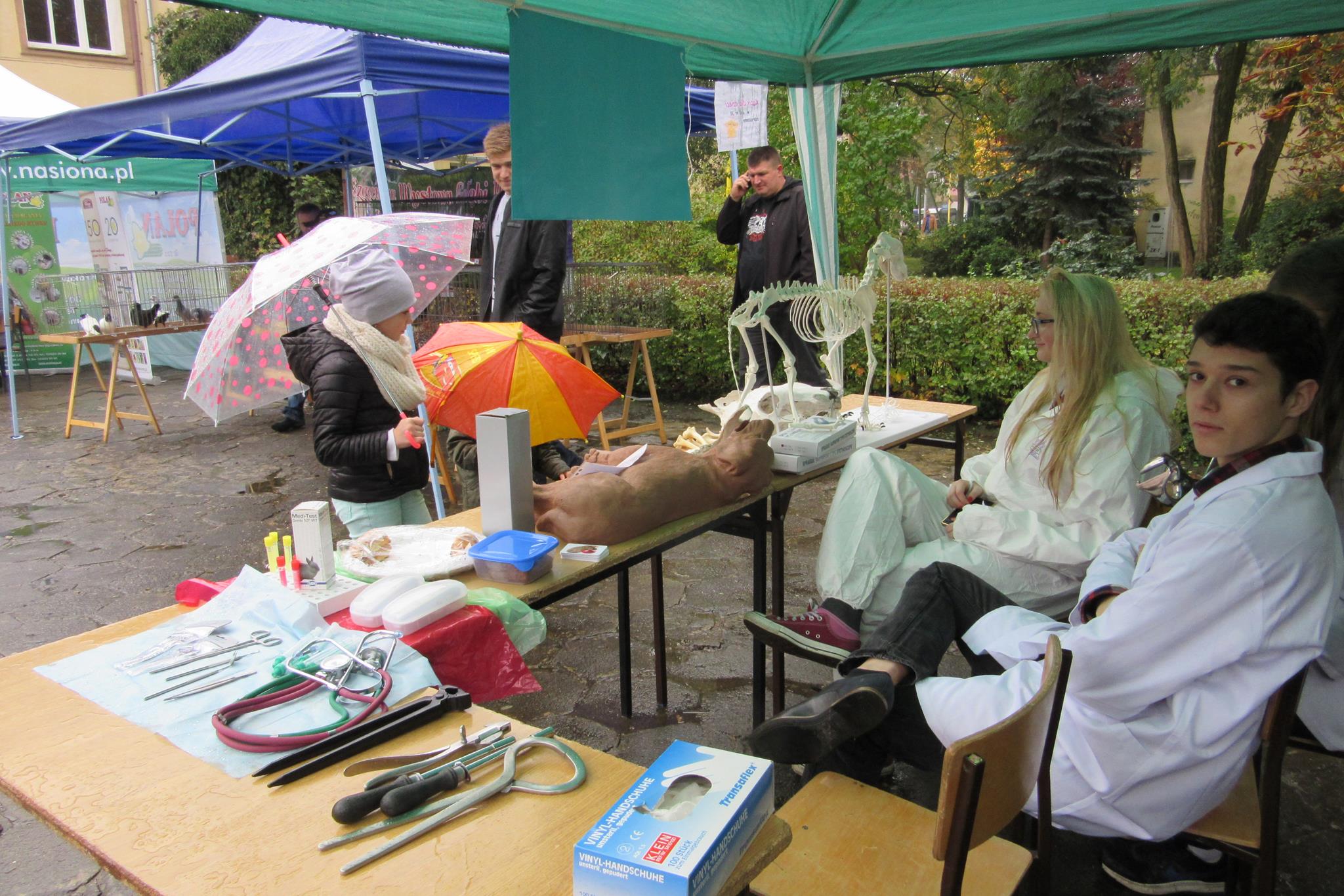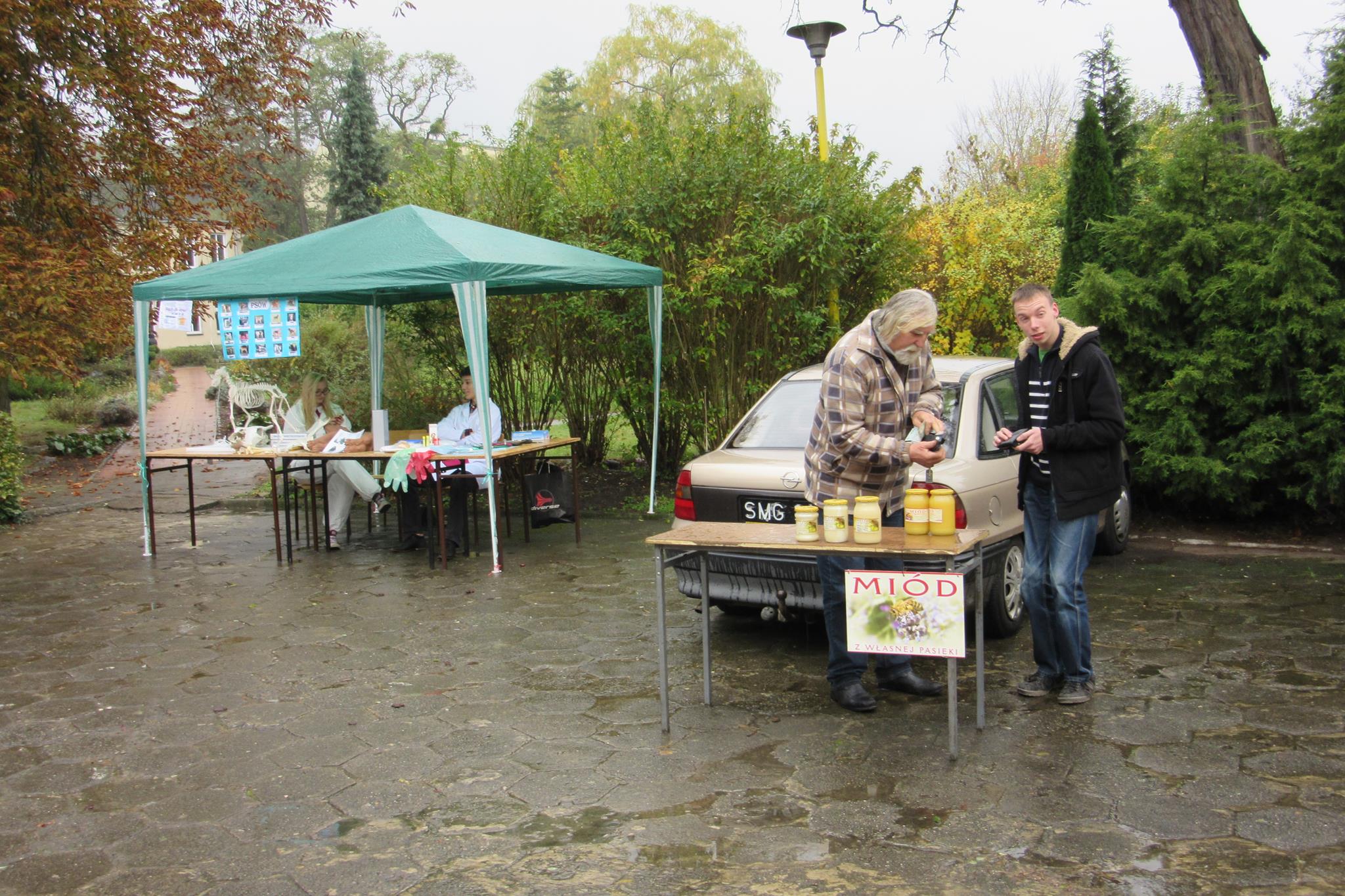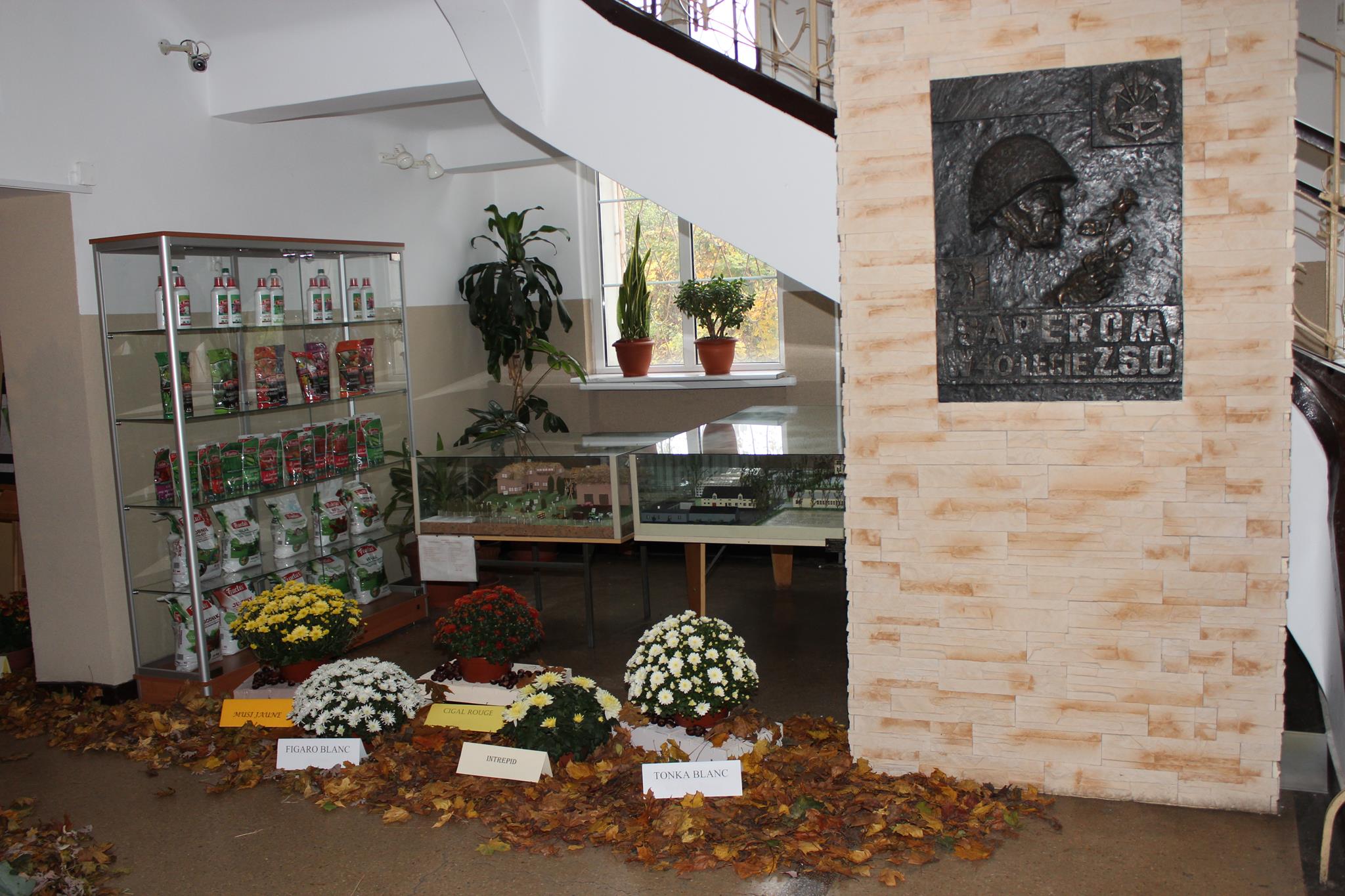 Wprawdzie w strugach deszczu, ale jak co roku – 22 i 23 października – w naszej szkole odbył się kiermasz połączony ze sprzedażą najpiękniejszych kwiatów jesieni – chryzantem. W szklarniach zaroiło się od kupujących, którym niestraszny był deszcz i kolejki do kasy. Dużym zainteresowaniem cieszyły się również stoiska z warzywami i owocami. W szkolnym holu odwiedzający mogli podziwiać niesamowitą wystawę darów jesieni – warzyw i owoców. Oprócz pięknych kwiatów, zdrowych owoców i warzyw można było zapoznać się z radami hodowców gołębi, porozmawiać z przyszłymi technikami weterynarii, posłuchać koncertu uczniów szkoły muzycznej. A żeby osłodzić sobie „mokre buty”, Rada Rodziców oferowała ciepłe napoje i bardzo smaczne ciasta własnego wypieku. Wszyscy nasi goście opuszczali mury szkoły zadowoleni, a najmłodsi z uśmiechem na buzi „dźwigali” wspaniałe i pomysłowo wycięte przez naszych uczniów dynie.