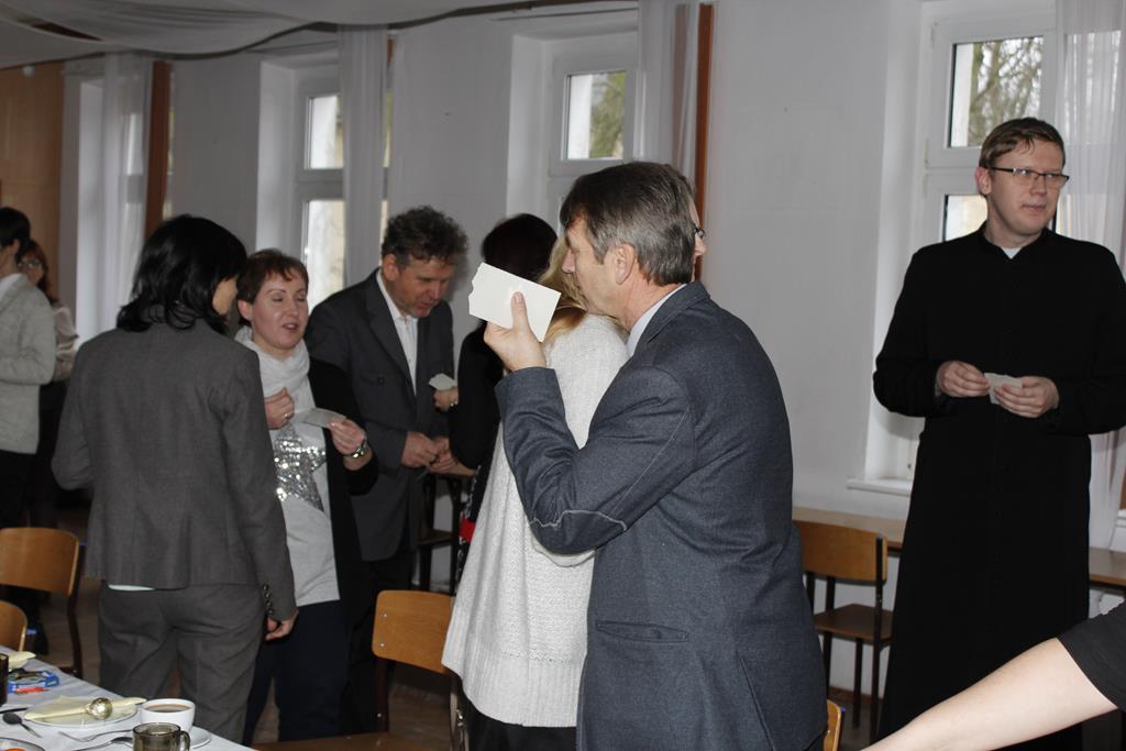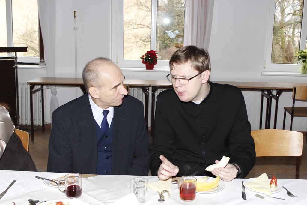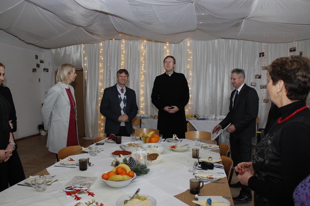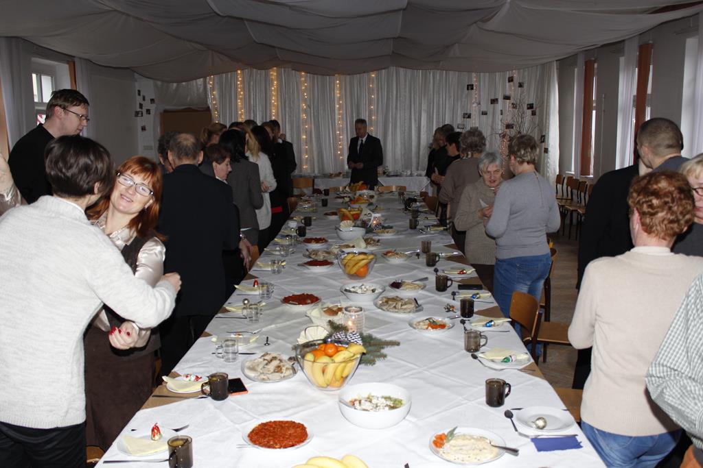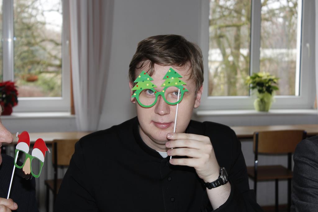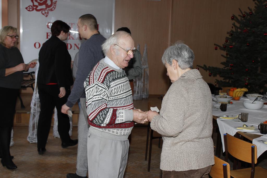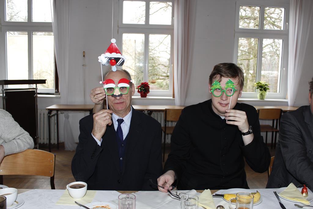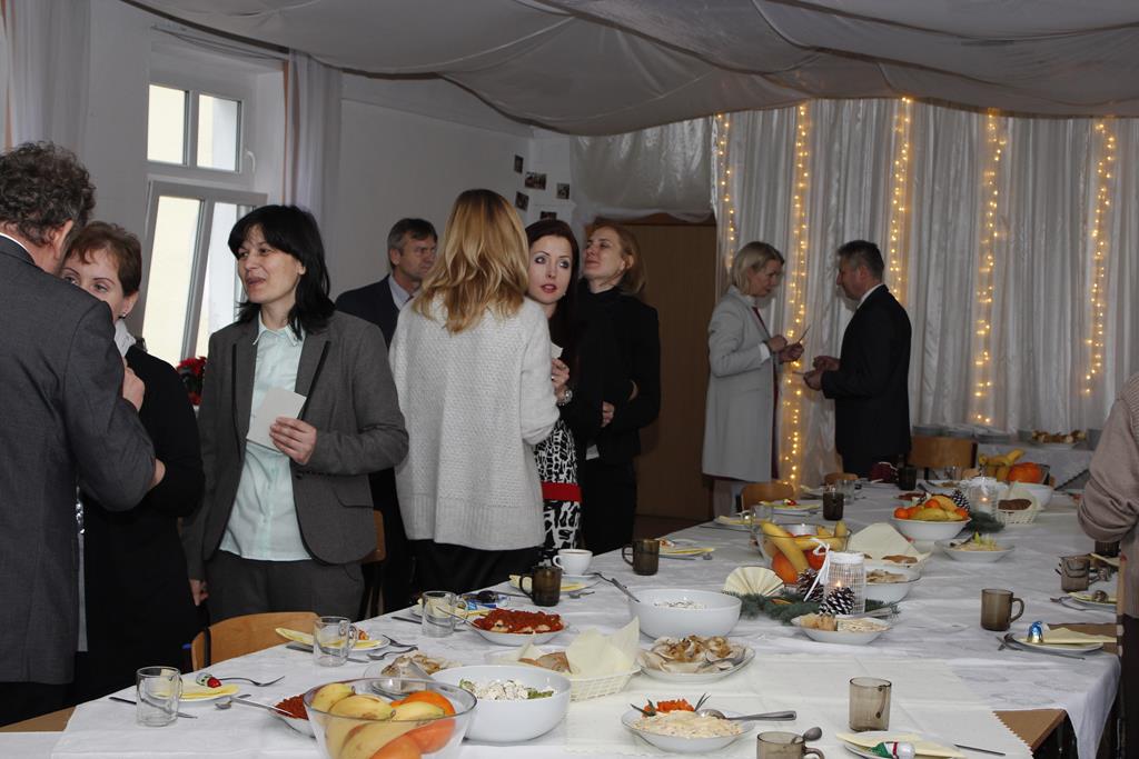 Z okazji nadchodzących Świąt Bożego Narodzenia odbyło się spotkanie wigilijne, w którym uczestniczyli pracownicy i emeryci naszej szkoły. Po przemówieniu księdza Macieja, który wprowadził wszystkich w atmosferę świąteczną, nastąpiło tradycyjne dzielenie się opłatkiem. Była to też okazja do składania sobie życzeń nie tylko bożonarodzeniowych, ale także na Nowy Rok. A potem były tradycyjne potrawy, wśród których „królowały” pierogi z barszczem. Wszystkim dopisywał dobry humor, co – w trakcie szkolnej wigilii 22 grudnia 2016 roku – uwiecznił nasz fotograf :).