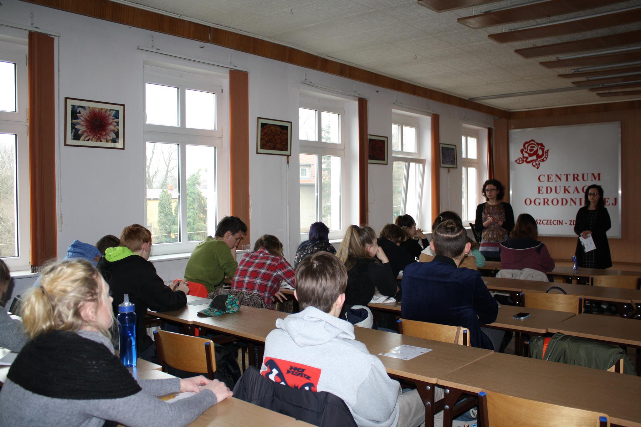 z Zachodniopomorskiej Wojewódzkiej Komendy OHP w Szczecinie oraz doradcą zawodowym z Młodzieżowego Centrum Kariery w Szczecinie. Panie – Anna Butkiewicz-Schodowska i Izabela Drużbińska – wprowadziły młodzież w tematykę związaną z przepisami prawa pracy w Polsce i uregulowaniami prawnymi w krajach członkowskich sieci EURES. Mówiły o nielegalnej pracy zarobkowej, o zaplanowaniu bezpiecznych wyjazdów za granicę. Dzieliły się informacjami i uwagami, dotyczącymi poszukiwania pracy zarówno w Polsce, jak i za granicą. Opowiadały o przypadkach handlu ludźmi. Na koniec spotkania uczestnicy zostali zapoznani z możliwościami i sposobem korzystania z ofert Młodzieżowego Centrum Kariery OHP w Szczecinie i sieci EURES. Być może uzyskane informacje staną się przydatne w poszukiwaniu pracy i będą początkiem kariery zawodowej naszych absolwentów.