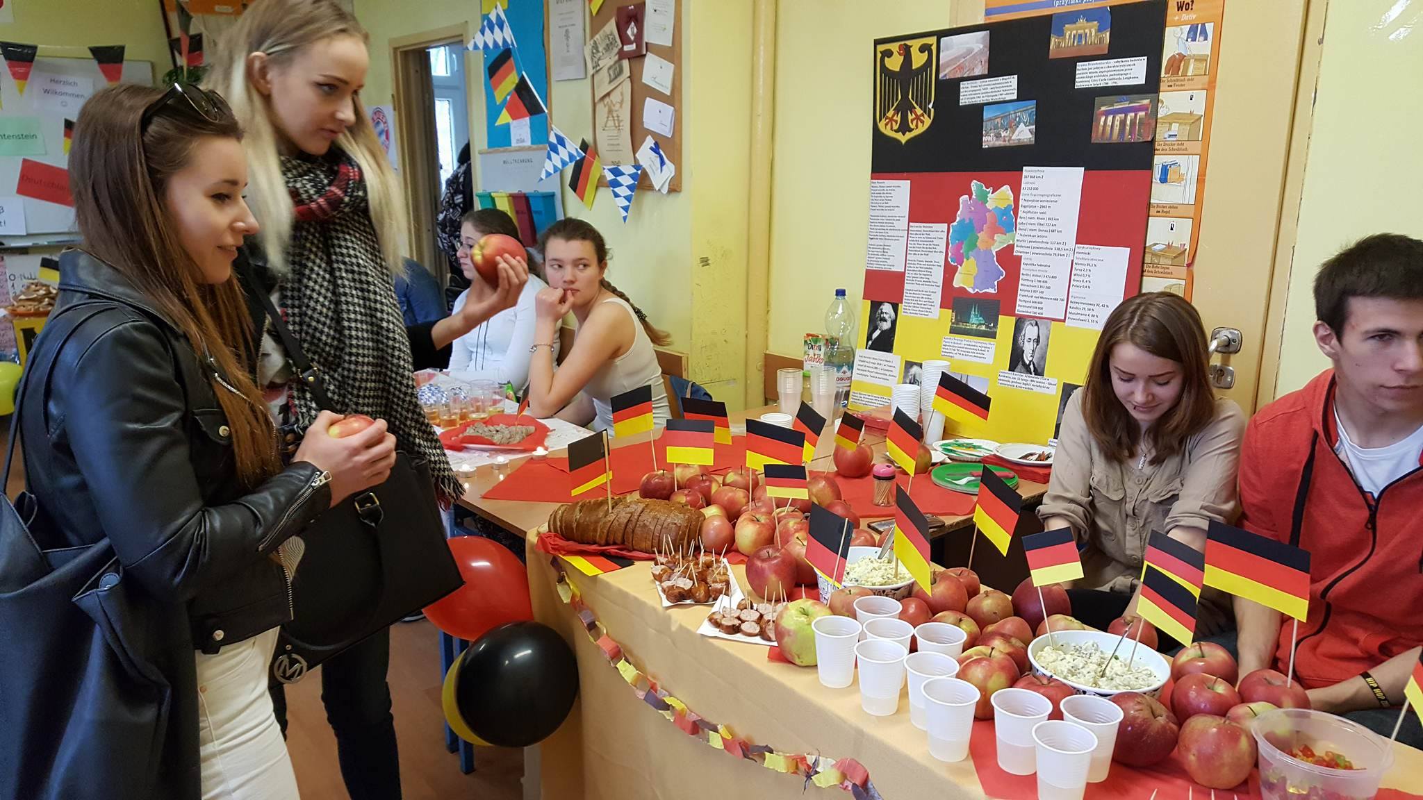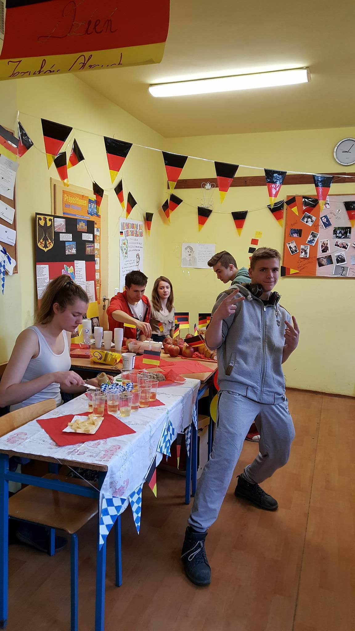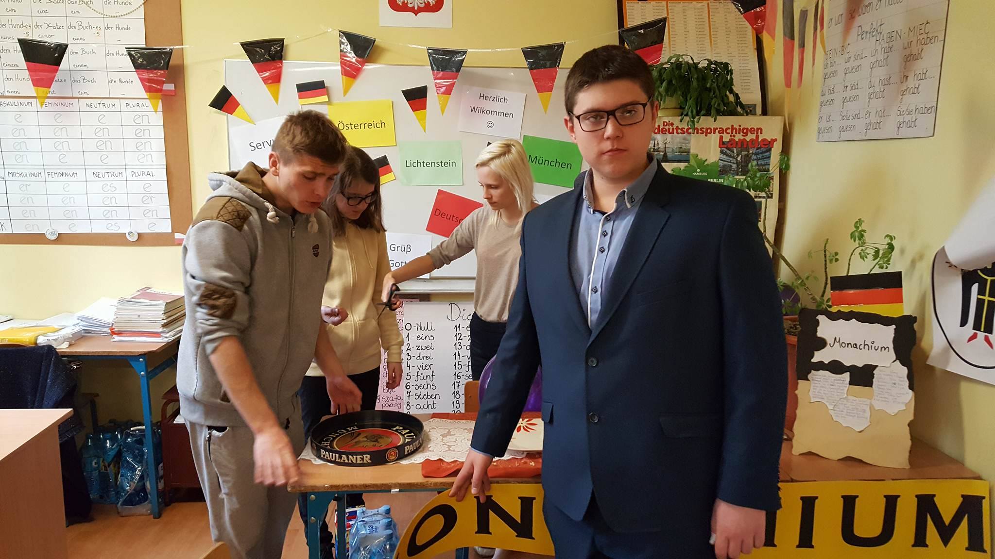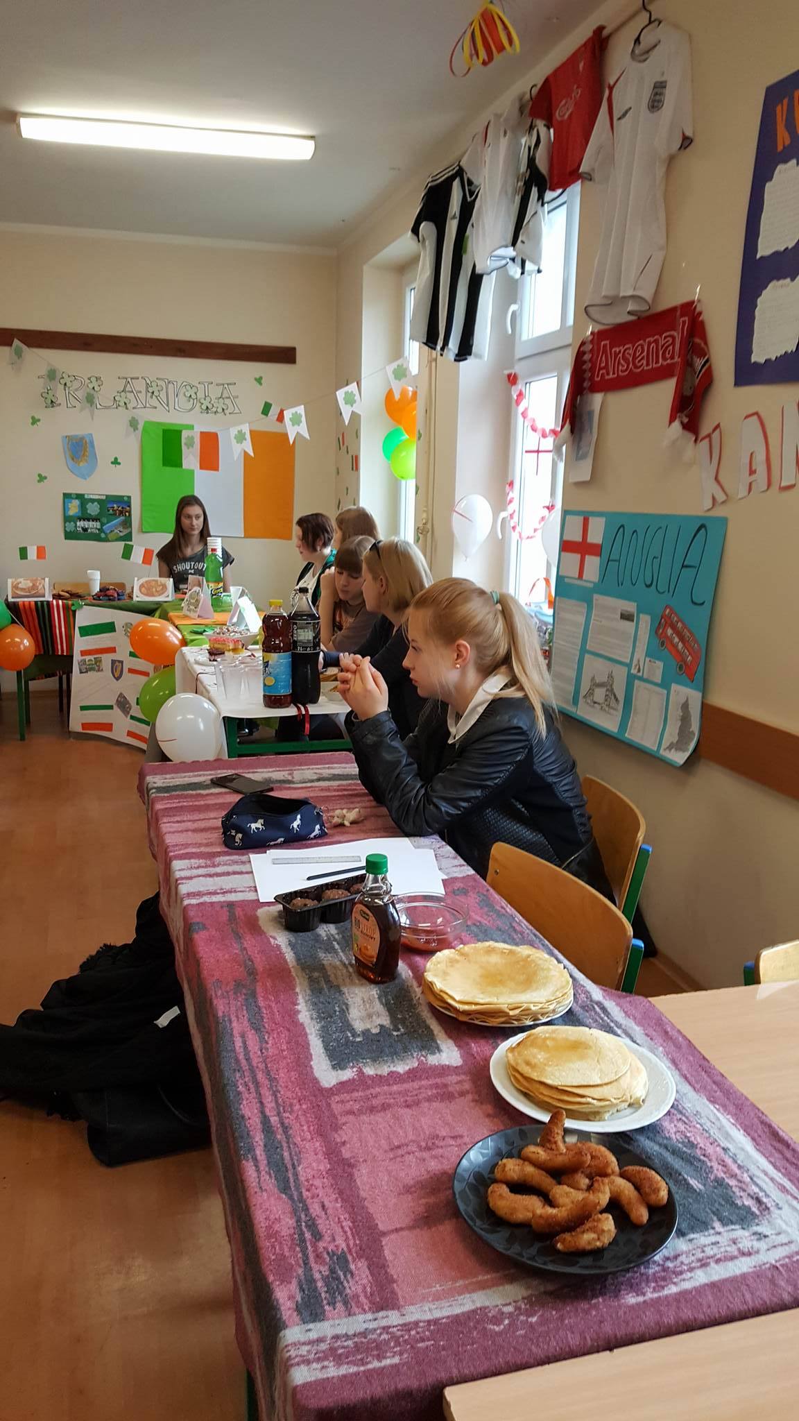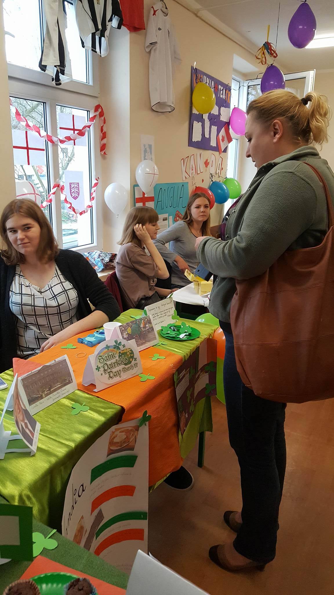 Głównym punktem i zarazem efektem przygotowań czteroosobowych grup uczniów klas pierwszych, było zaprezentowanie wystaw przedstawiających kraje niemiecko – i anglojęzyczne oraz zaproszenie kolegów i koleżanek z innych klas wraz z opiekunami na degustację potraw. Uczniowie z wielkim zaangażowaniem pracowali nad przygotowaniem swoich „wysp językowych”, własnoręcznie wykonali dekoracje, dobrali i przygotowali podkład muzyczny, a także sporządzili różne potrawy według oryginalnych przepisów niemieckich i angielskich. Zaprezentowane zostały: Anglia, Irlandia, Walia, Stany Zjednoczone, Kanada, Australia, Niemcy, Monachium, Bawaria, Księstwo Lichtensteinu, Austria oraz Szwajcaria. Każdy uczeń oraz nauczyciel po obejrzeniu wszystkich stanowisk miał prawo oddania jednego głosu na wybrany kraj. Zwycięska drużyna zostanie nagrodzona na najbliższym apelu słodką niespodzianką.