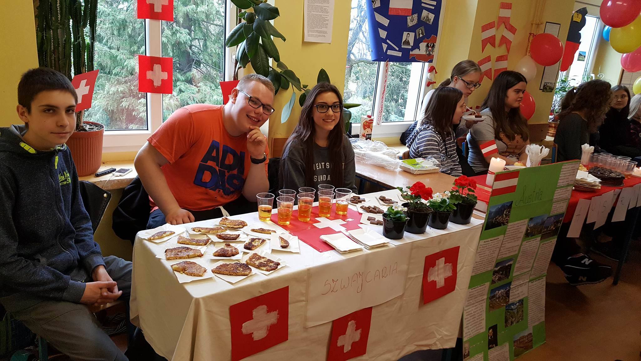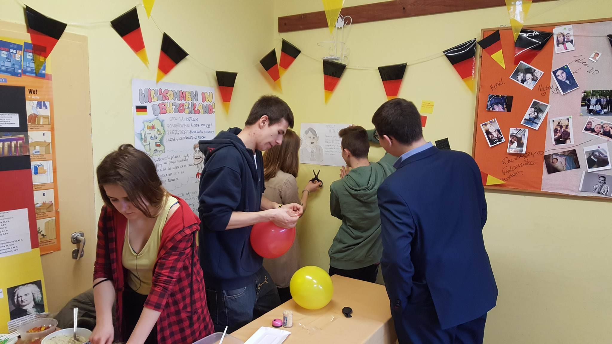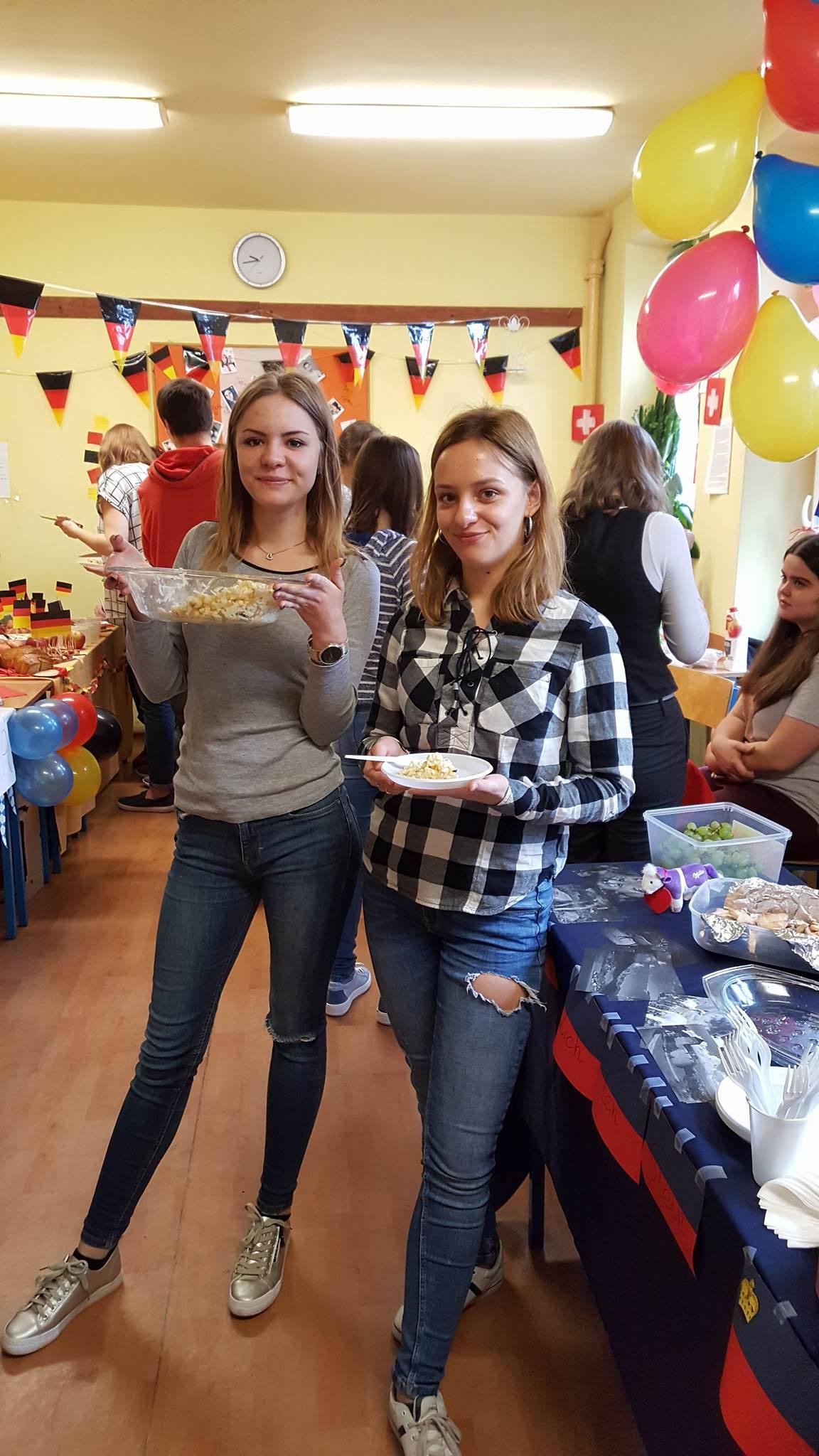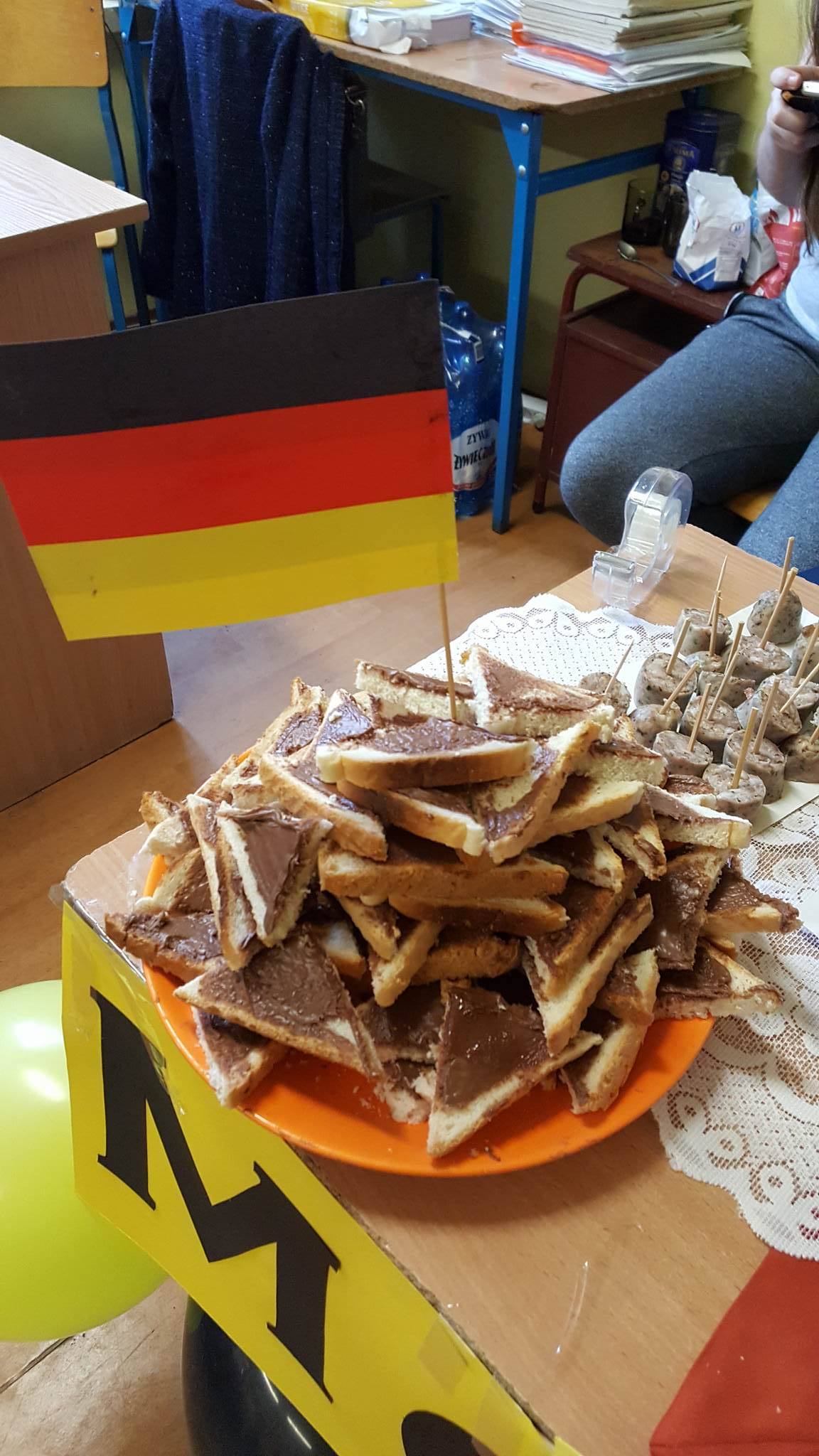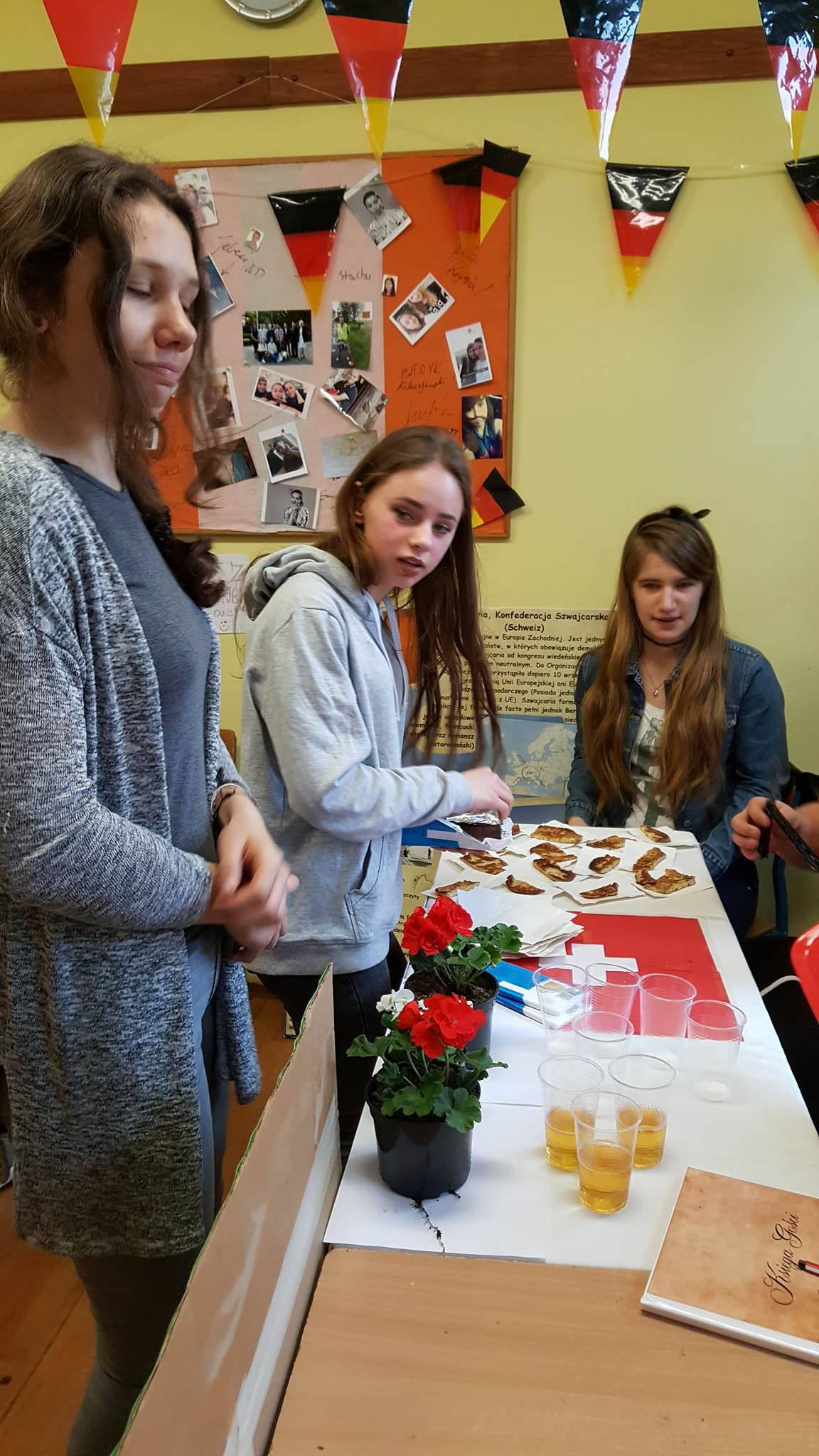 Głównym punktem i zarazem efektem przygotowań czteroosobowych grup uczniów klas pierwszych, było zaprezentowanie wystaw przedstawiających kraje niemiecko – i anglojęzyczne oraz zaproszenie kolegów i koleżanek z innych klas wraz z opiekunami na degustację potraw. Uczniowie z wielkim zaangażowaniem pracowali nad przygotowaniem swoich „wysp językowych”, własnoręcznie wykonali dekoracje, dobrali i przygotowali podkład muzyczny, a także sporządzili różne potrawy według oryginalnych przepisów niemieckich i angielskich. Zaprezentowane zostały: Anglia, Irlandia, Walia, Stany Zjednoczone, Kanada, Australia, Niemcy, Monachium, Bawaria, Księstwo Lichtensteinu, Austria oraz Szwajcaria. Każdy uczeń oraz nauczyciel po obejrzeniu wszystkich stanowisk miał prawo oddania jednego głosu na wybrany kraj. Zwycięska drużyna zostanie nagrodzona na najbliższym apelu słodką niespodzianką.