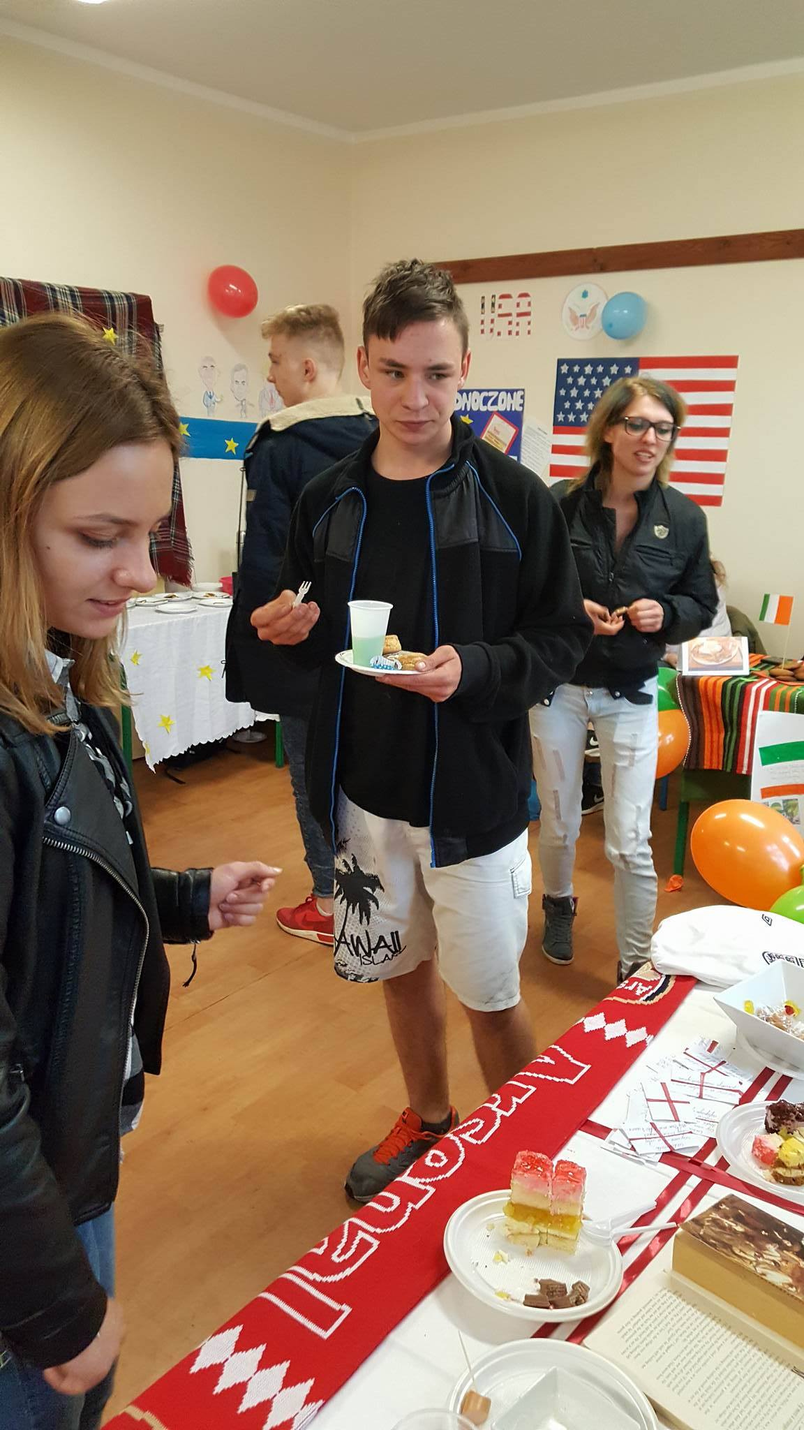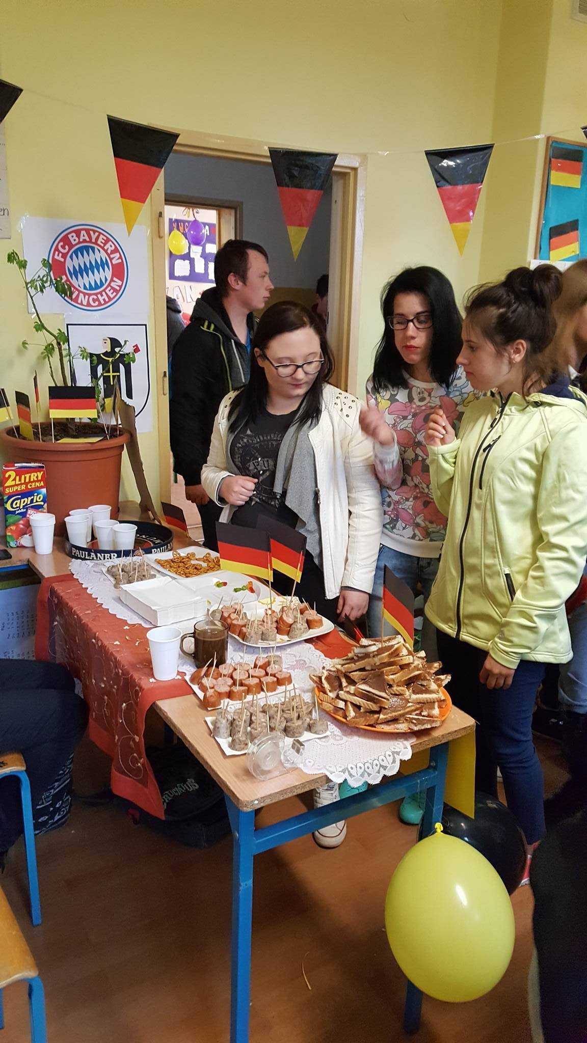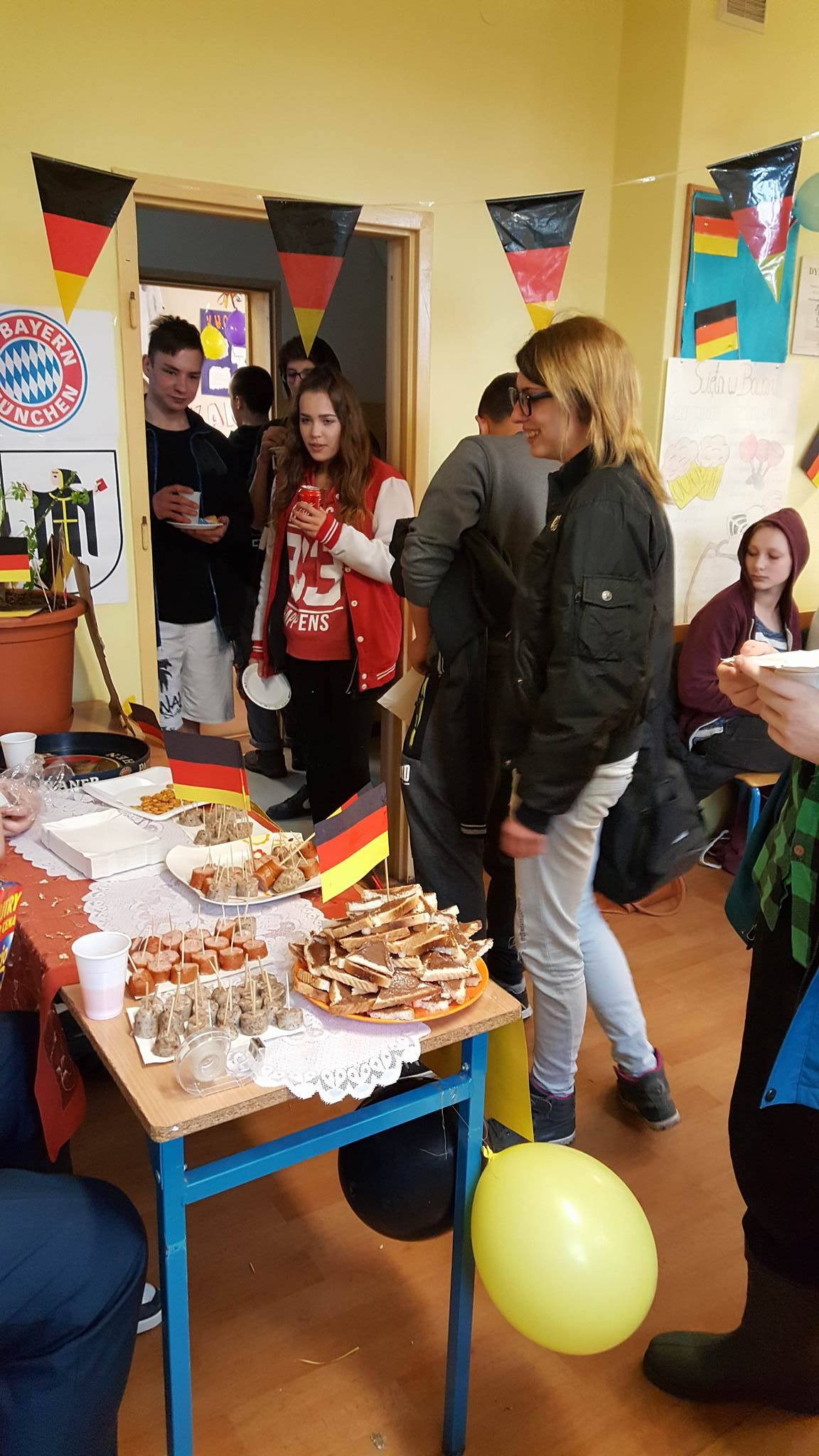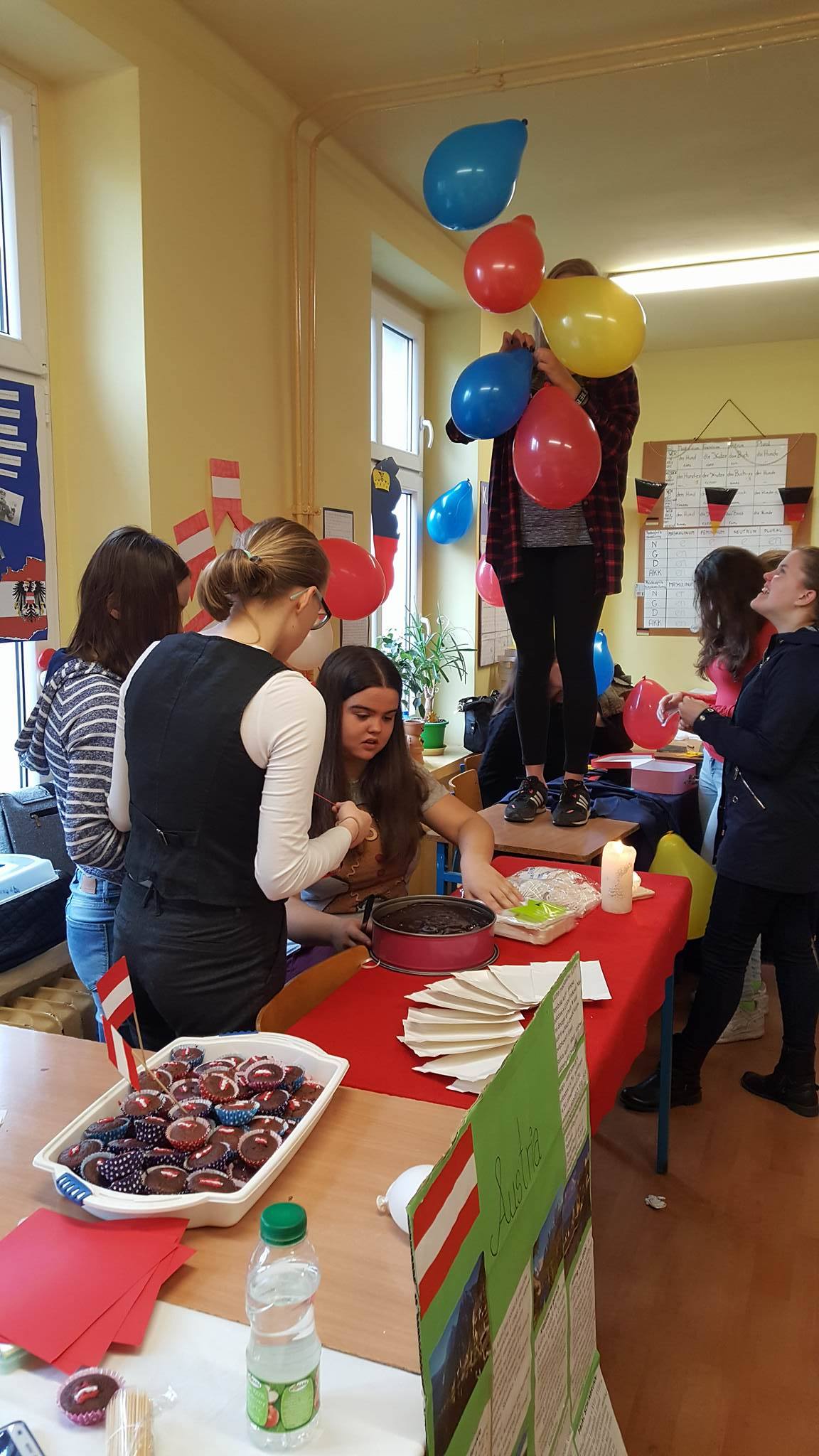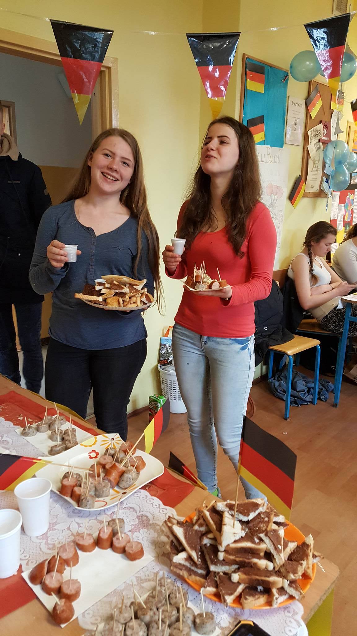 Głównym punktem i zarazem efektem przygotowań czteroosobowych grup uczniów klas pierwszych, było zaprezentowanie wystaw przedstawiających kraje niemiecko – i anglojęzyczne oraz zaproszenie kolegów i koleżanek z innych klas wraz z opiekunami na degustację potraw. Uczniowie z wielkim zaangażowaniem pracowali nad przygotowaniem swoich „wysp językowych”, własnoręcznie wykonali dekoracje, dobrali i przygotowali podkład muzyczny, a także sporządzili różne potrawy według oryginalnych przepisów niemieckich i angielskich. Zaprezentowane zostały: Anglia, Irlandia, Walia, Stany Zjednoczone, Kanada, Australia, Niemcy, Monachium, Bawaria, Księstwo Lichtensteinu, Austria oraz Szwajcaria. Każdy uczeń oraz nauczyciel po obejrzeniu wszystkich stanowisk miał prawo oddania jednego głosu na wybrany kraj. Zwycięska drużyna zostanie nagrodzona na najbliższym apelu słodką niespodzianką.
