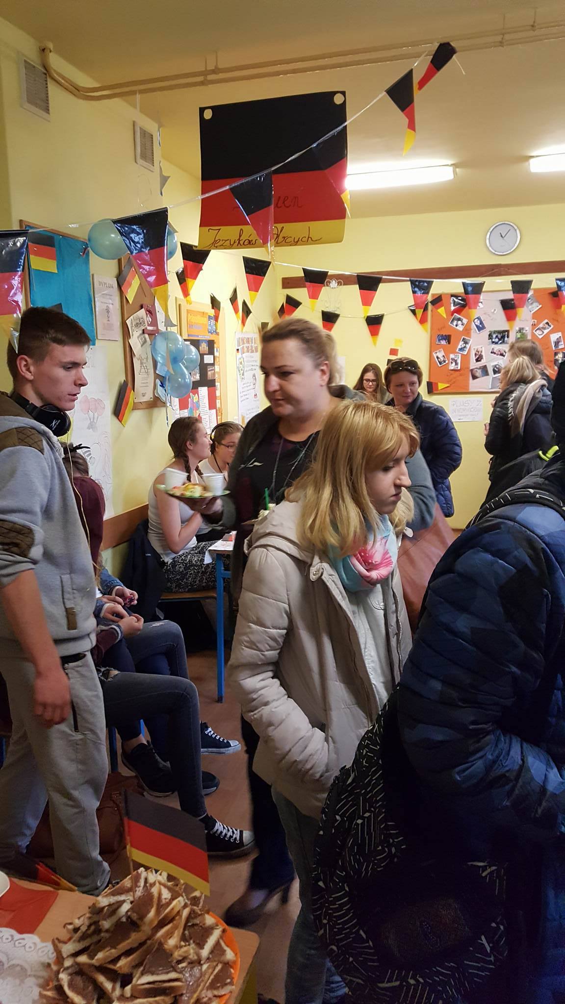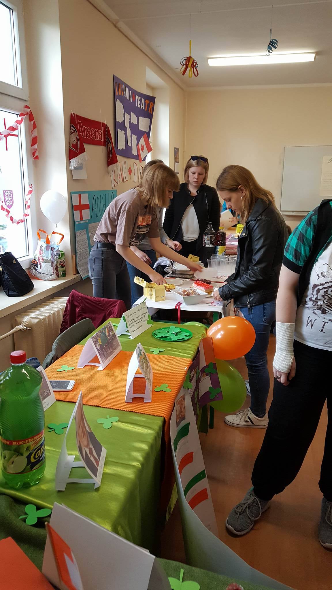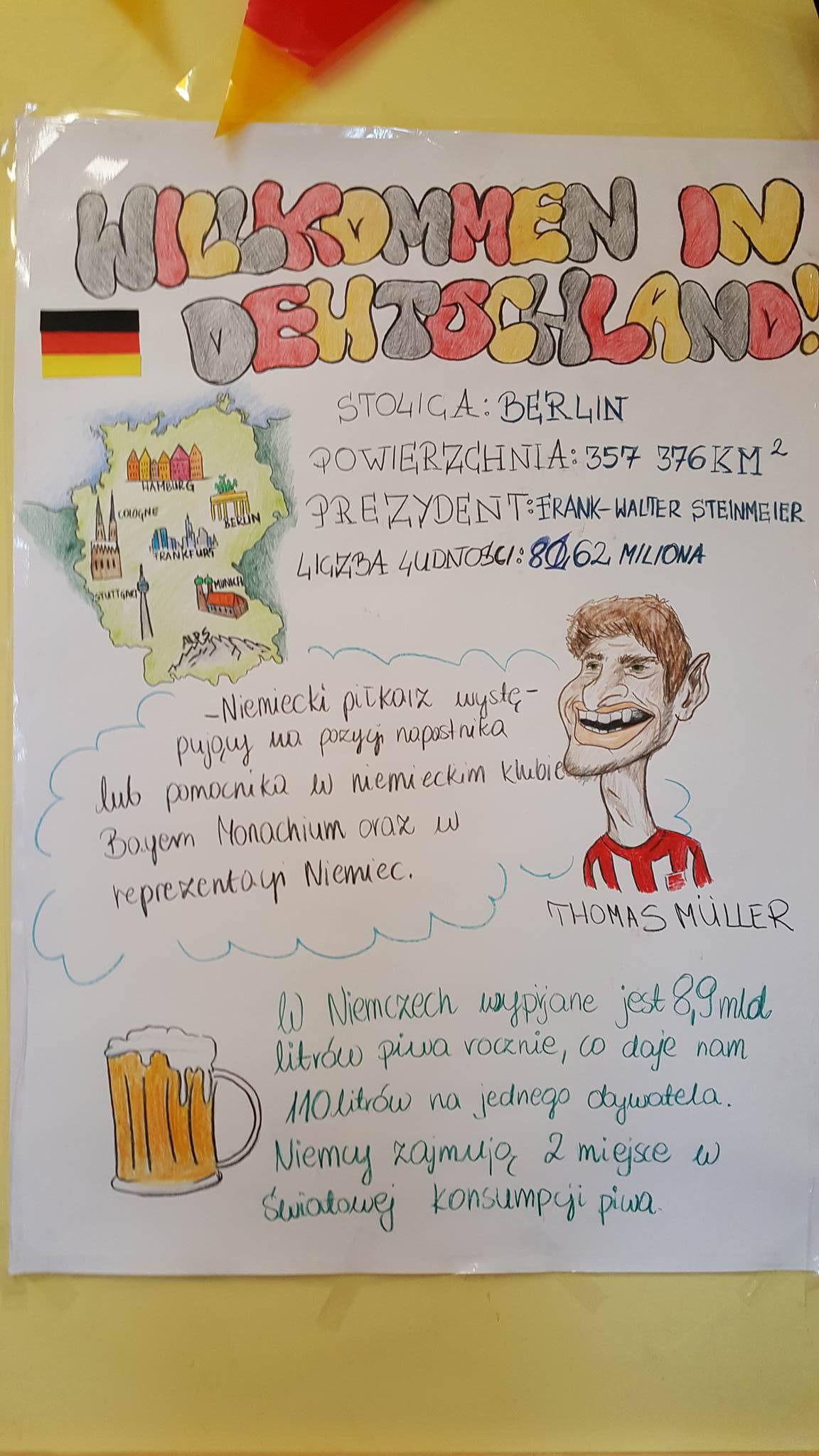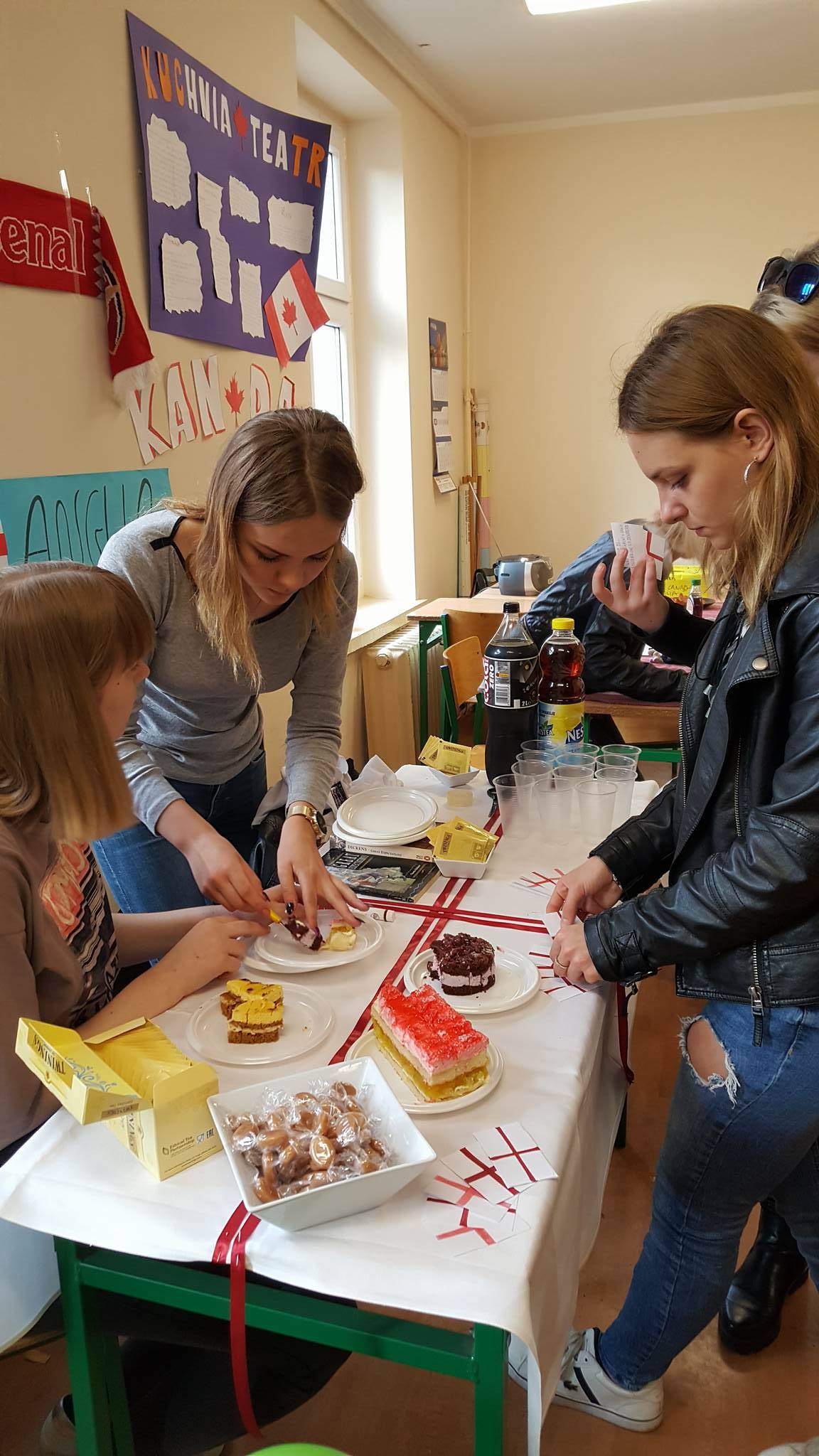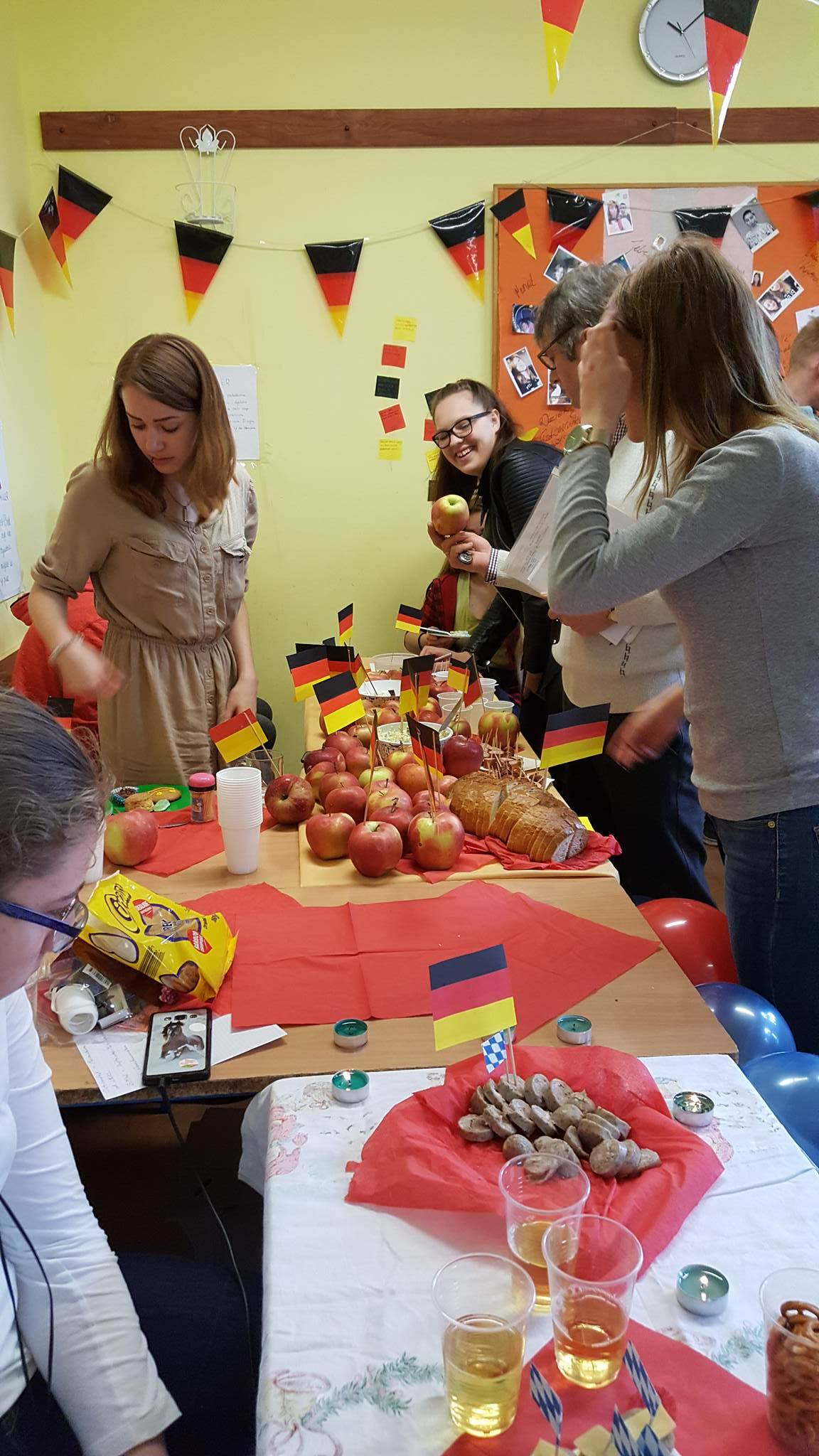 Głównym punktem i zarazem efektem przygotowań czteroosobowych grup uczniów klas pierwszych, było zaprezentowanie wystaw przedstawiających kraje niemiecko – i anglojęzyczne oraz zaproszenie kolegów i koleżanek z innych klas wraz z opiekunami na degustację potraw. Uczniowie z wielkim zaangażowaniem pracowali nad przygotowaniem swoich „wysp językowych”, własnoręcznie wykonali dekoracje, dobrali i przygotowali podkład muzyczny, a także sporządzili różne potrawy według oryginalnych przepisów niemieckich i angielskich. Zaprezentowane zostały: Anglia, Irlandia, Walia, Stany Zjednoczone, Kanada, Australia, Niemcy, Monachium, Bawaria, Księstwo Lichtensteinu, Austria oraz Szwajcaria. Każdy uczeń oraz nauczyciel po obejrzeniu wszystkich stanowisk miał prawo oddania jednego głosu na wybrany kraj. Zwycięska drużyna zostanie nagrodzona na najbliższym apelu słodką niespodzianką.