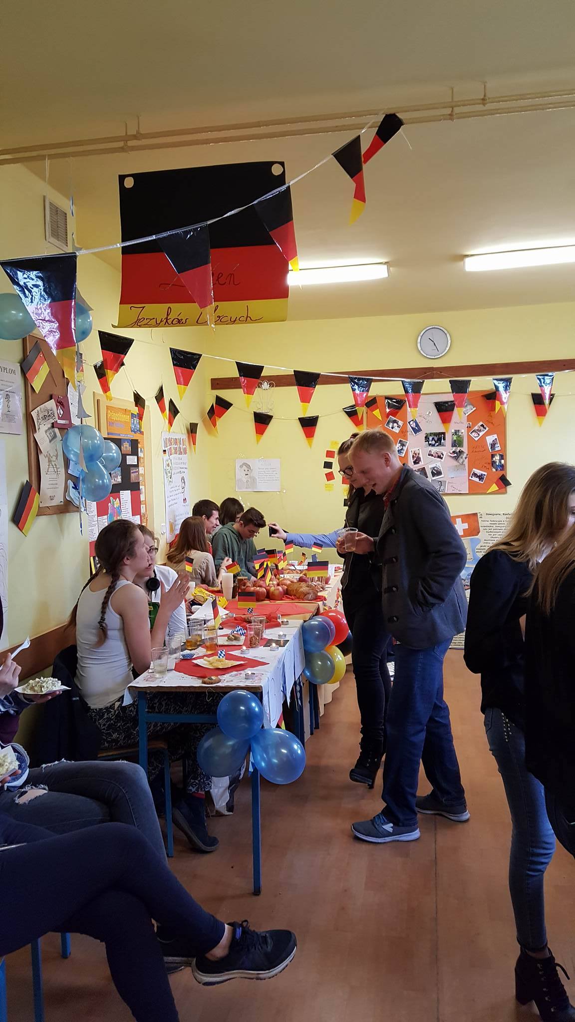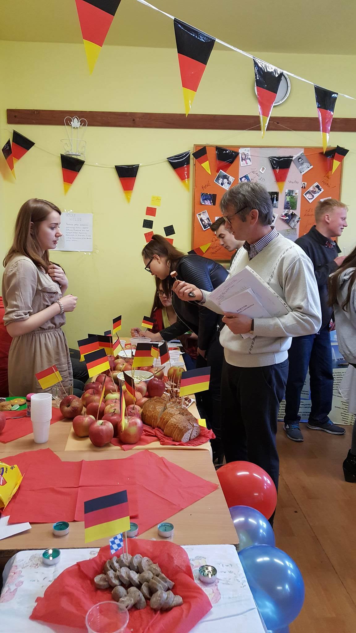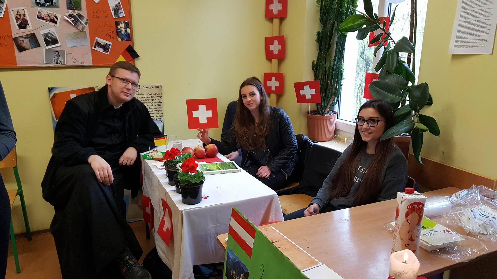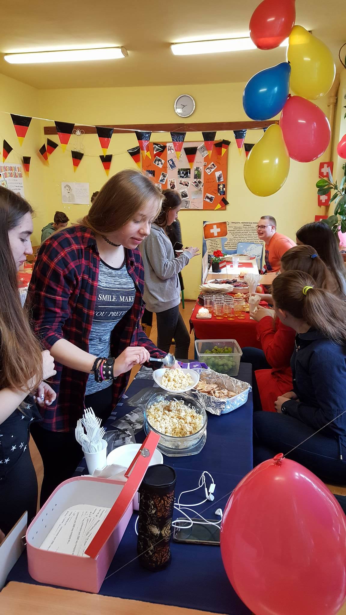 Głównym punktem i zarazem efektem przygotowań czteroosobowych grup uczniów klas pierwszych, było zaprezentowanie wystaw przedstawiających kraje niemiecko – i anglojęzyczne oraz zaproszenie kolegów i koleżanek z innych klas wraz z opiekunami na degustację potraw. Uczniowie z wielkim zaangażowaniem pracowali nad przygotowaniem swoich „wysp językowych”, własnoręcznie wykonali dekoracje, dobrali i przygotowali podkład muzyczny, a także sporządzili różne potrawy według oryginalnych przepisów niemieckich i angielskich. Zaprezentowane zostały: Anglia, Irlandia, Walia, Stany Zjednoczone, Kanada, Australia, Niemcy, Monachium, Bawaria, Księstwo Lichtensteinu, Austria oraz Szwajcaria. Każdy uczeń oraz nauczyciel po obejrzeniu wszystkich stanowisk miał prawo oddania jednego głosu na wybrany kraj. Zwycięska drużyna zostanie nagrodzona na najbliższym apelu słodką niespodzianką.