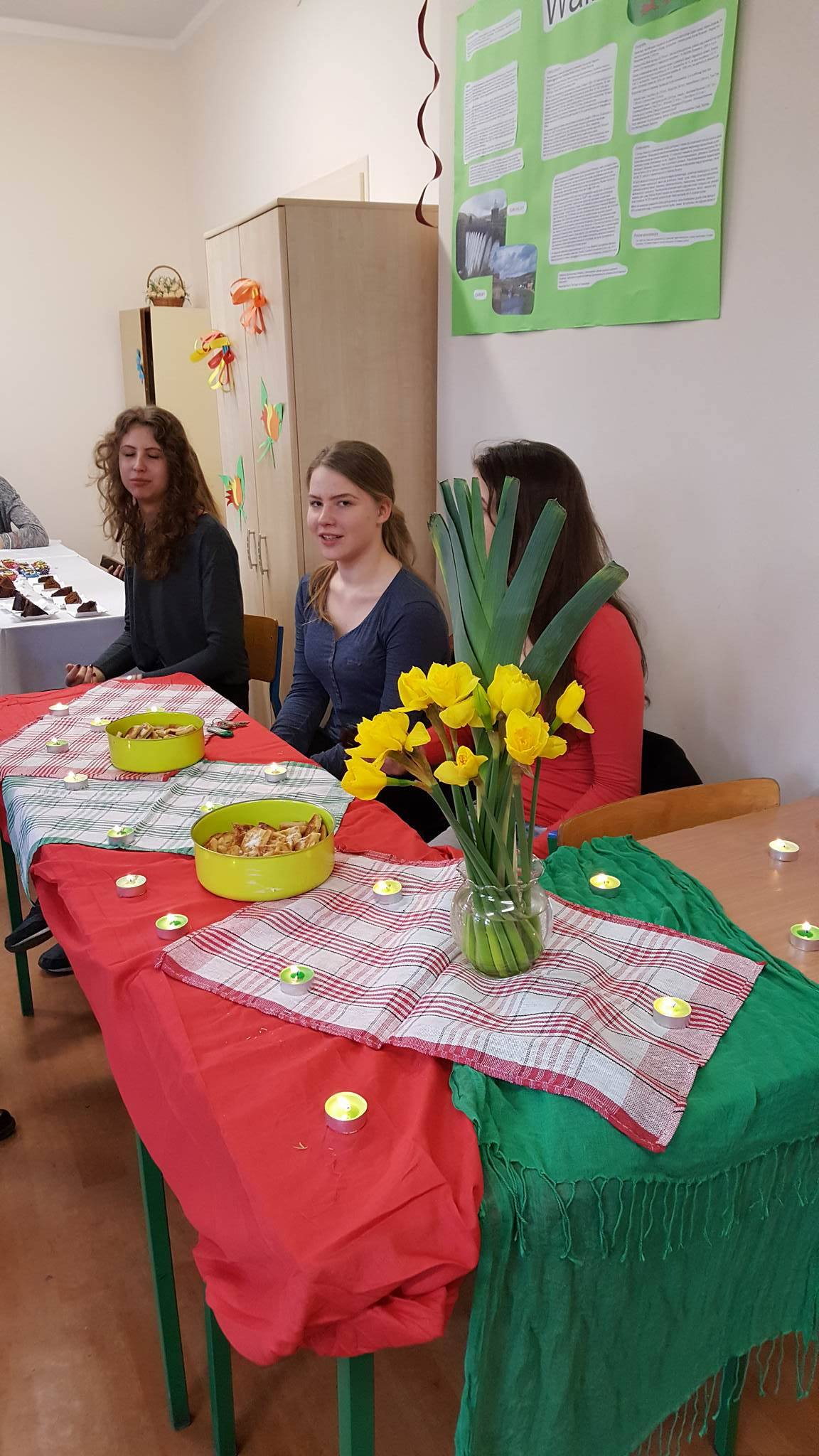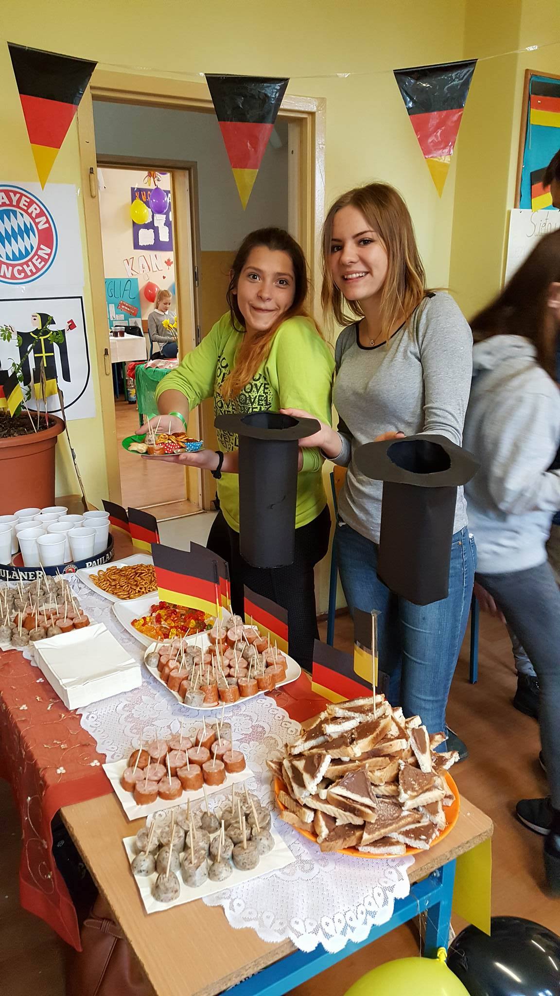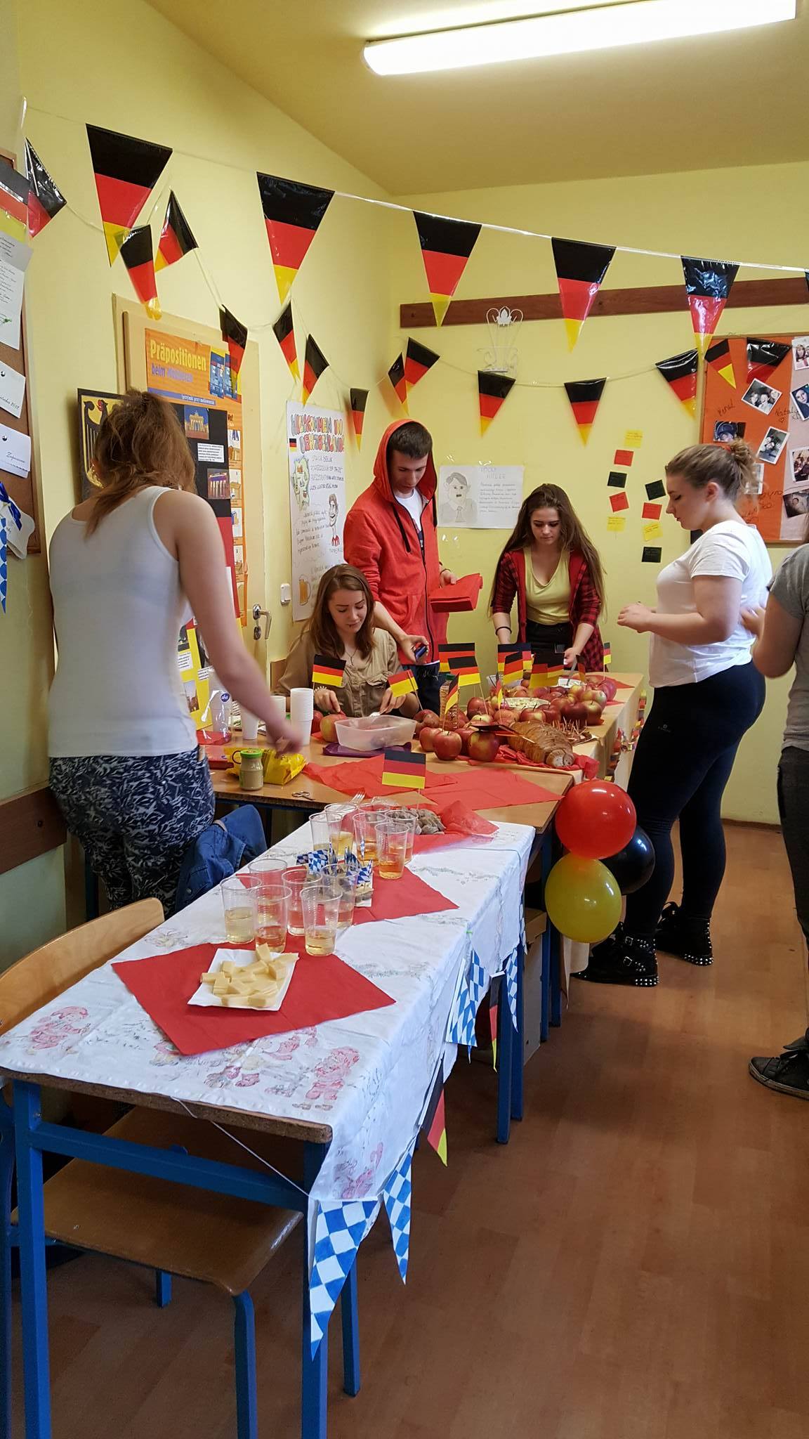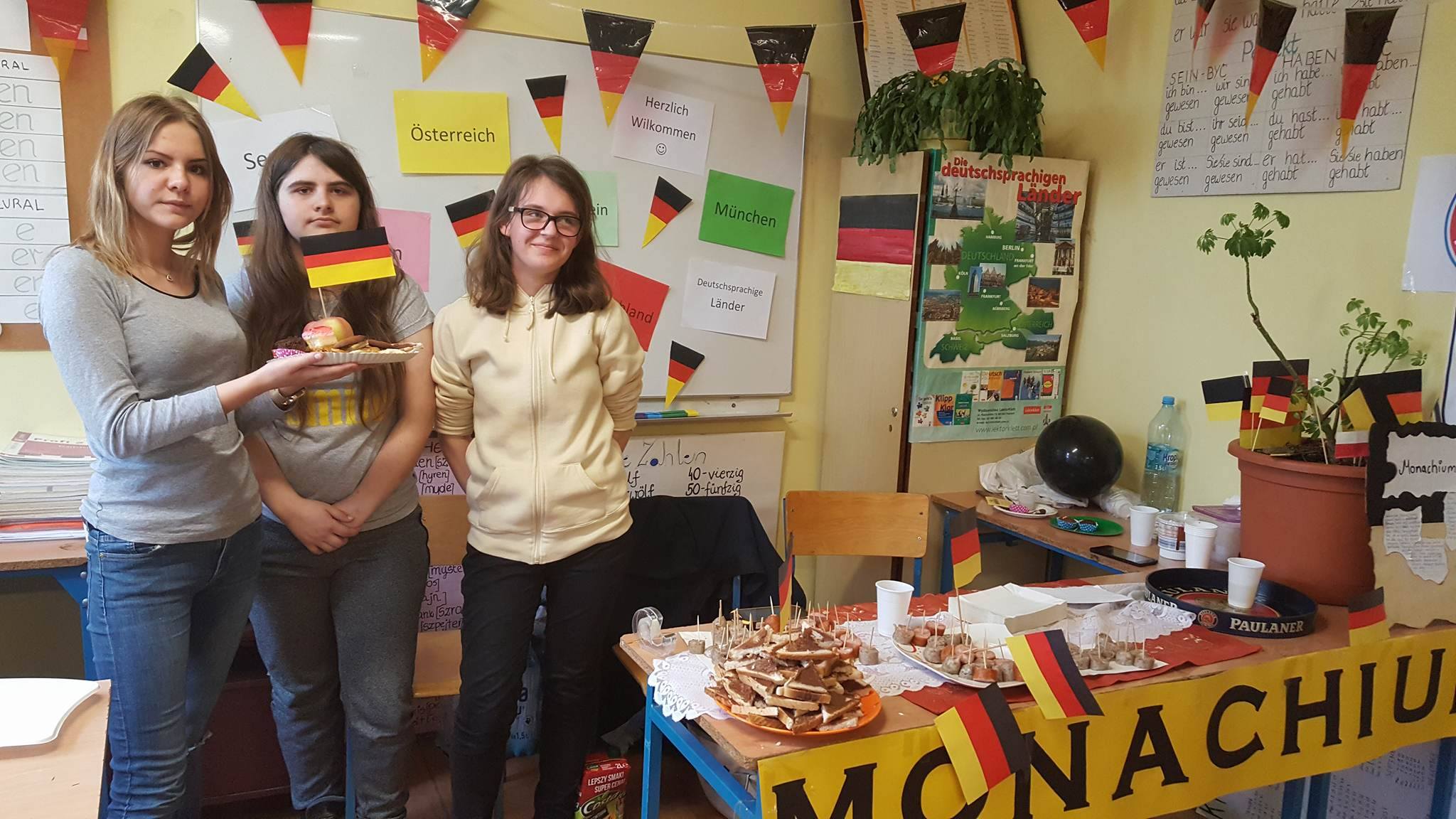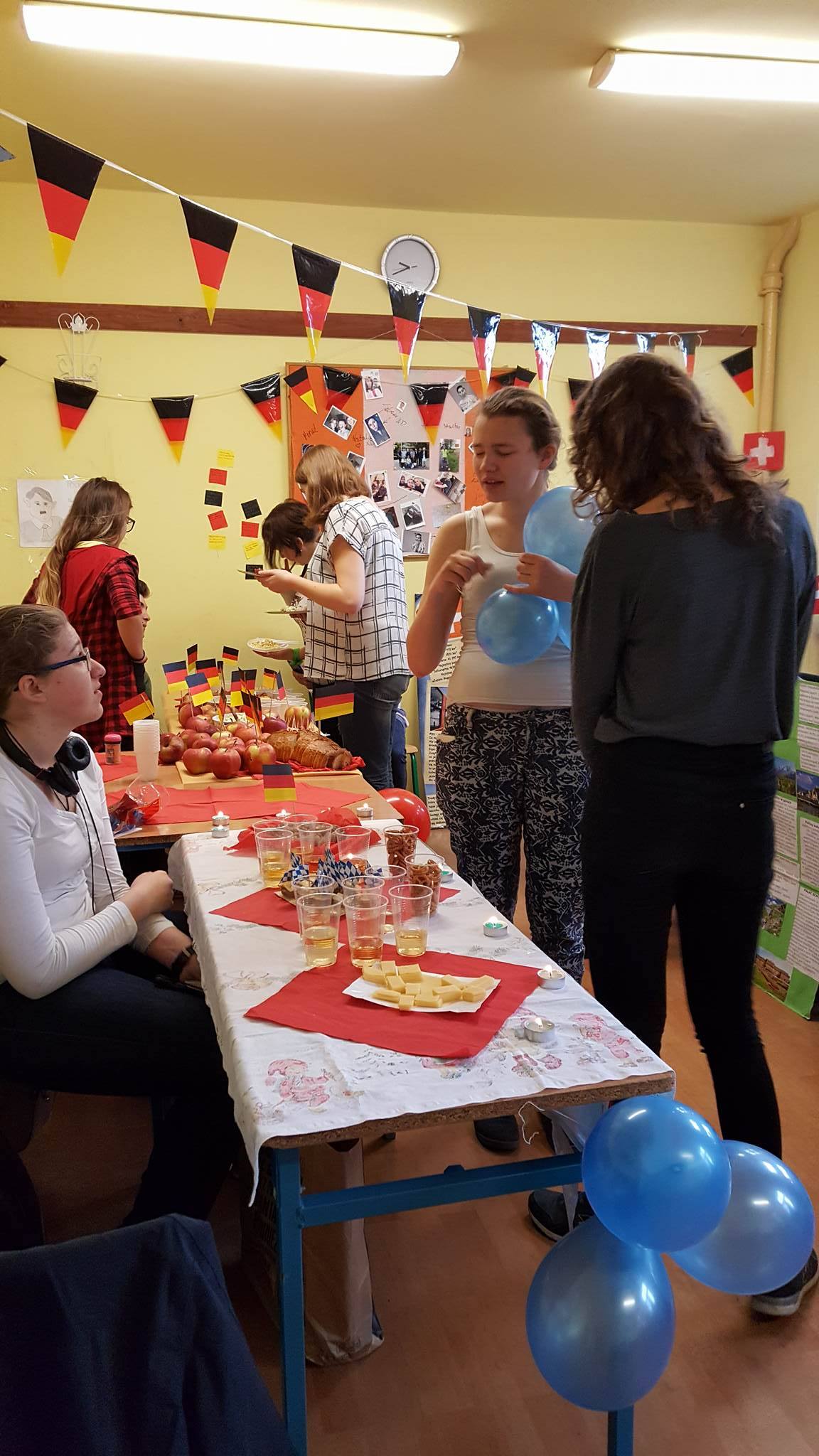 Głównym punktem i zarazem efektem przygotowań czteroosobowych grup uczniów klas pierwszych, było zaprezentowanie wystaw przedstawiających kraje niemiecko – i anglojęzyczne oraz zaproszenie kolegów i koleżanek z innych klas wraz z opiekunami na degustację potraw. Uczniowie z wielkim zaangażowaniem pracowali nad przygotowaniem swoich „wysp językowych”, własnoręcznie wykonali dekoracje, dobrali i przygotowali podkład muzyczny, a także sporządzili różne potrawy według oryginalnych przepisów niemieckich i angielskich. Zaprezentowane zostały: Anglia, Irlandia, Walia, Stany Zjednoczone, Kanada, Australia, Niemcy, Monachium, Bawaria, Księstwo Lichtensteinu, Austria oraz Szwajcaria. Każdy uczeń oraz nauczyciel po obejrzeniu wszystkich stanowisk miał prawo oddania jednego głosu na wybrany kraj. Zwycięska drużyna zostanie nagrodzona na najbliższym apelu słodką niespodzianką.