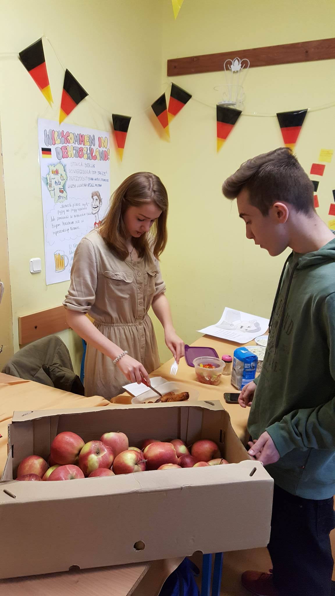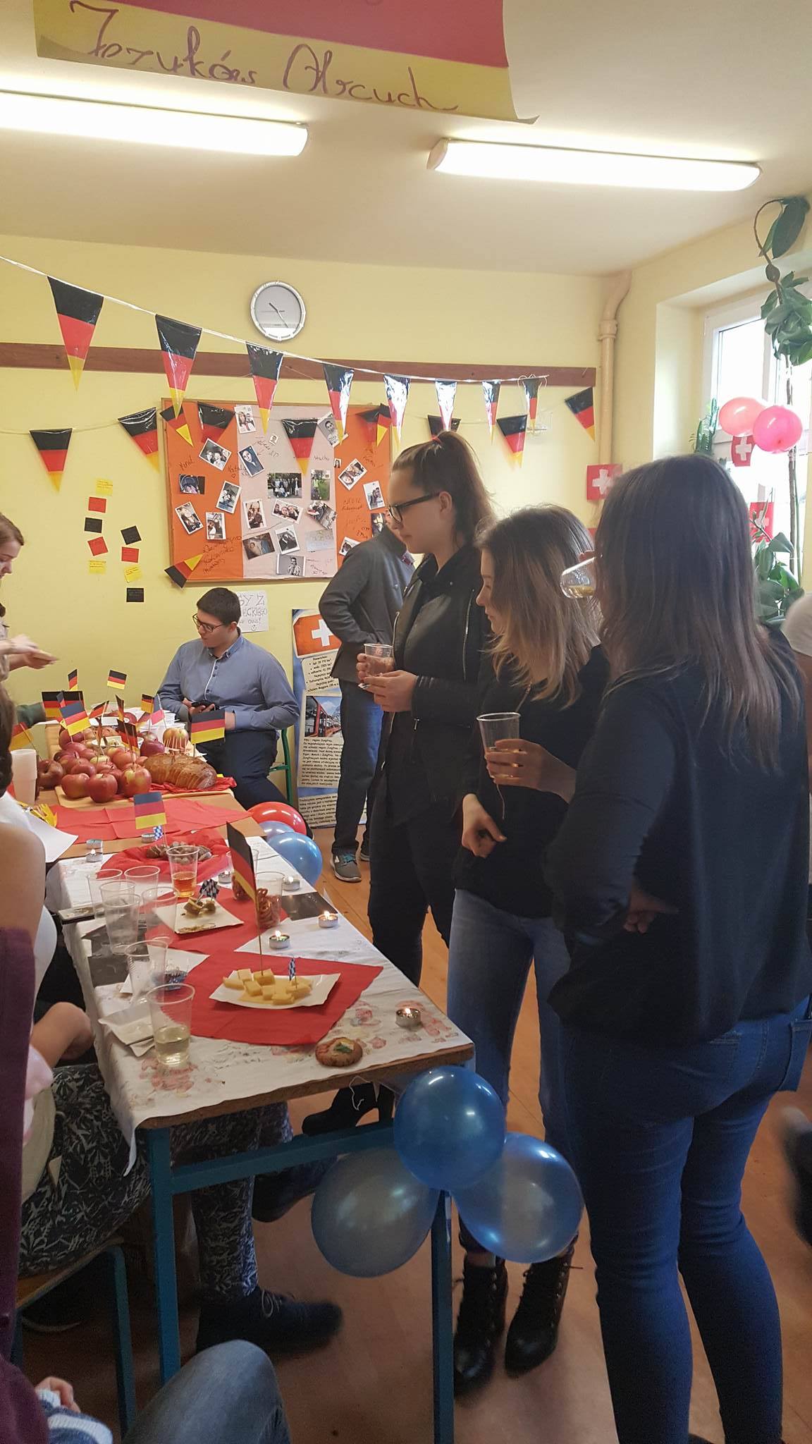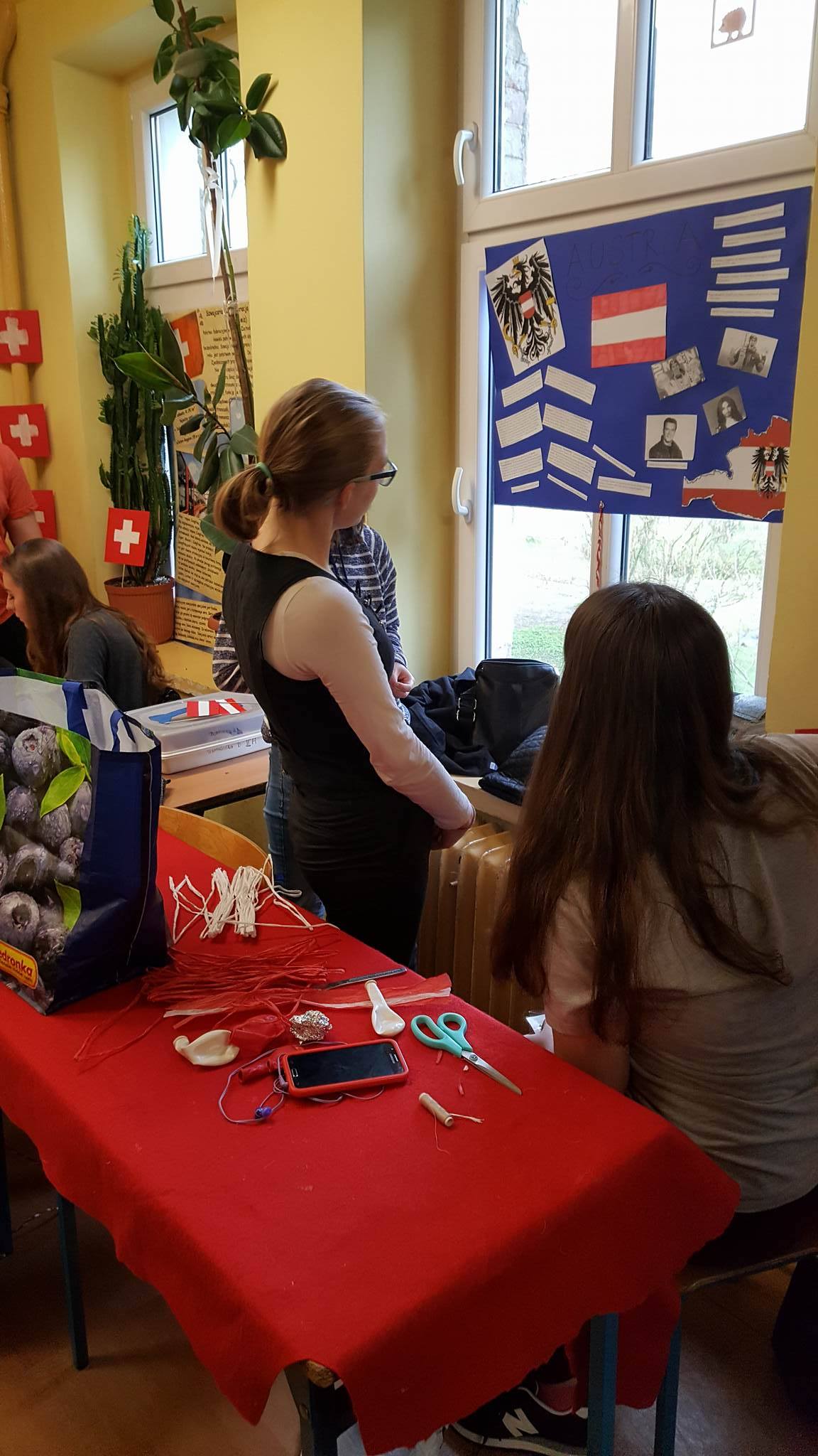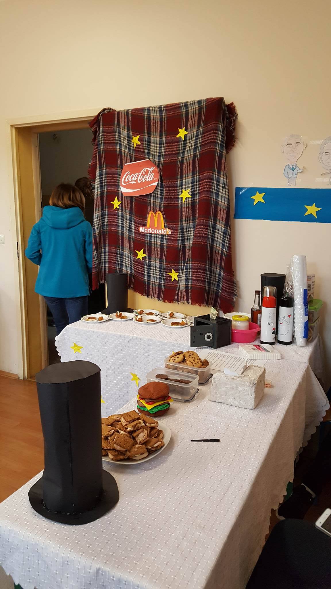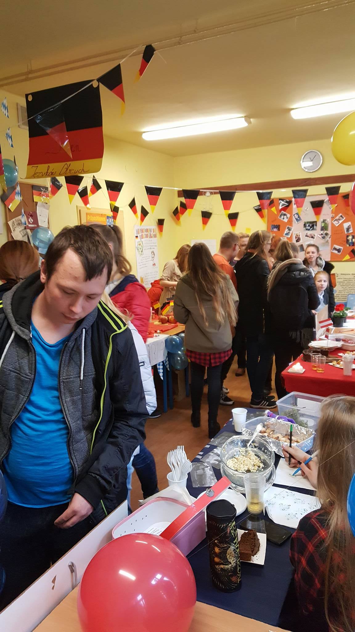 Głównym punktem i zarazem efektem przygotowań czteroosobowych grup uczniów klas pierwszych, było zaprezentowanie wystaw przedstawiających kraje niemiecko – i anglojęzyczne oraz zaproszenie kolegów i koleżanek z innych klas wraz z opiekunami na degustację potraw. Uczniowie z wielkim zaangażowaniem pracowali nad przygotowaniem swoich „wysp językowych”, własnoręcznie wykonali dekoracje, dobrali i przygotowali podkład muzyczny, a także sporządzili różne potrawy według oryginalnych przepisów niemieckich i angielskich. Zaprezentowane zostały: Anglia, Irlandia, Walia, Stany Zjednoczone, Kanada, Australia, Niemcy, Monachium, Bawaria, Księstwo Lichtensteinu, Austria oraz Szwajcaria. Każdy uczeń oraz nauczyciel po obejrzeniu wszystkich stanowisk miał prawo oddania jednego głosu na wybrany kraj. Zwycięska drużyna zostanie nagrodzona na najbliższym apelu słodką niespodzianką.