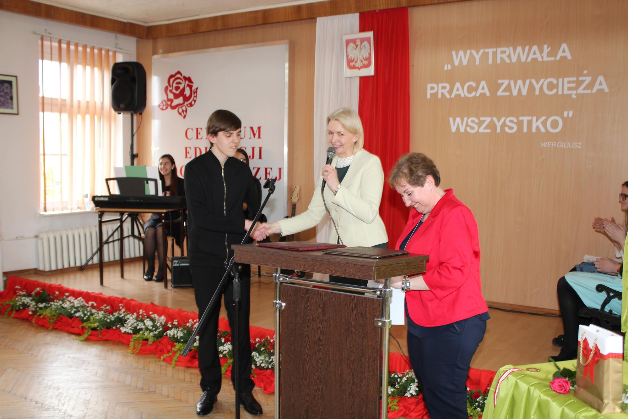 Dnia 28 kwietnia 2017 roku odbyło się uroczyste zakończenie roku szkolnego klas maturalnych. Naszych absolwentów żegnała cała szkoła – pani dyrektor Lila Pławińska, wychowawca, pedagodzy oraz młodzież szkolna, a wśród niej grupa, która przygotowała oprawę muzyczną. Jak jedna chwila minęły cztery lata i skończył się czas wspólnego wędrowania, pokonywania przeszkód, radzenia sobie z wejściem w dorosłe i dojrzałe życie. Oczywiście wędrówka absolwentów trwać będzie nadal, ale już całkiem inaczej – przyszedł bowiem czas opuścić przetarty szklak i poszukać nowej drogi.