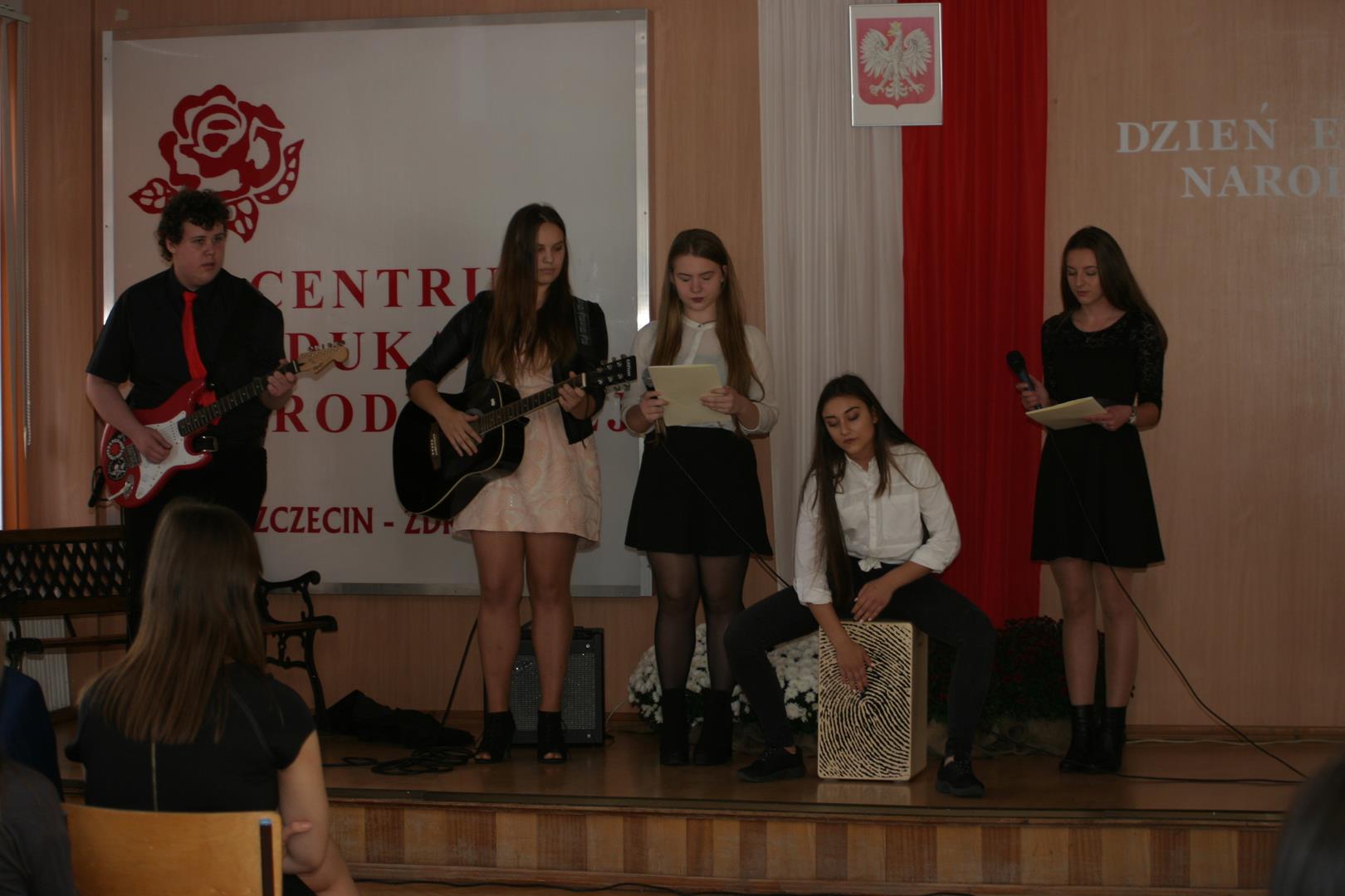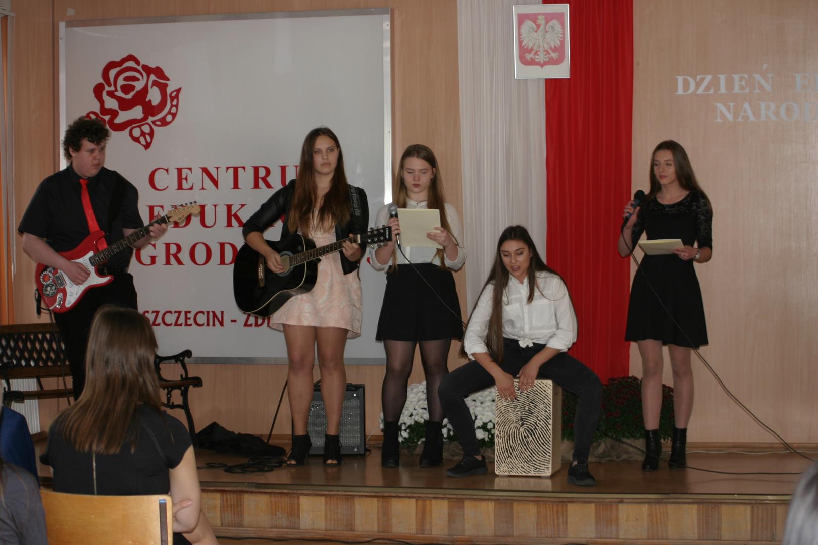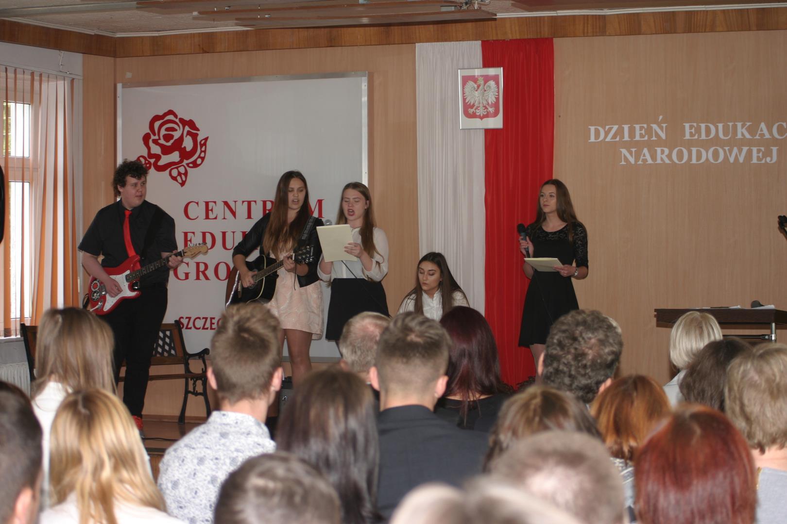 Atmosferę uroczystości zapewnił szkolny zespół artystyczny przygotowany przez p. Wojtka Majkowskiego. Jak zawsze nie zabrakło również humoru.