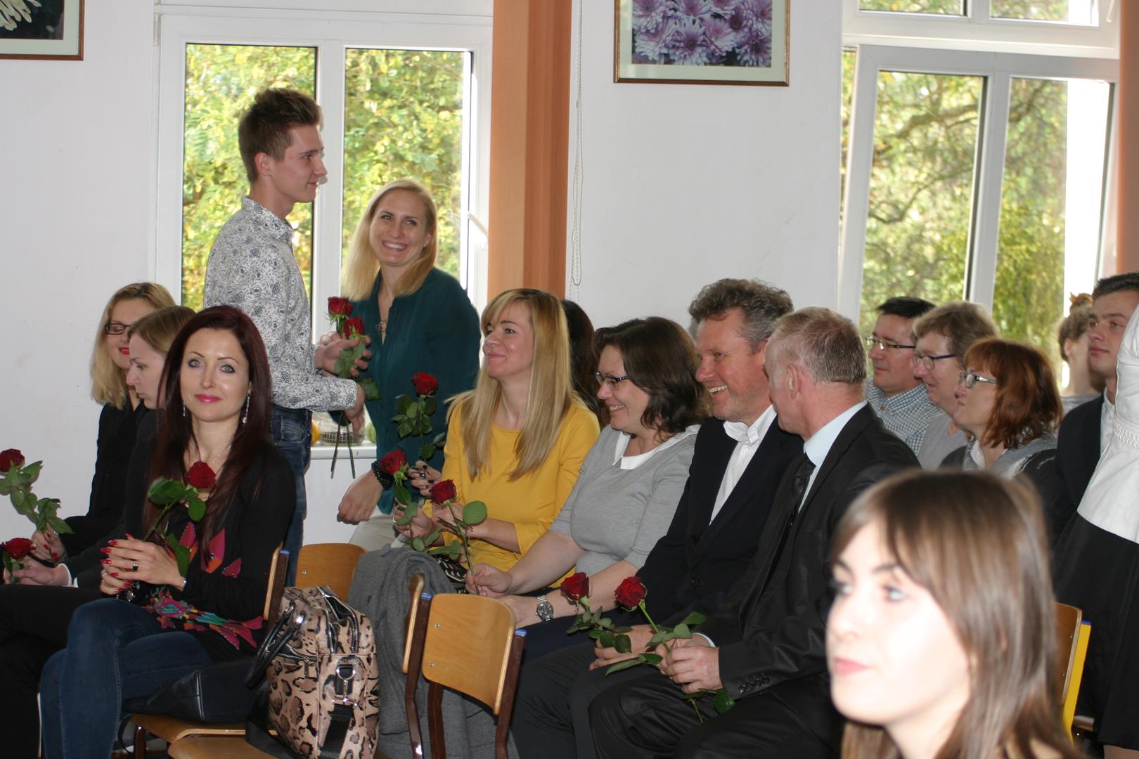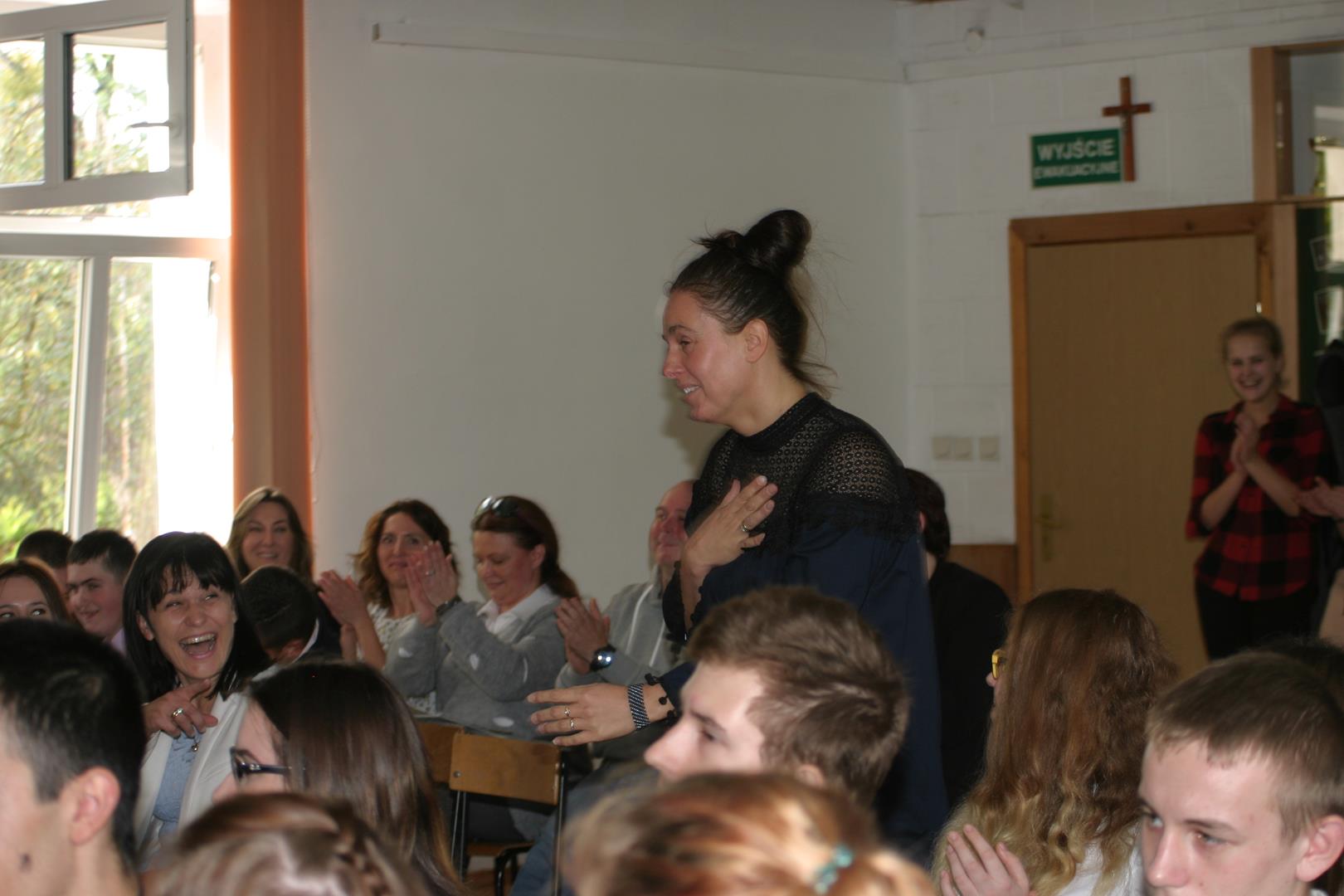 Szczególną niespodziankę przygotował Samorząd Uczniowski, którego przedstawiciele wręczyli nauczycielom dyplomy. Były to „nominacje”, których nazwy oddawały charakter poszczególnych pedagogów. I tak m.in. w kategorii „Nauczyciel z pasją” młodzież uhonorowała dwóch nauczycieli – p. Andrzeja Wykę i p. Zbigniewa Muszczyńskiego, a tytuł „Platynowej piły” nadano p. Agnieszce Kubiś.