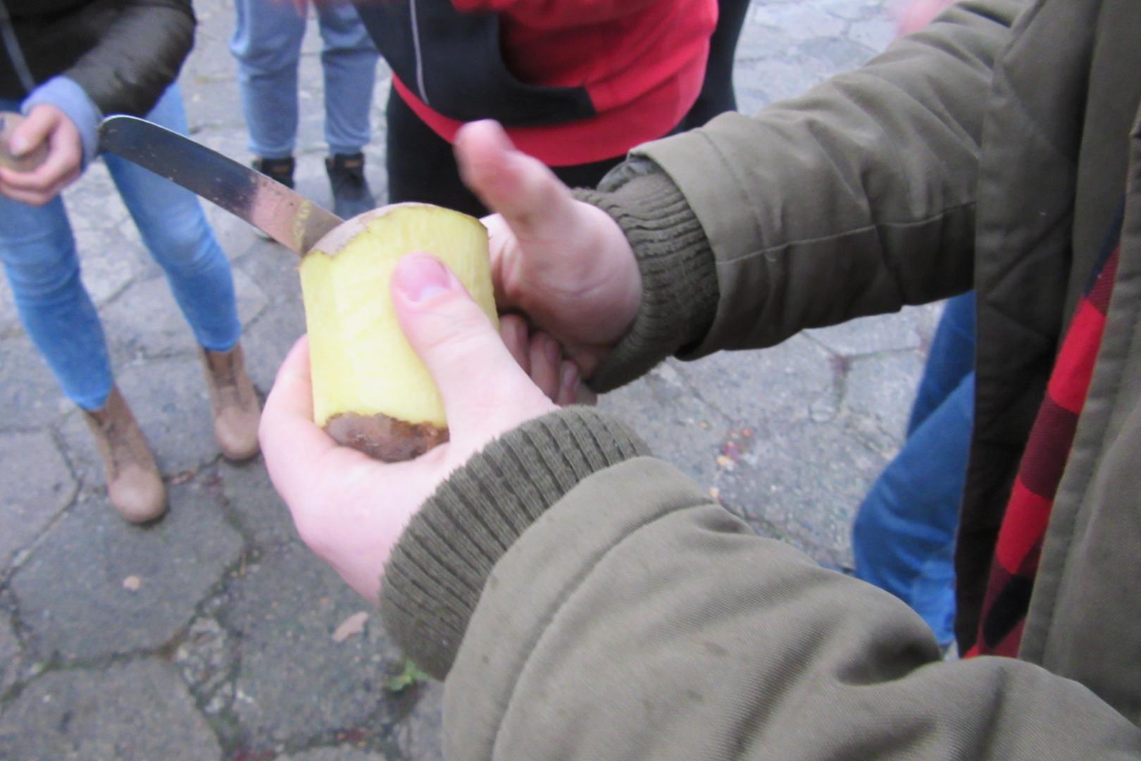 11 października 2017 roku obchodziliśmy nasze tradycyjne Święto Pieczonego Ziemniaka. Jesienna aura pozwoliła na zabawę na świeżym powietrzu. Oprócz młodzieży z naszego internatu i wychowawców w imprezie wzięli udział uczniowie z zaprzyjaźnionej Szkoły Podstawowej nr 65 w Szczecinie. Uczestnicy rywalizowali w biegu z ziemniakiem na łyżce, rzucaniu ziemniakiem do kosza, obieraniu ziemniaka tępym nożem na czas. Uczniowie mogli również wykazać się wiedzą o ziemniaku w quizie oraz zdolnościami artystycznymi w konkursie na najciekawszy rysunek z ziemniakiem. Impreza zakończyła się wspólnym śpiewaniem piosenek przy ognisku i pieczeniem kiełbasek.