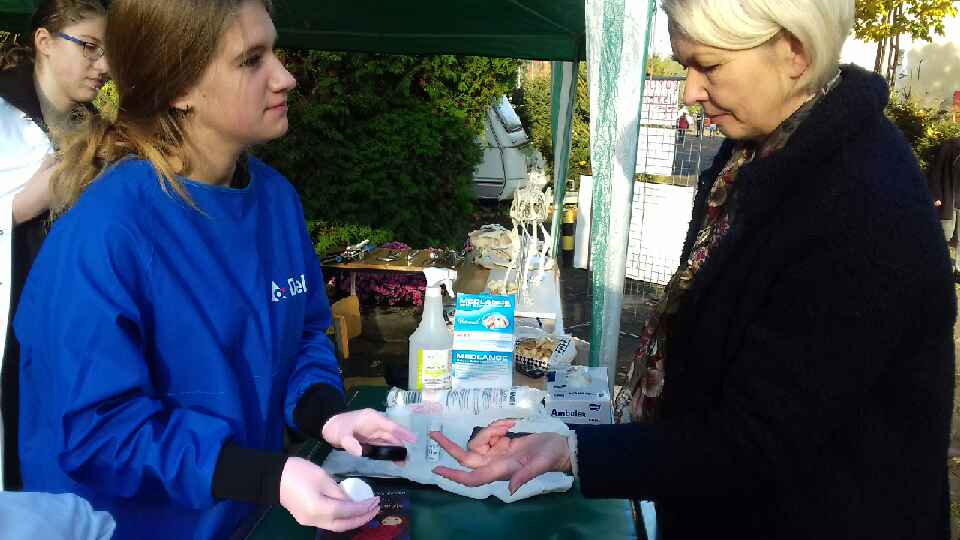 Zbliżający się koniec października nieodmiennie przypomina nam o tym tradycyjnym kwiecie w naszej kulturze i tradycji związanym ze Świętem Zmarłych. Dla szkoły ogrodniczej jest to gorący okres zbioru efektów kilkumiesięcznych prac produkcyjnych, ich prezentacji i sprzedaży. Miniony weekend (21-22 października 2017 roku) upłynął uczniom i nauczycielom pod znakiem dorocznego jesiennego kiermaszu tych wyjątkowych kwiatów, ale też warzyw, owoców, sadzonek drzew owocowych i krzewów ozdobnych. Siedemdziesiąt lat doświadczenia w kształceniu kadr ogrodniczych gwarantuje wysoką jakość produktów szkolnego gospodarstwa. Kilkanaście odmian chryzantem doniczkowych i ciętych jest w stanie zaspokoić gusta nawet największych miłośników tych kwiatów. Swoje stoiska miały też gospodarstwa współpracujące ze szkołą. Byli sadownicy, warzywnicy, producenci ekologicznej żywności i chyba najwierniejszy wystawca – właściciel tradycyjnej pasieki. Dlatego wielu mieszkańców naszej części miasta miało okazję zrobienia zapasów na zimę. Od trzech lat szkoła kształci też techników weterynarii. Uczniowie pod nadzorem swoich mentorów oferowali pomiar ciśnienia tętniczego, szybkie oznaczenie poziomu glukozy czy porady związane z opieką nad zwierzętami domowymi.
