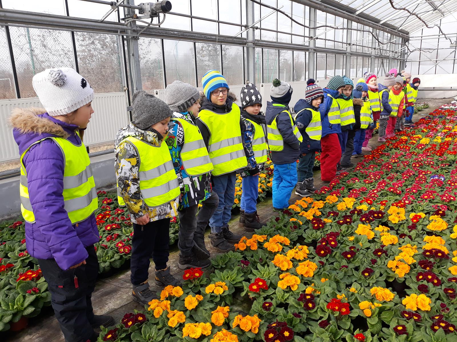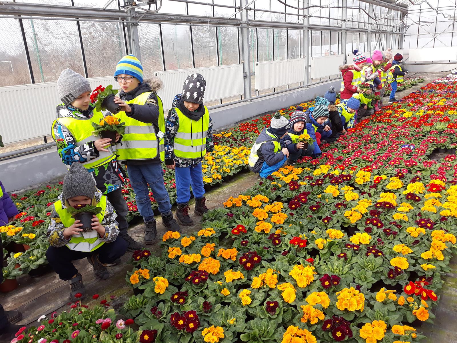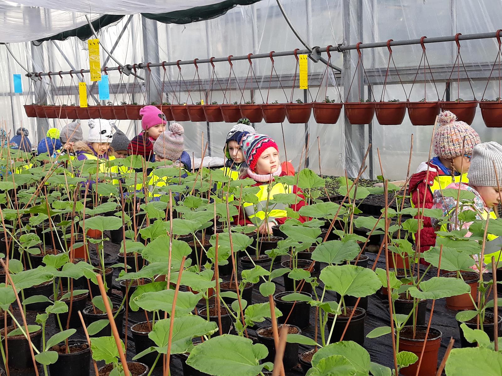 w szklarniach. Obserwowały pracę uczniów podczas zajęć praktycznych. Swoich starszych kolegów zasypywały pytaniami, a ci z cierpliwością odpowiadali skąd się biorą nasiona, co trzeba robić, by kwiaty pięknie i długo kwitły, jak chronić roślinę przed intruzami, a przede wszystkim – skąd się bierze marchewka?
