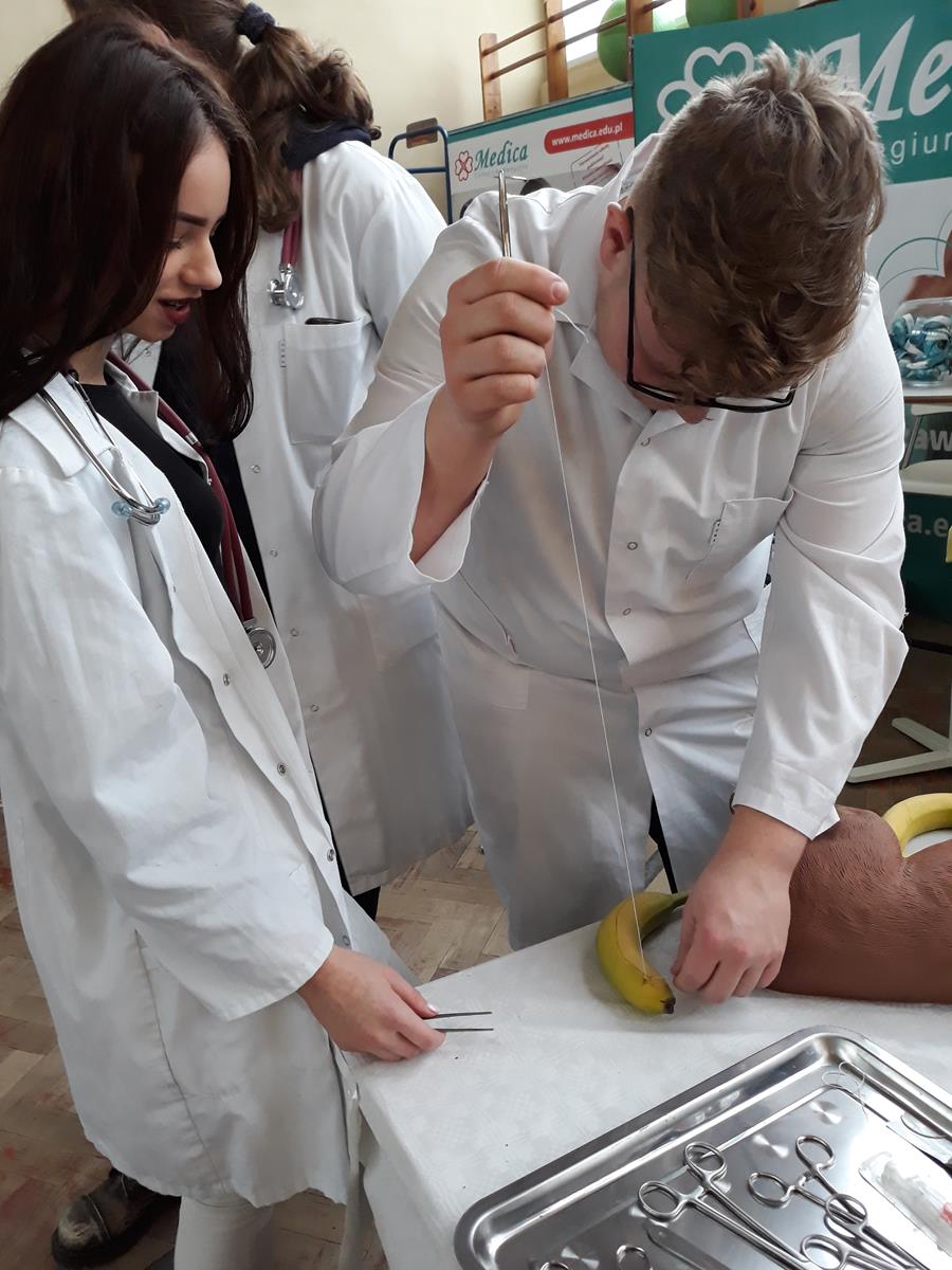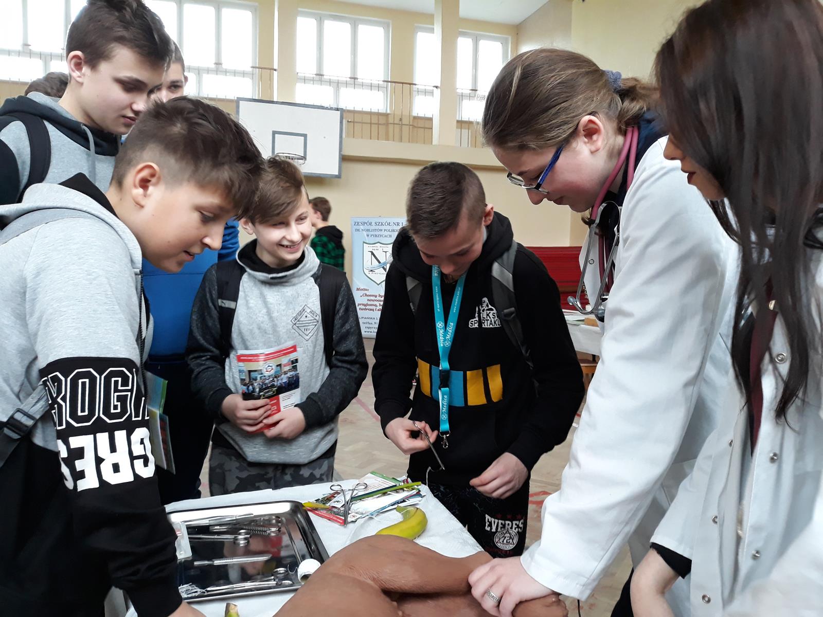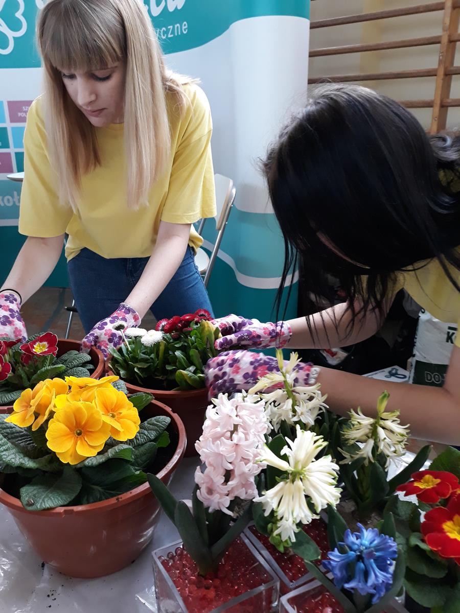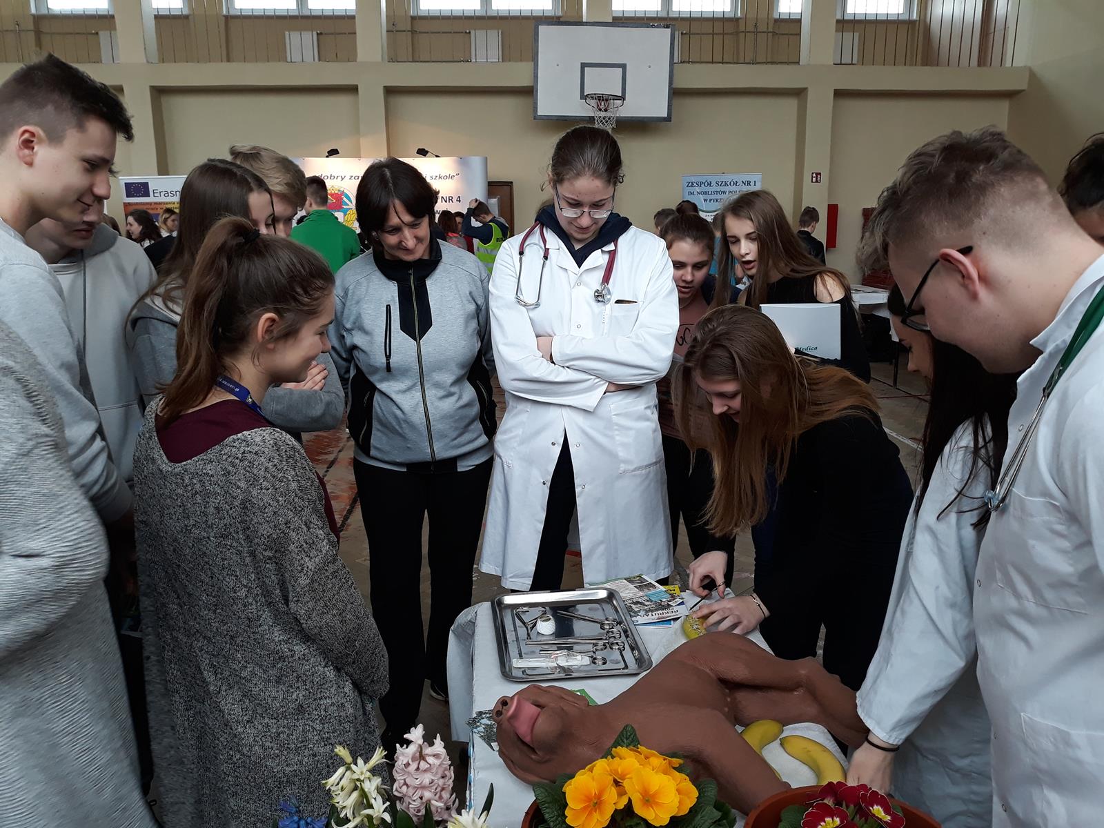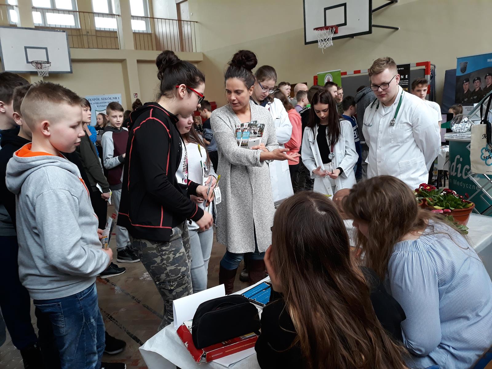 Nasze stoisko przyciągało uwagę młodszych kolegów m.in: obszerną wystawą projektów, opracowanych przez przyszłych, młodych architektów krajobrazu. Podczas targów osoby odwiedzające mogły „na żywo” zobaczyć jak powstaje projekt. Uczennice z Technikum Ogrodniczego sadziły pierwiosnki, stokrotki, bratki i hiacynty w różne podłoża. Opowiadały o zawodzie, o zajęciach praktycznych, praktykach zawodowych, zachęcały zainteresowanych do rozpoczęcia nauki w murach naszej szkoły. Technicy weterynarii zaprezentowali gimnazjalistom profesjonalne szycie chirurgiczne oraz niezbędne do tego narzędzia. Osoby chętne, pod czujnym okiem przyszłych weterynarzy, próbowały założyć szwy.