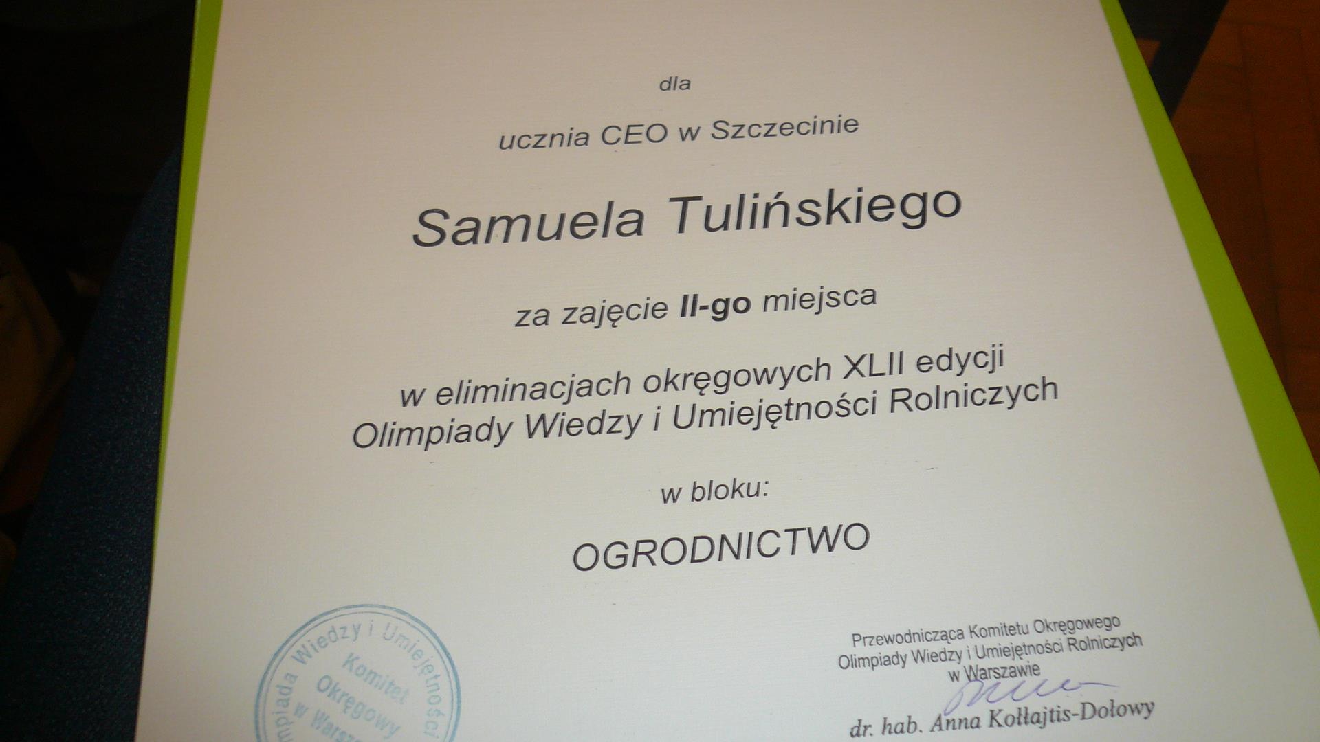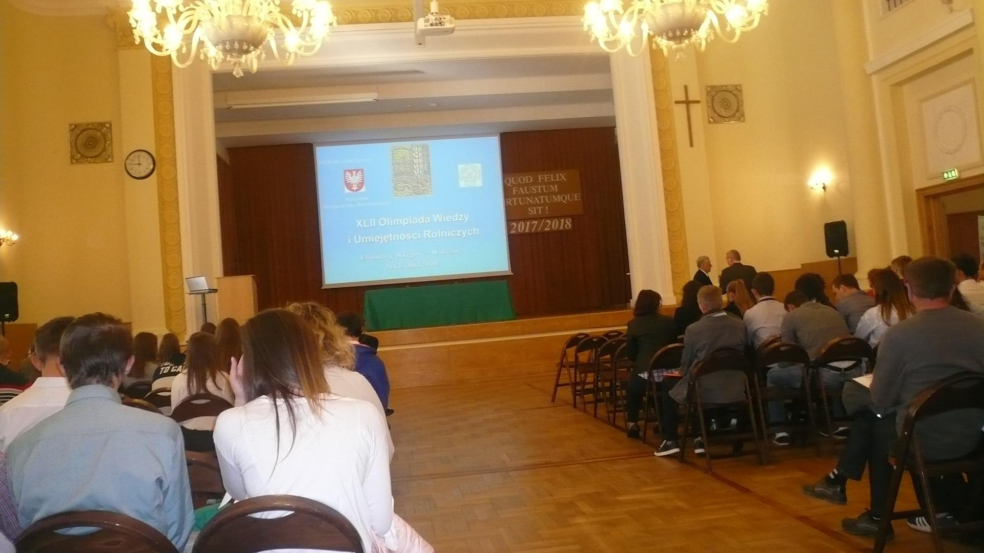W dniu 20 kwietnia 2018 odbył się etap okręgowy XLII OWiUR. Nasi uczniowie brali udział w bloku: „ogrodnictwo”, „architektura krajobrazu” i „weterynaria”. Eliminacje dla ogrodników odbywały się w okręgu warszawskim w Szkole Głównej Gospodarstwa Wiejskiego. Nasz uczeń Samuel T. zajął 2. miejsce i zakwalifikował się do finału, a jego kolega Jacek L. był 8. Architektura krajobrazu została zorganizowana w Zespole Szkół Nr 2 CKU w Pyrzycach. Tu też eliminacje okazały się dla nas sukcesem, ponieważ Martyna M. zajęła 3. miejsce i zakwalifikowała się do finału, a Marlena B. była 5. W bloku „weterynaria” natomiast – w którym wzięliśmy udział po raz pierwszy – uczestnicy swoje zmagania przechodzili w okręgu poznańskim w Zespole Szkół RCKU w Trzciance. Naszą szkołę reprezentowały Sandra Z. i Agnieszka Ż. Na razie bez większych sukcesów (XX i XXIII miejsce), ale jak na klasę trzecią uzyskały dobry wynik z testów.