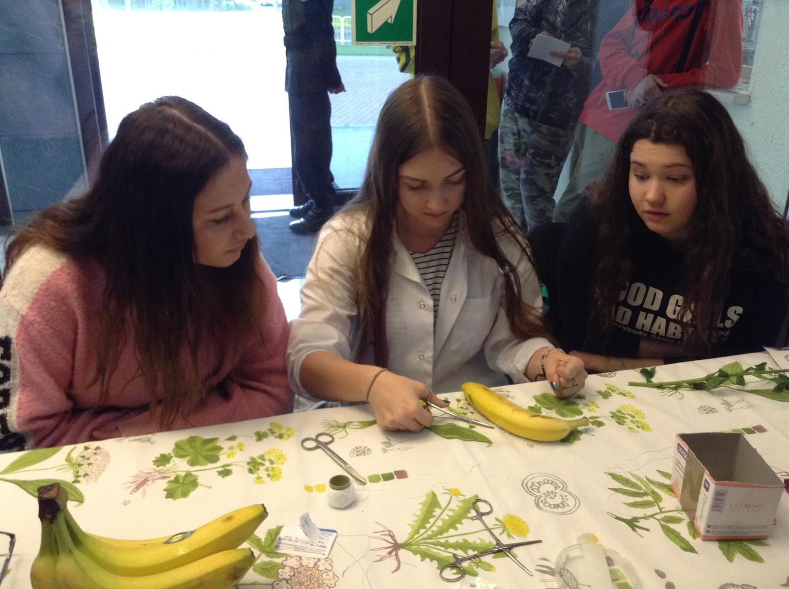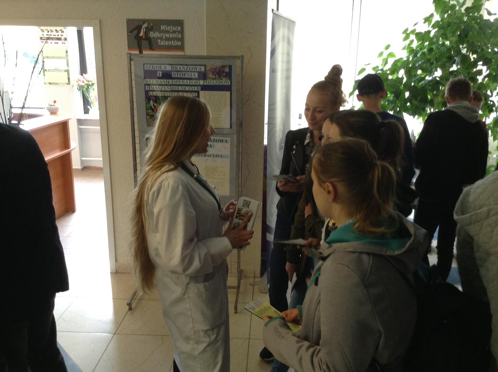 Nasze stoisko przyciągało uwagę młodszych kolegów, m.in: bujnością kwiatów oraz szyciem banana z pytaniem „po co i dlaczego?”. Osoby chętne, pod czujnym okiem przyszłych techników weterynarii, próbowały założyć szwy. Podczas targów zwiedzający mogli dowiedzieć się o kierunkach kształcenia, o zajęciach praktycznych, praktyce zawodowej, możliwości zatrudnienia po ukończeniu szkoły i możliwości zdobycia dodatkowych umiejętności i kwalifikacji.