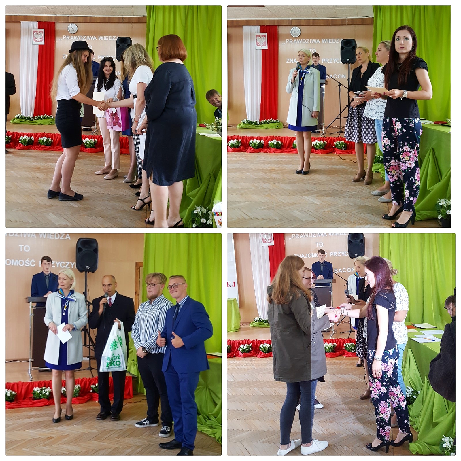 Zakończenie roku szkolnego to czas podsumowań i okazja do wręczenia nagród. Nasze koleżanki i koledzy odbierali pamiątkowe dyplomy, książki i upominki nie tylko za bardzo dobre wyniki w nauce. Były też nagrody dla tych, którzy w sumienny sposób realizowali zajęcia praktyczne i praktyki zawodowe. W tym roku wyróżnienie dla całej klasy odebrał Patryk z 2 ZSZ. Wręczono nagrody za pracę na rzecz Szkolnego Centrum Informacji, Internatu szkolnego, udział w konkursach szkolnych i promocji szkoły oraz za prowadzenie szkolnego Instagrama. Na koniec Pani Dyrektor wręczyła Nagrodę Specjalną naszemu koledze z 1 TK za 100% frekwencję!