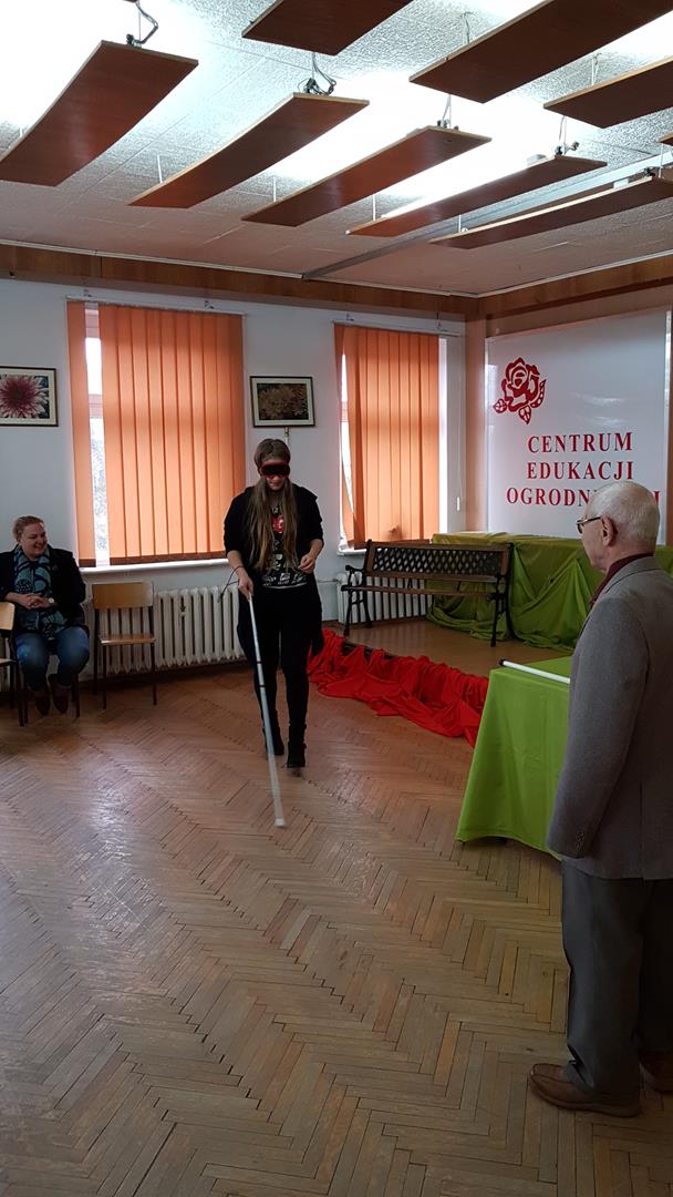 W naszej szkole odbyło się szereg inicjatyw, w których uczestniczyli nie tylko nasi uczniowie i nauczyciele, ale również rodzice i społeczność lokalna. I tak w dniach 15 – 24 października zostały przeprowadzone lekcje wychowawcze z wykorzystaniem materiałów dostępnych na stronie www.braille.bydgoszcz.pl i lekcje religii połączone z projekcją filmów edukacyjnych zamieszczonych na ww. stronie. Rodzice naszych uczniów podczas zebrania mieli okazję uczestniczyć w warsztatach przeprowadzonych przez wychowawców klas. W trakcie jesiennego kiermaszu ogrodniczego – podobnie jak w zeszłym roku – przygotowaliśmy stoisko informacyjne i akcję propagującą Międzynarodowy Dzień Białej Laski, w trakcie której odbyły się warsztaty dla dzieci z pisania w języku Braille’a, rysowanie plakatów informacyjnych oraz pokaz umiejętności psa szkolonego dla osób niewidomych ze Stowarzyszenia „Po To Jestem”. Dużym zainteresowaniem cieszyło się także spotkanie z Prezesem Koła Polskiego Związku Niewidomych w Szczecinie, w wyniku czego powstały filmy instruktażowe i codzienne instruktaże zdjęciowe nt. pomocy osobom słabo- i niewidzącym. Każdy z uczestników mógł spróbować wcielić się w rolę osoby niewidomej lub opiekuna. Zarówno wspomniane filmy, jak i zdjęcia z przebiegu akcji, zostały opublikowane na szkolnej stronie Instagrama: centrum_edukacji_ogrodniczej. Efektem podjętych przez nas działań, dzięki m.in. wsparciu Koła Polskiego Związku Niewidomych w Szczecinie i Stowarzyszenie „Po To Jestem”, było dotarcie z przesłaniem akcji do około 800 osób.