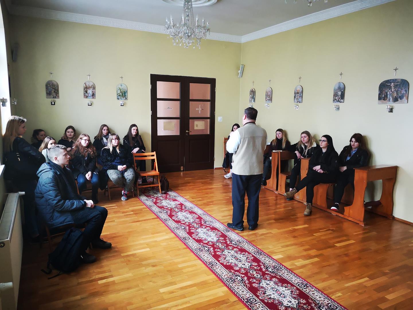 Pierwszym przystankiem był klasztor Sióstr Karmelitanek Bosych na szczecińskim Golęcinie. Miejsce to jest wyjątkowe, ponieważ w murach klasztornych przebywa 16 sióstr klauzurowych, które swoje życie poświęciły na nieustanną modlitwę za cały świat. Rytm dnia mniszek to nieustanna przeplatanka modlitwy i pracy, o czym mogliśmy się przekonać w chwili rozmowy z jedną z nich. Siostry te po całkowitym włączeniu ich do wspólnoty (a więc po kilku latach formacji) nie mogą już opuścić tego miejsca bez zgody papieża. Ciekawe, że wszystkie robią to dobrowolnie, aby zrywając ze światem móc całkowicie skupić się na modlitwie.