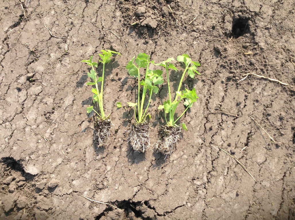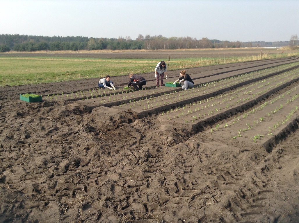 w sadzeniu rozsady selera korzeniowego odmiany Prinz. Młodzież sadziła rozsadę na wałach, ponieważ teren – na jakim uprawiane są w tym gospodarstwie warzywa – jest podmokły. "Wyniesienie" warzyw na wały sprzyja dobrej cyrkulacji powietrza w systemie korzeniowym oraz szybszemu nagrzewaniu się ziemi po zimie.